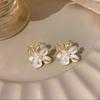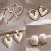 White love ear buckle, Multi-layer drop glaze flower stud earrings, Drop glaze geometric stud earrings, White ...