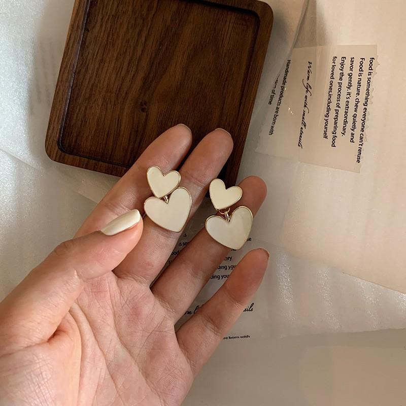 Aretes Geométricos de Corazón de Aguja de Plata con Goteo de Aceite Aretes Simples de Flor Coreanos Aretes Elegantes de Moda Aretes de Alta Gama para Mujer