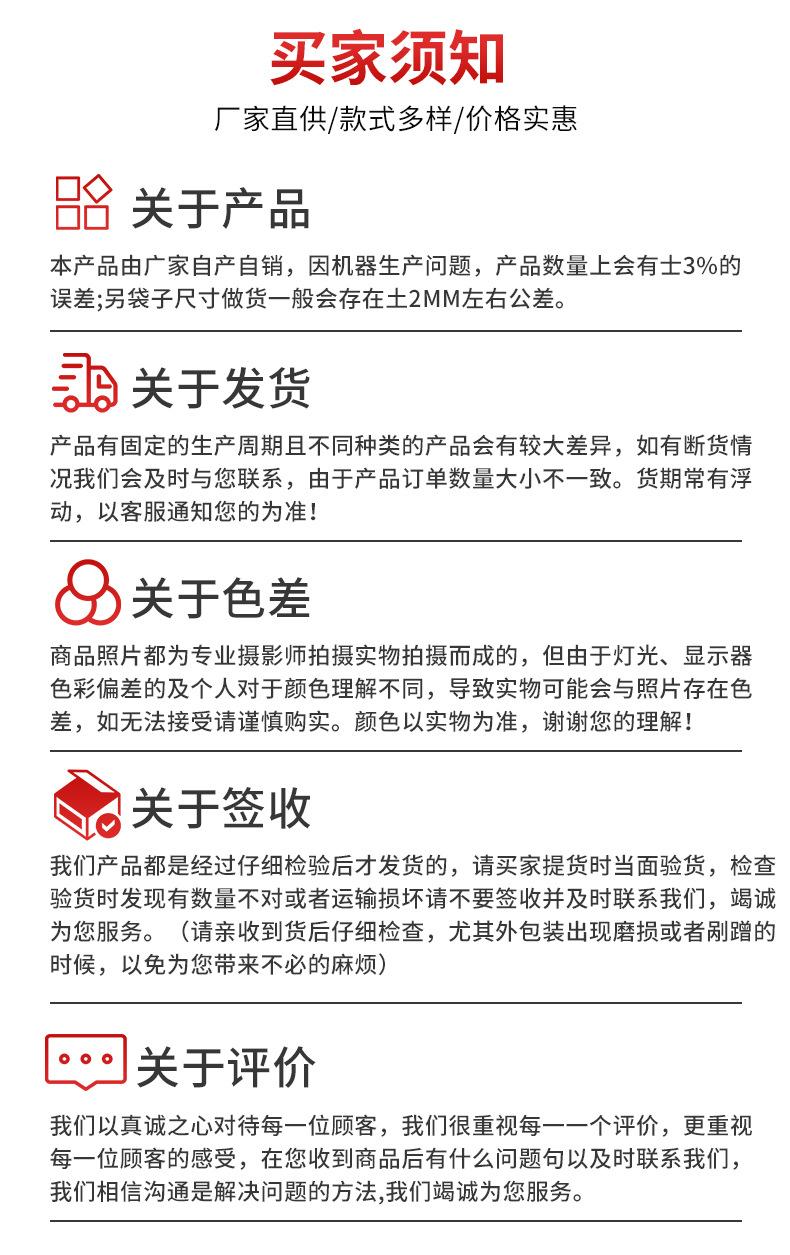 【2】Por favor especifique el grosor, la longitud, el ancho y otros requisitos de su bolsa;