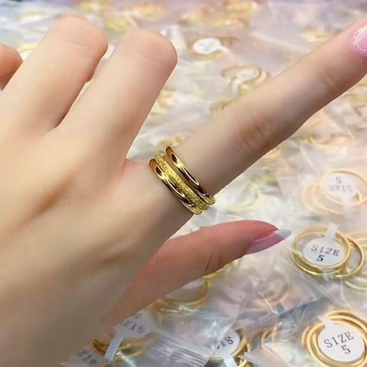 Anillo de Acero de Titanio Nihon Trendy para Mujer, Tres Generaciones, Trébol de Cuatro Hojas Simple Chapado en Oro, Diseño Nicho Popular de Diamantes al por Mayor