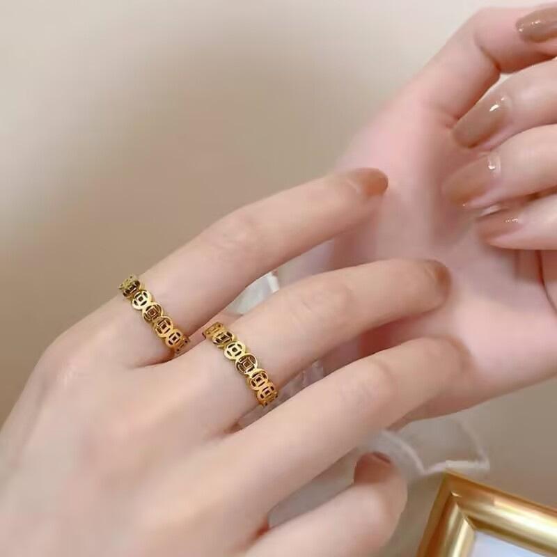 Nezha-open ring, Gold = four leaf clover ring, Gold = wanfu ring, Ancient plain ring, Golden = three lives and...