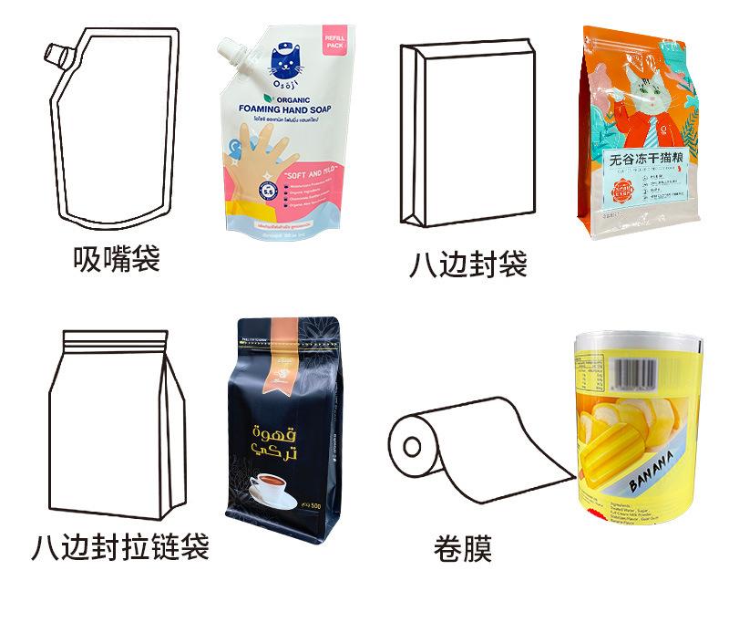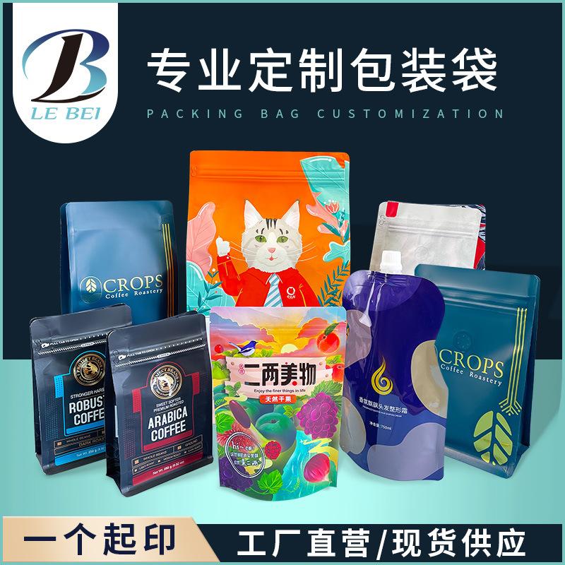 Bolsa de embalaje de plástico con sellado lateral de ocho lados, personalizada, compuesta de papel de aluminio, sellado de tres lados, bolsa de embalaje autónoma para alimento para perros, personalizada