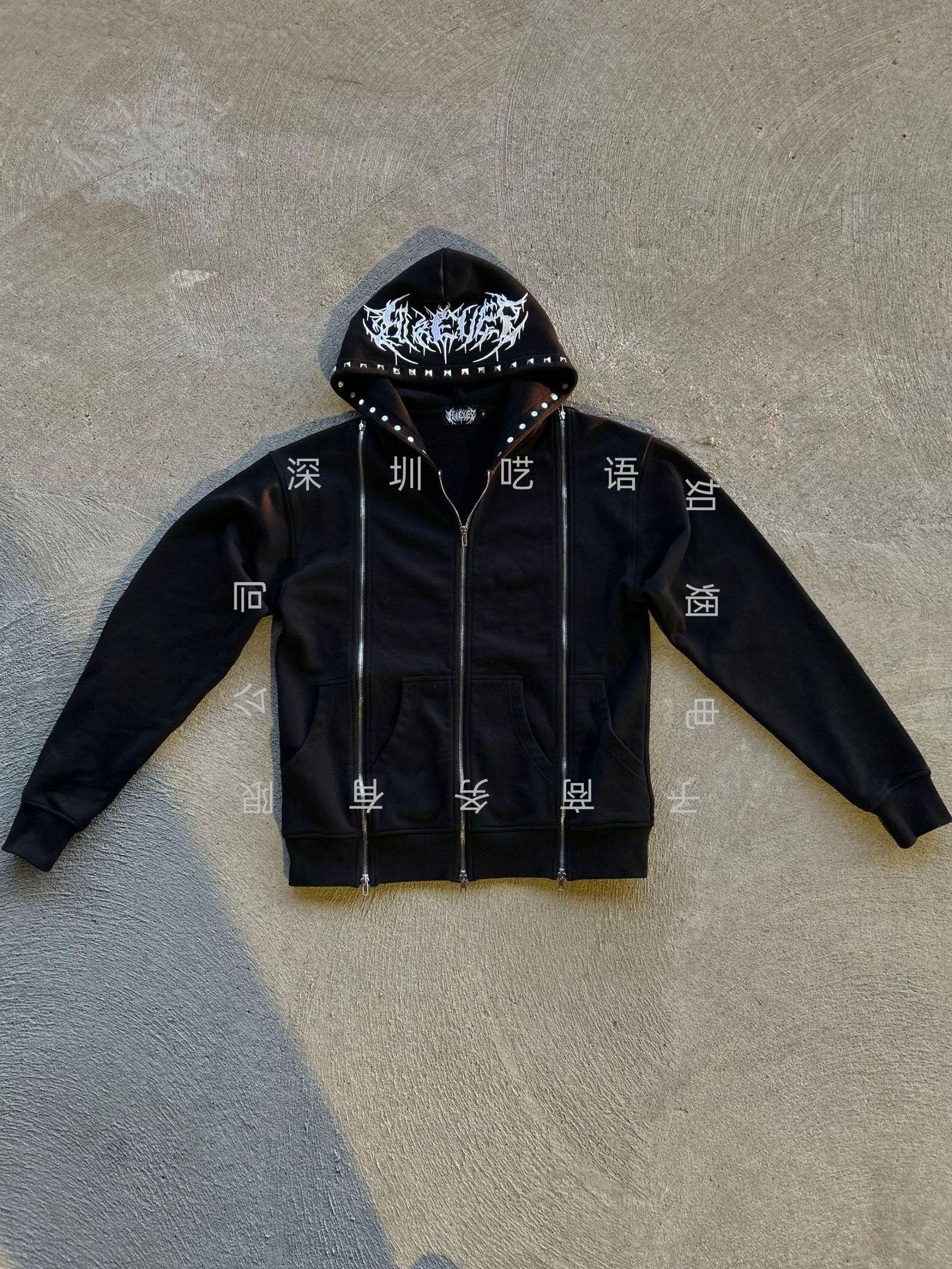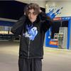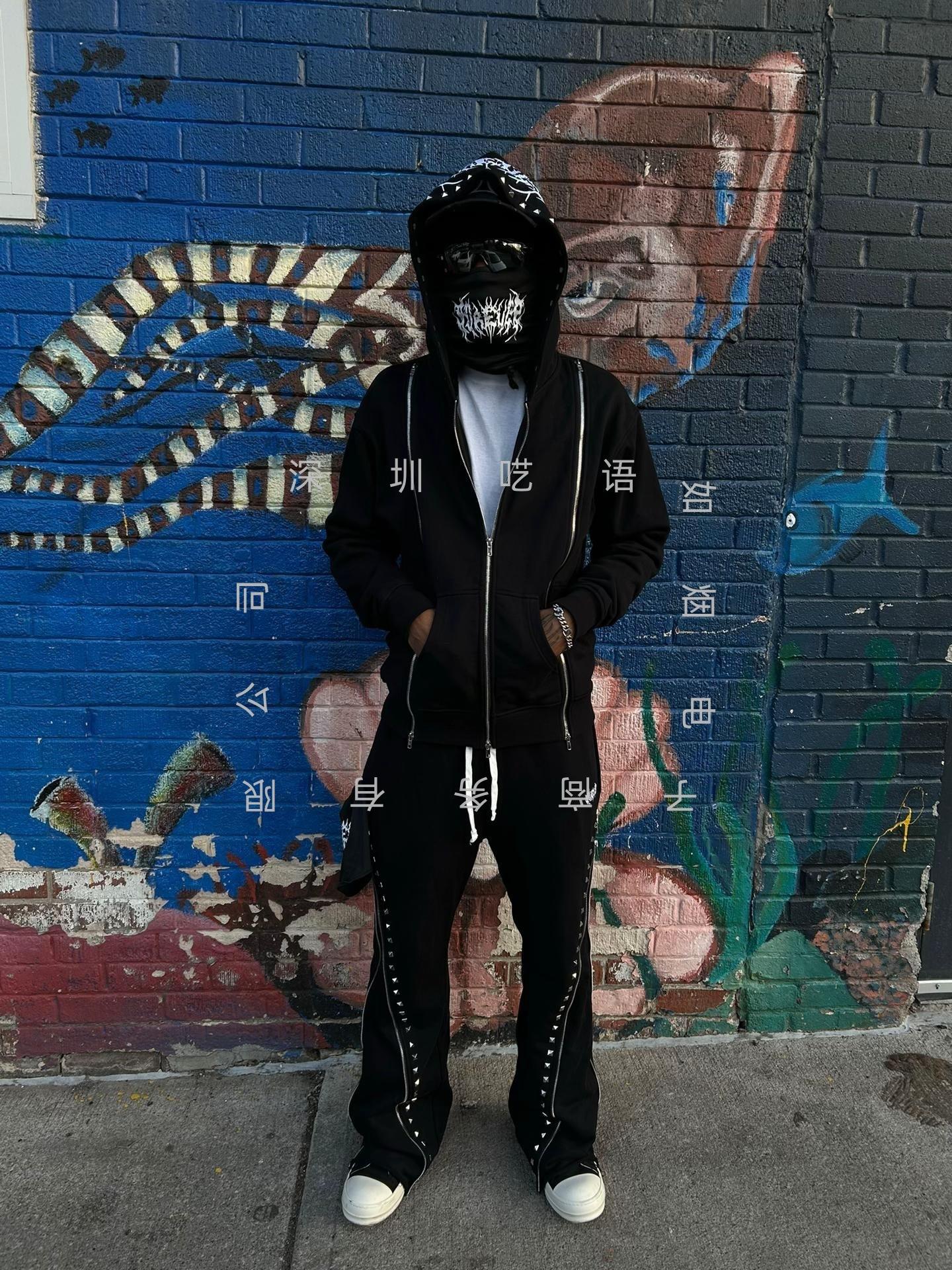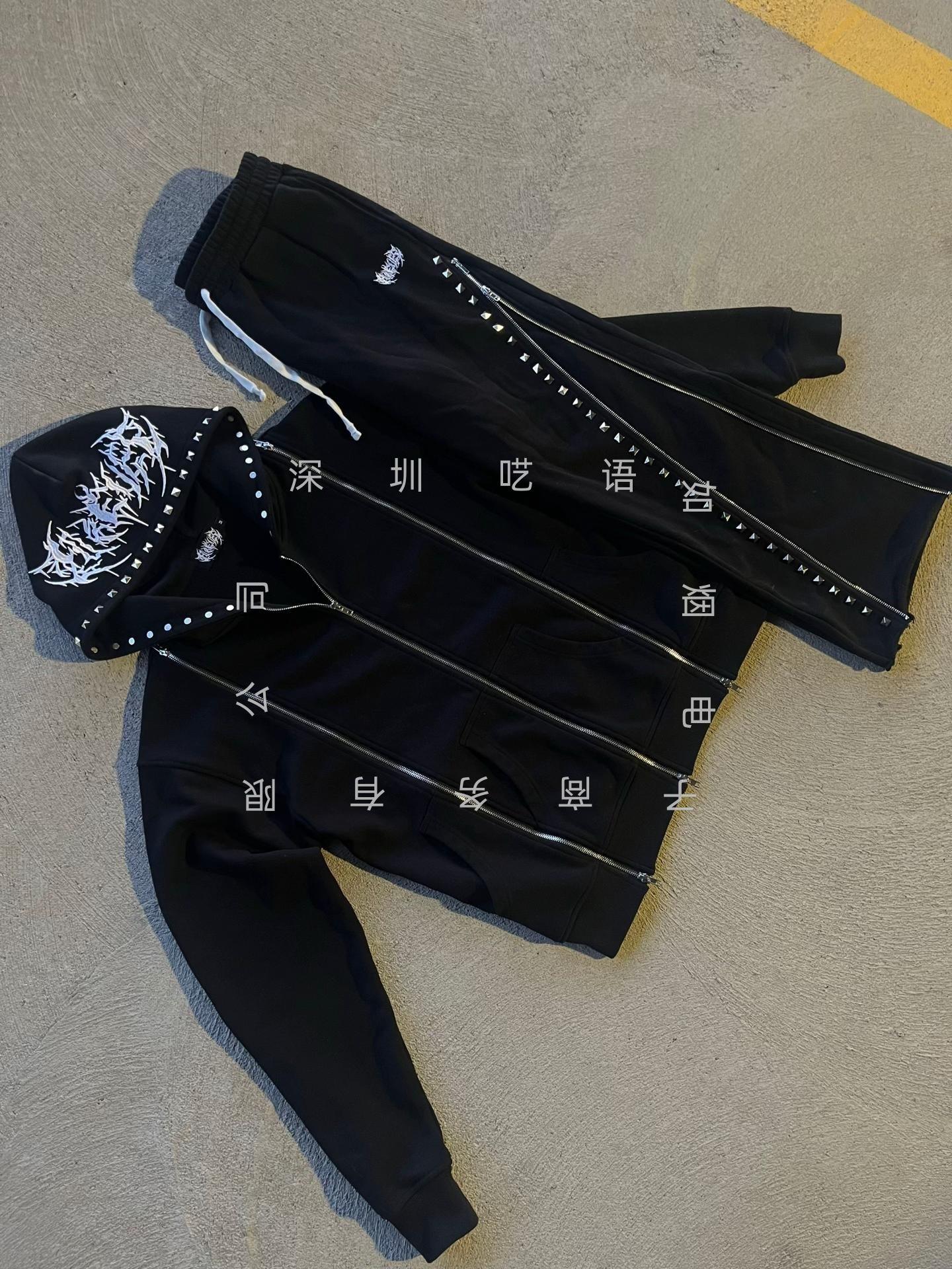 Personalidad de Comercio Exterior Europea y Americana Estampado Taladro Caliente Parte Inferior Sudadera con Capucha y Cremallera Conjunto de Pantalones Deportivos Jersey de Manga Larga con Capucha Retro
