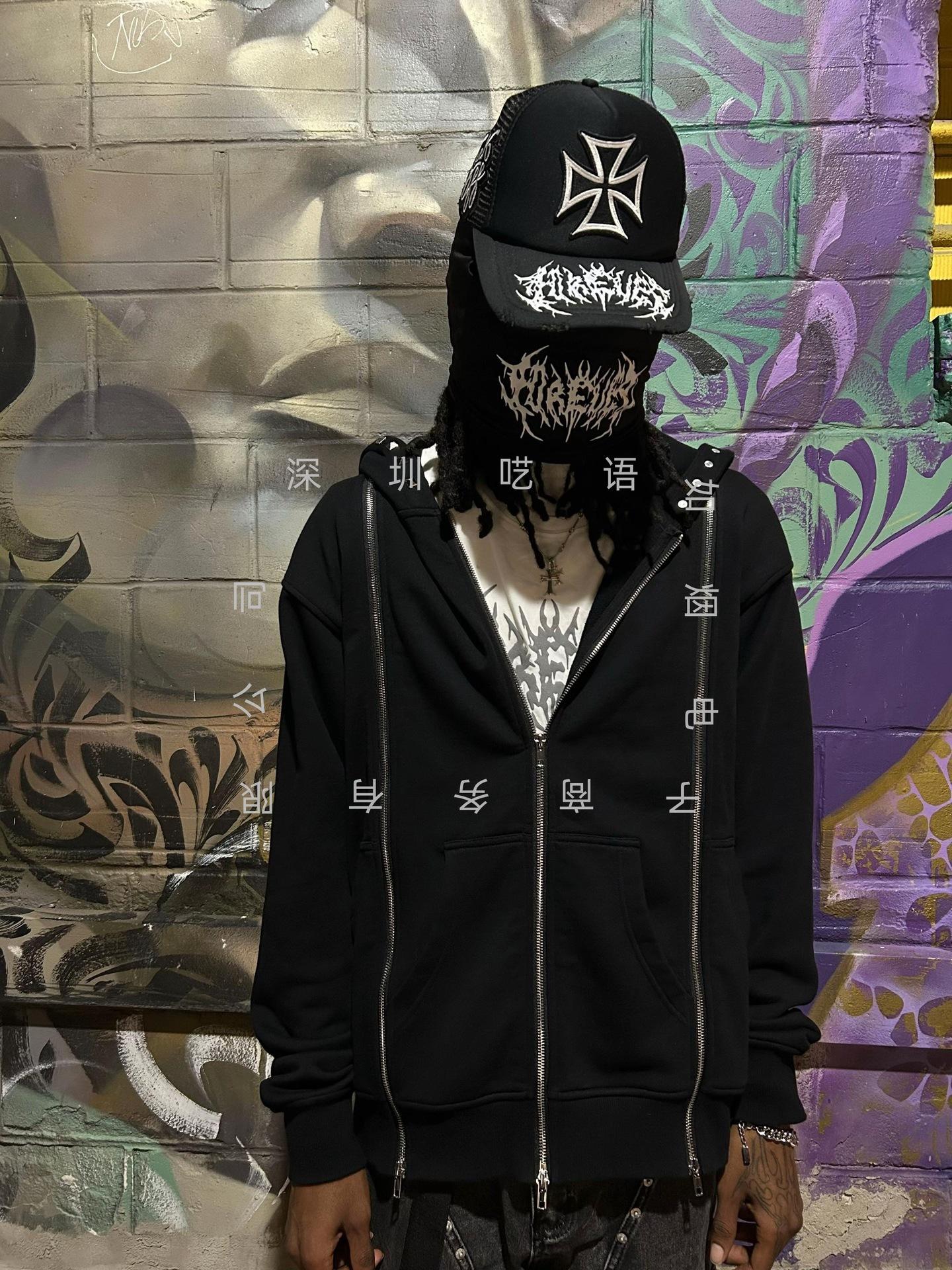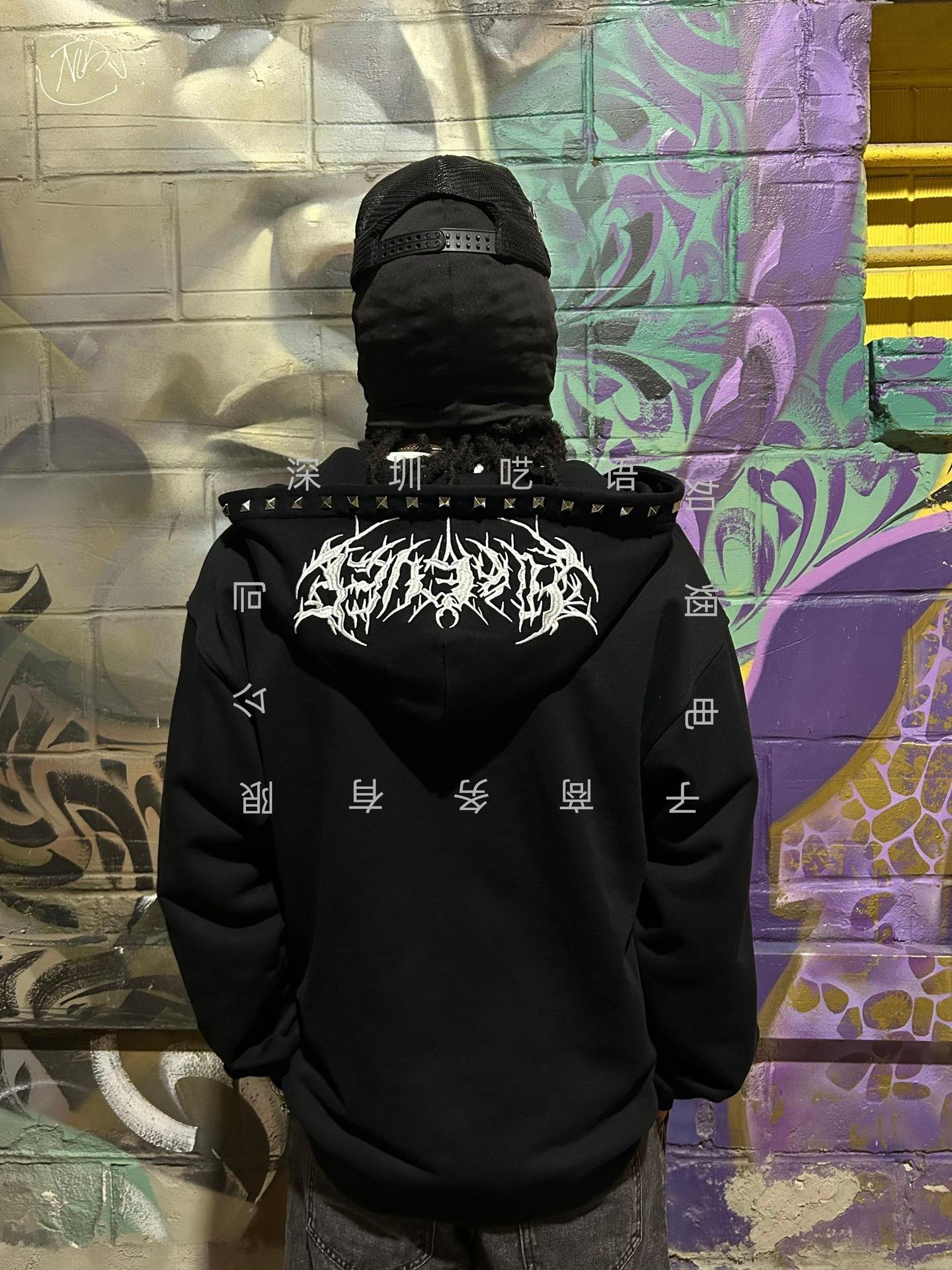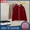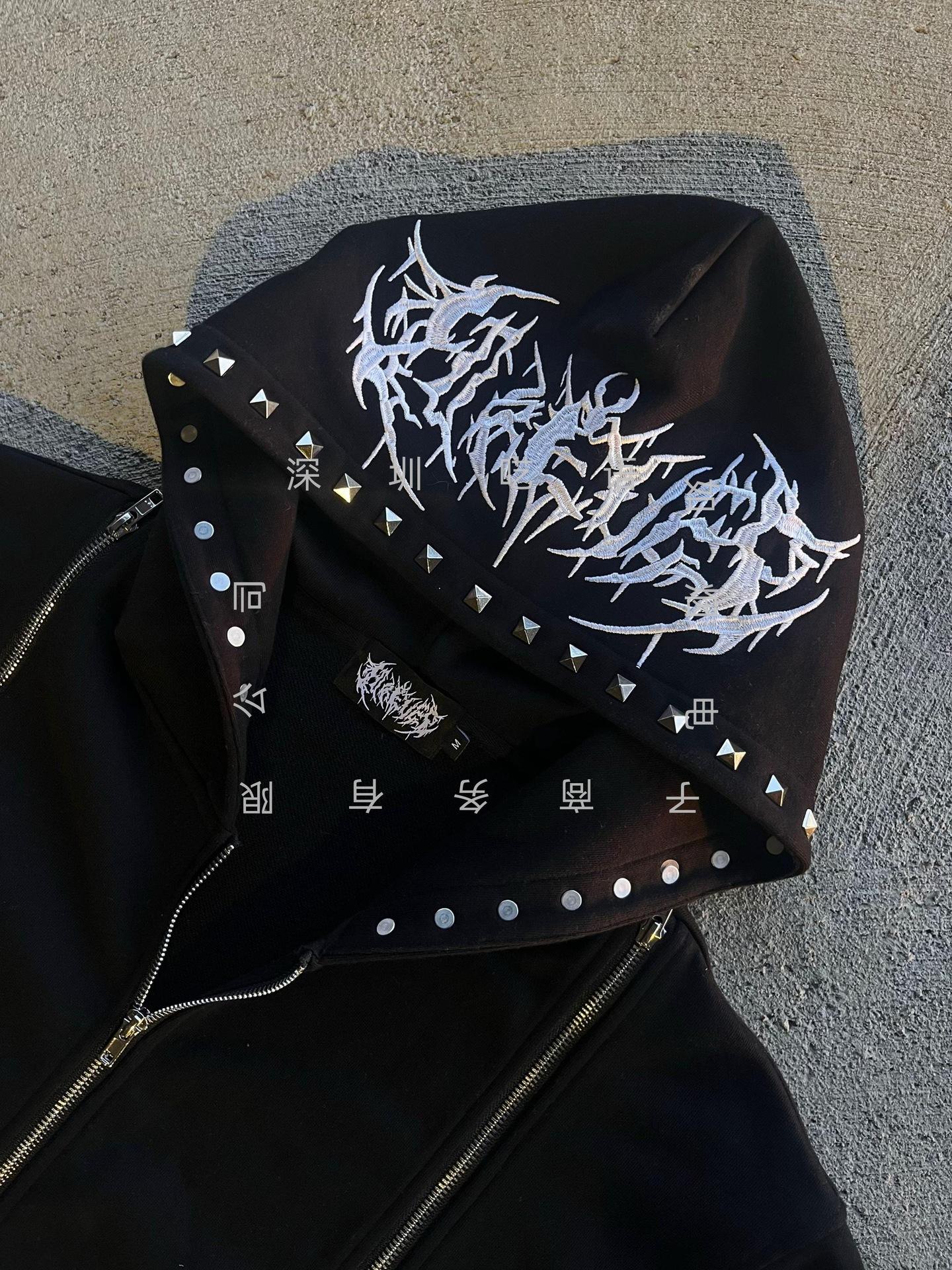 Personalidad de Comercio Exterior Europea y Americana Estampado Taladro Caliente Parte Inferior Sudadera con Capucha y Cremallera Conjunto de Pantalones Deportivos Jersey de Manga Larga con Capucha Retro