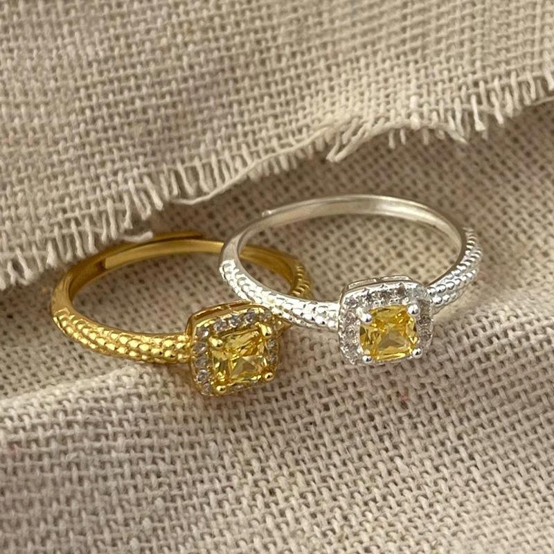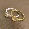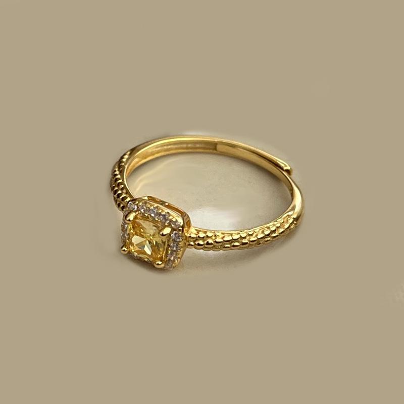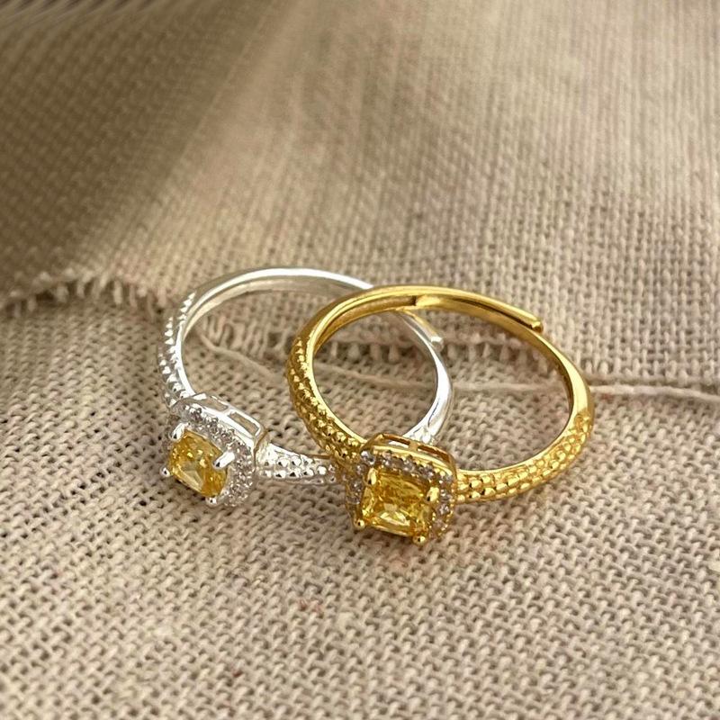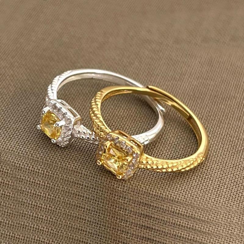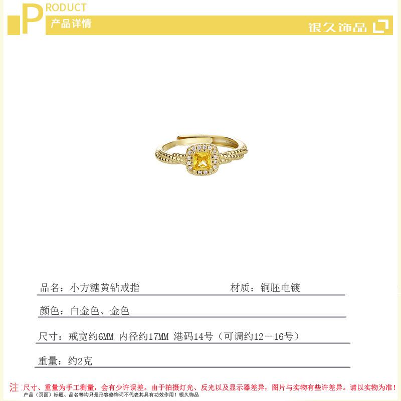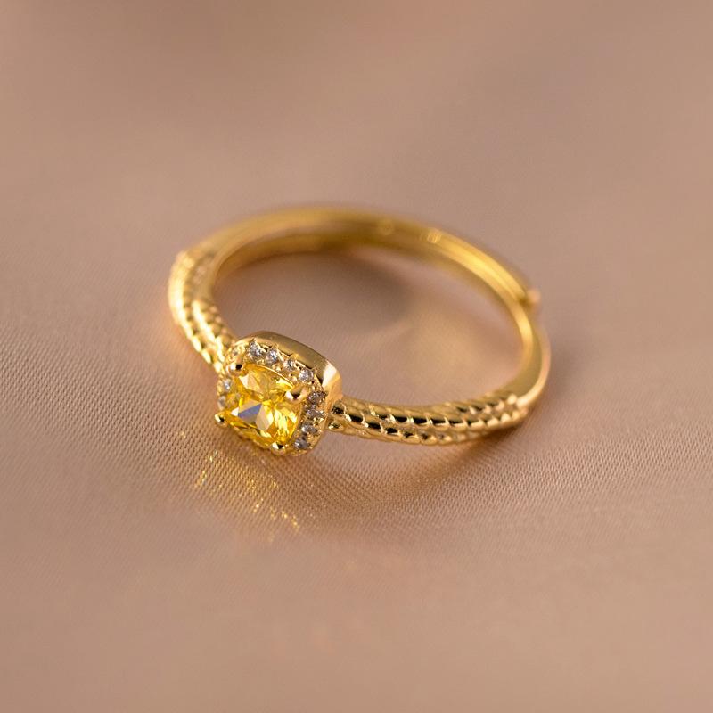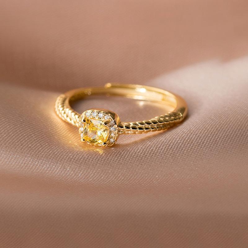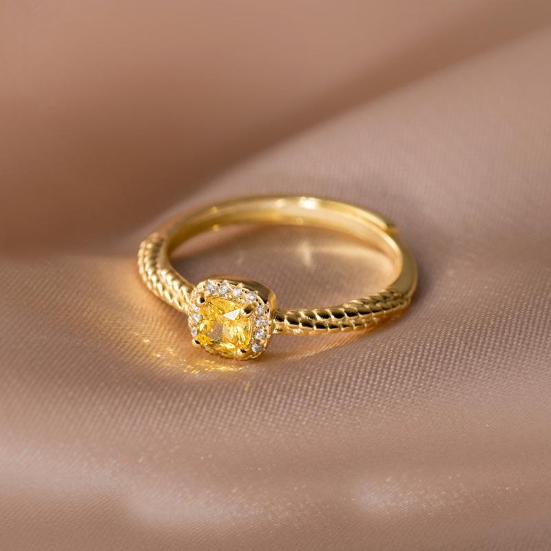 Anillo de Diamante Amarillo Azúcar Cuadrado Pequeño Moda Personalizada Lujo Ligero Super Flash Zircón Incrustado Sentido Avanzado Anillo de Dedo Suministro de Comercio Electrónico