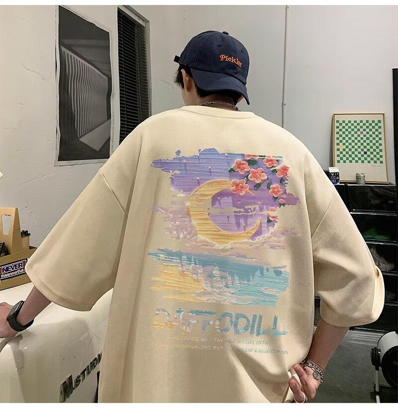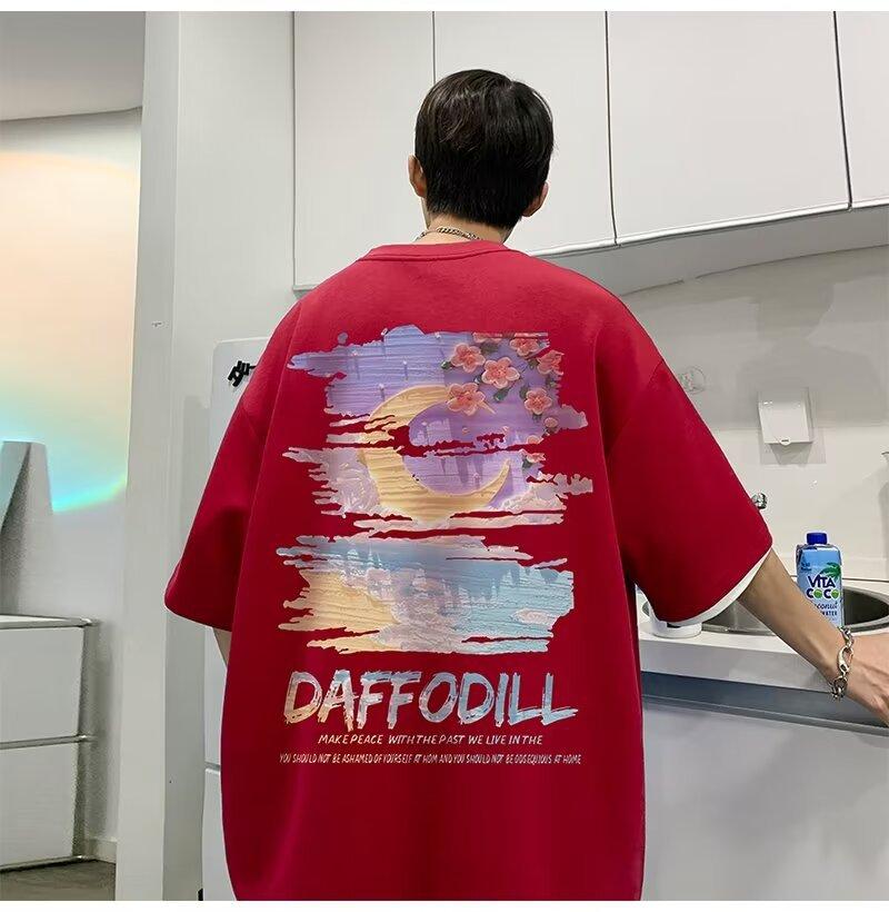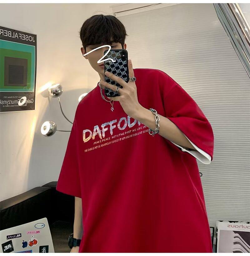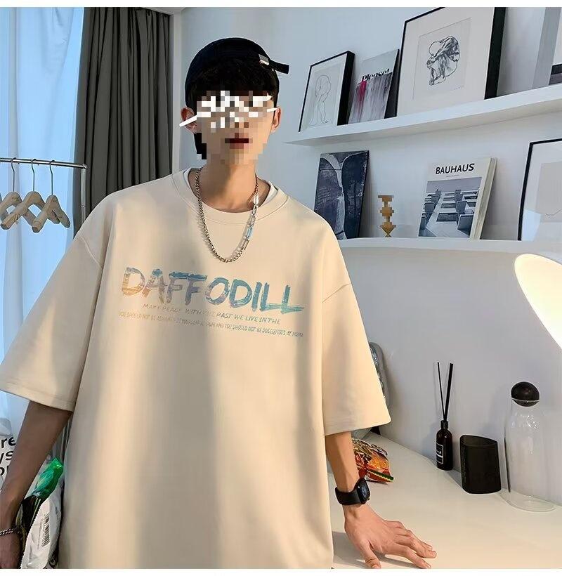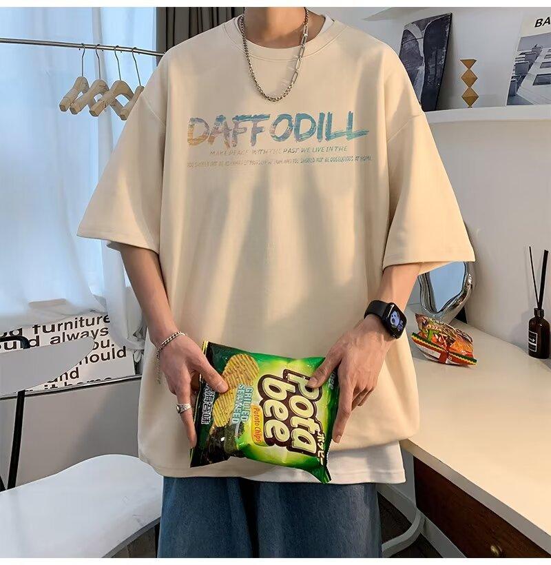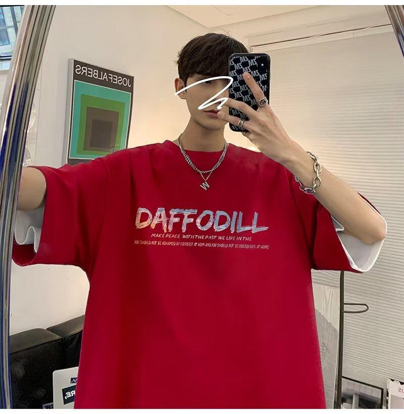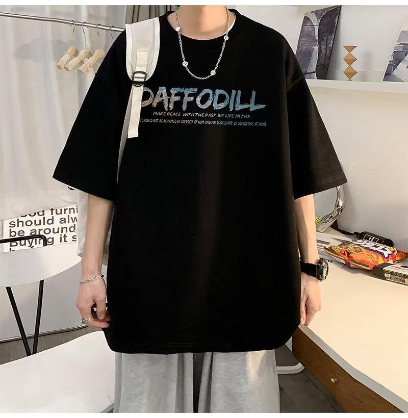 Camiseta de manga corta para hombre verano nueva algodón manga corta cuello redondo camiseta talla grande casual juvenil camiseta básica para hombre