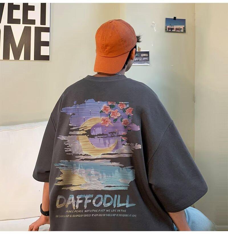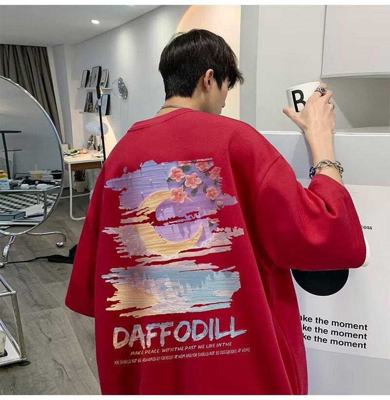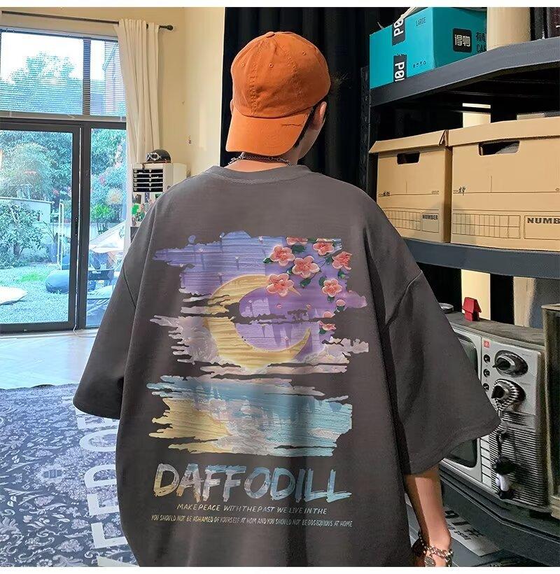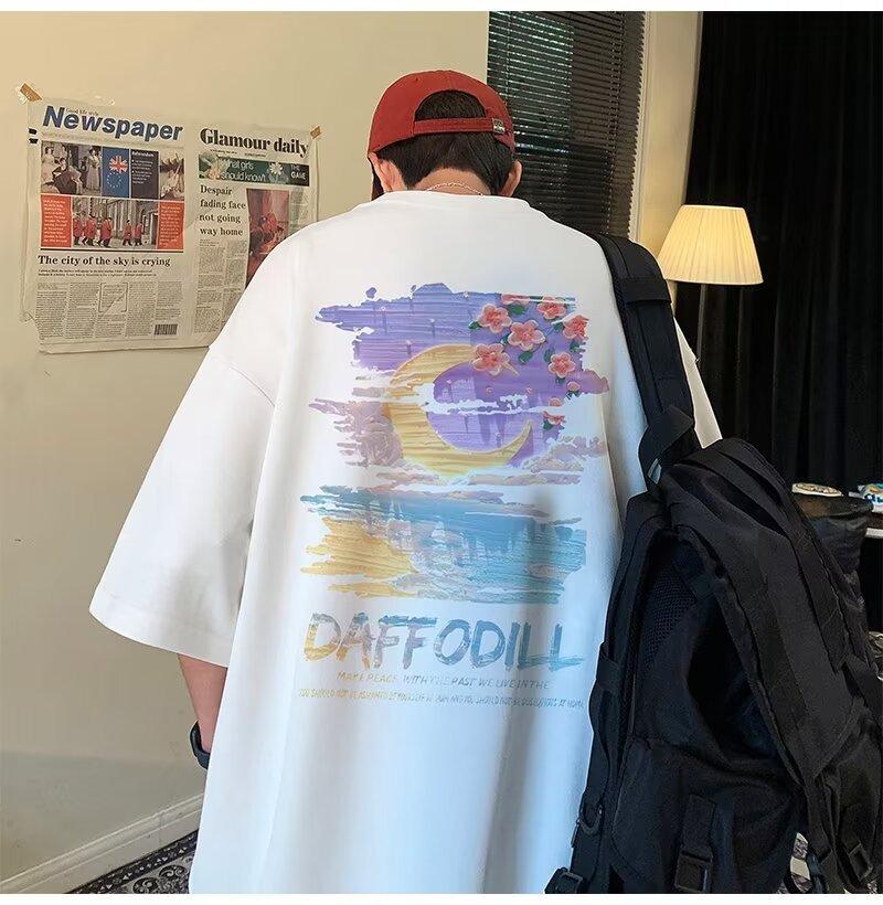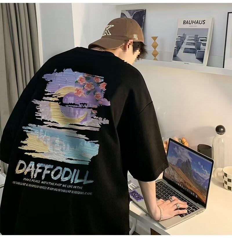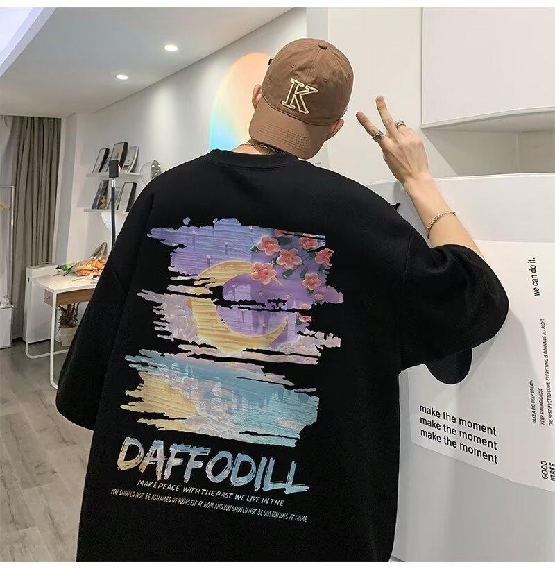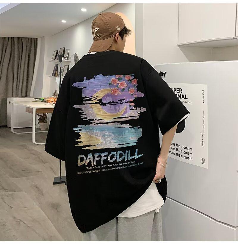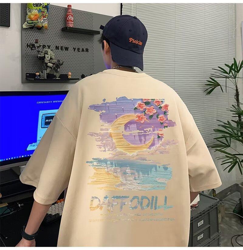 Camiseta de manga corta para hombre verano nueva algodón manga corta cuello redondo camiseta talla grande casual juvenil camiseta básica para hombre