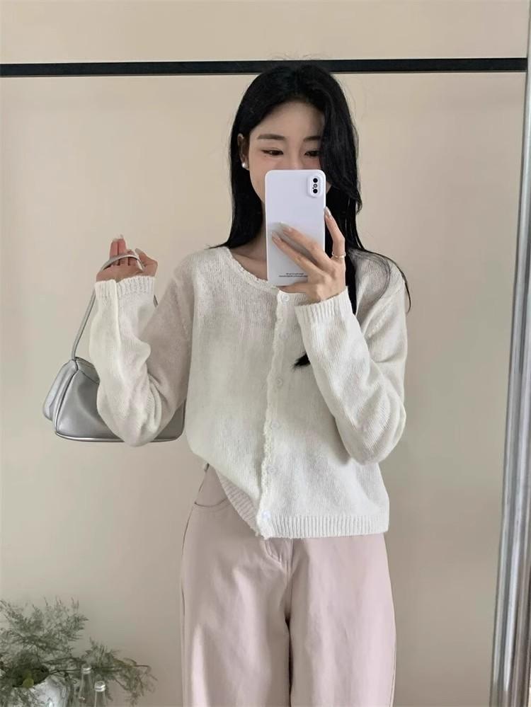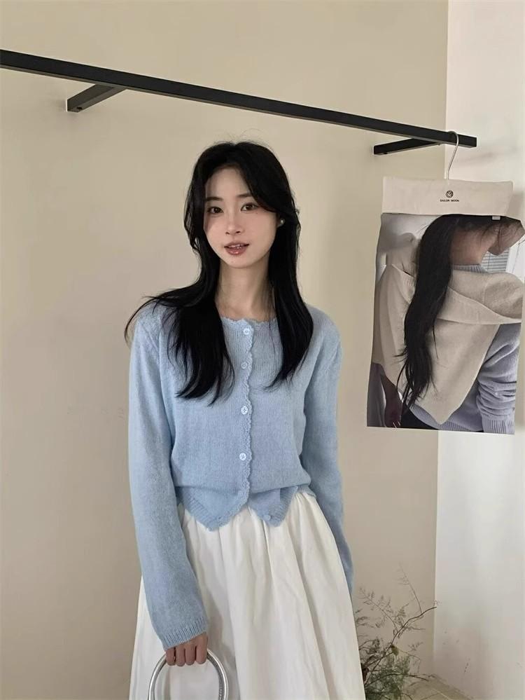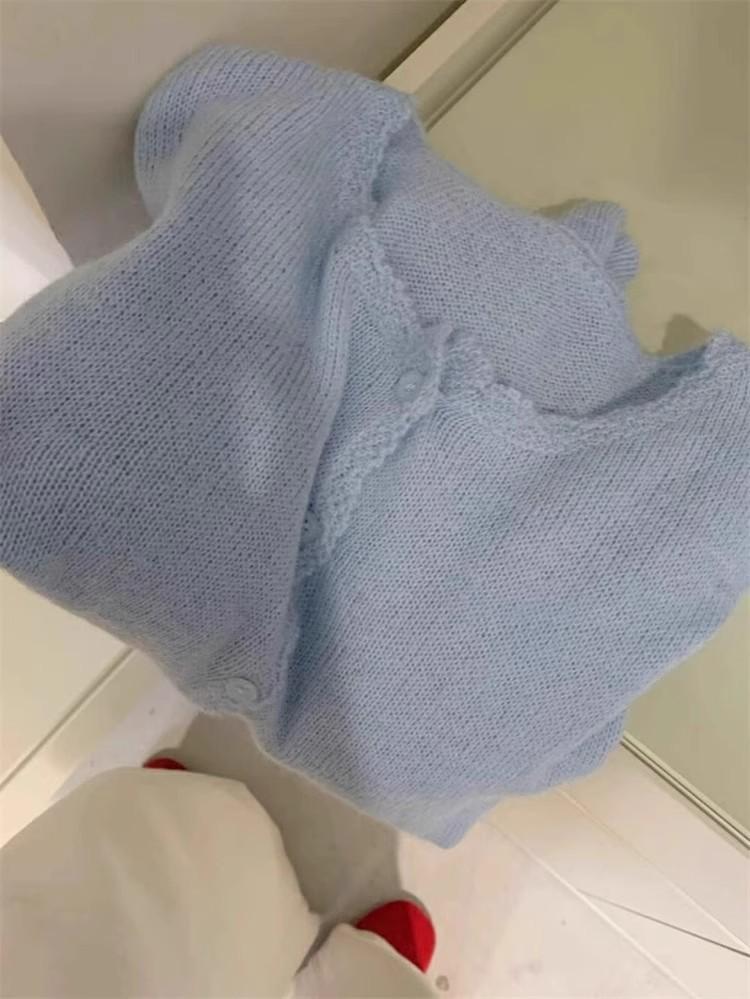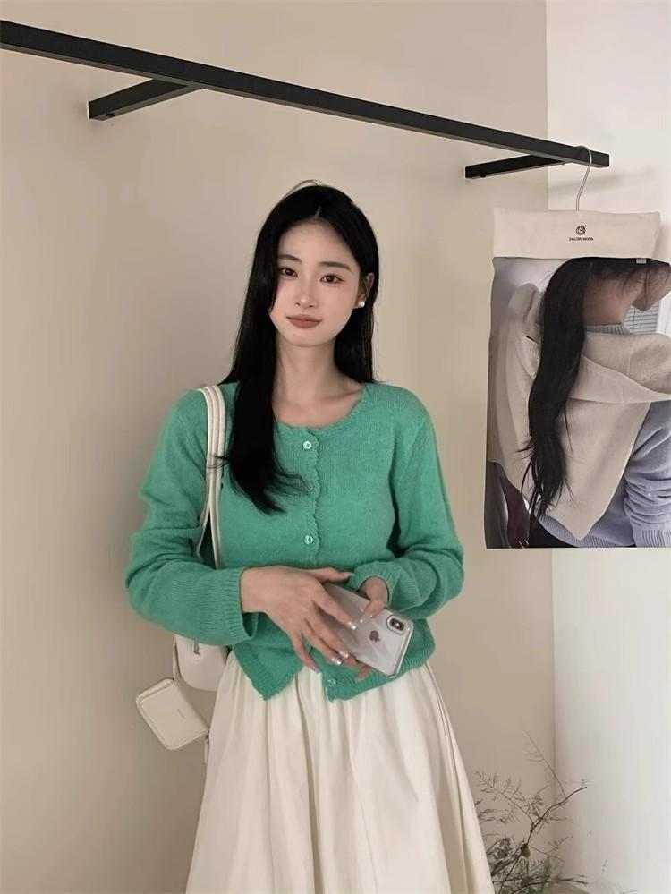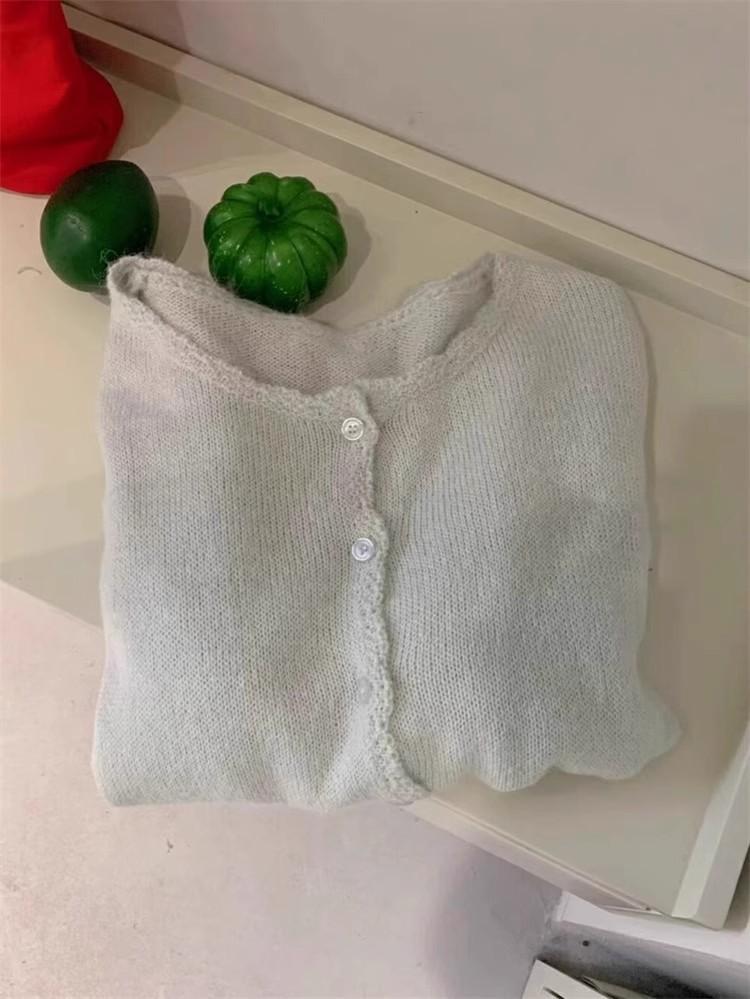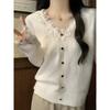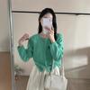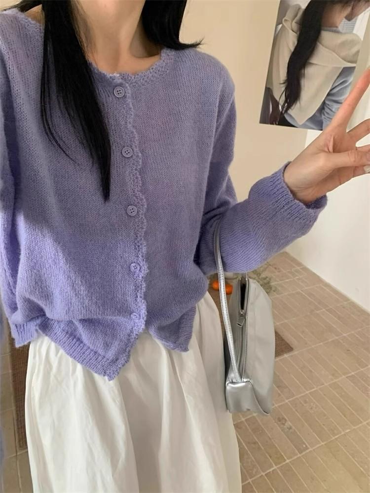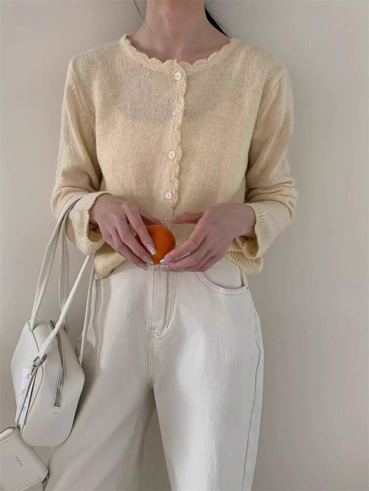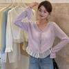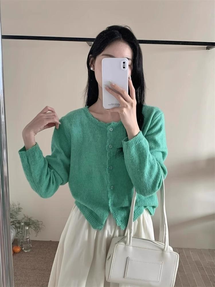 Cárdigan de Punto de Encaje Verde Suave Simple Estilo Coreano para Mujer Primavera y Verano 2025 Blusa Delgada Abrigo Top de Cuello Redondo