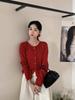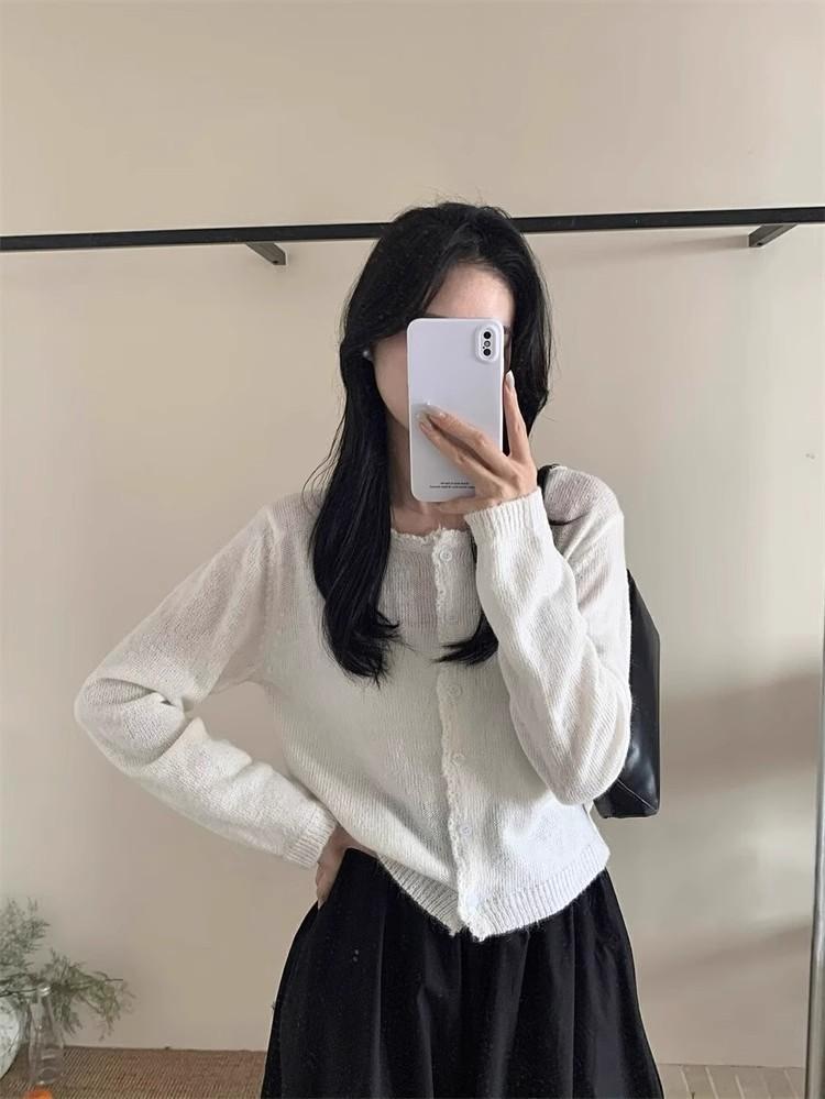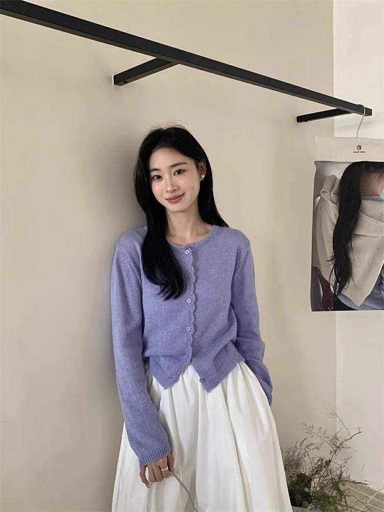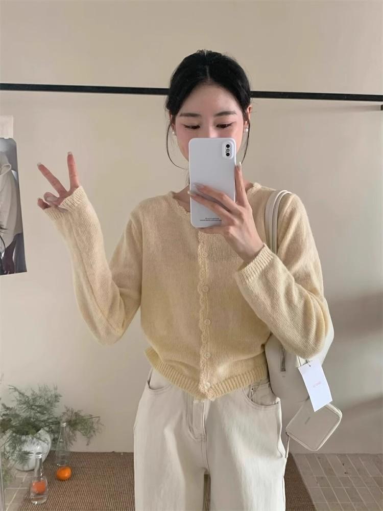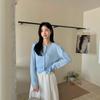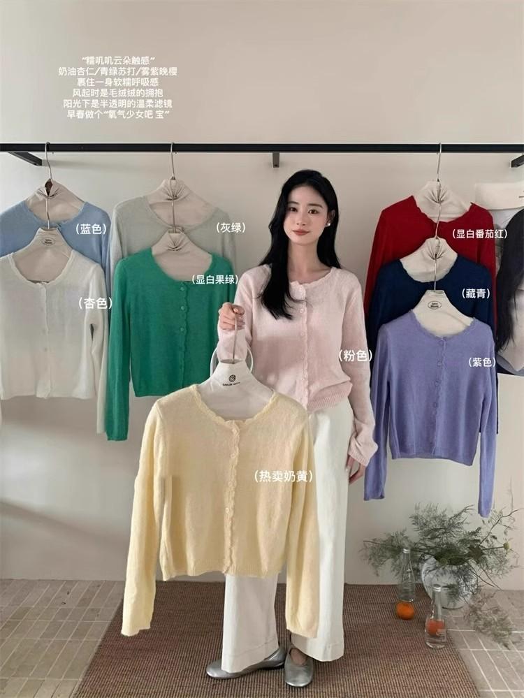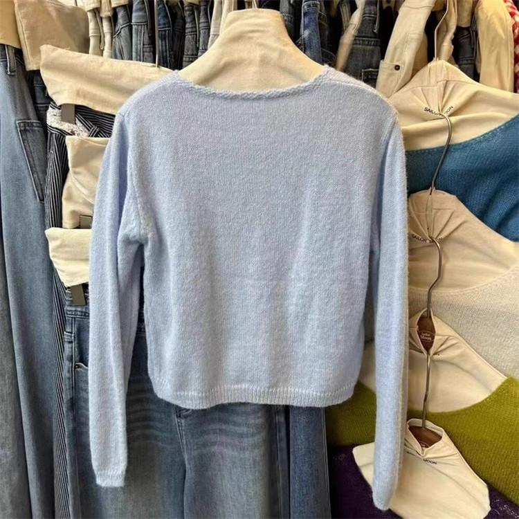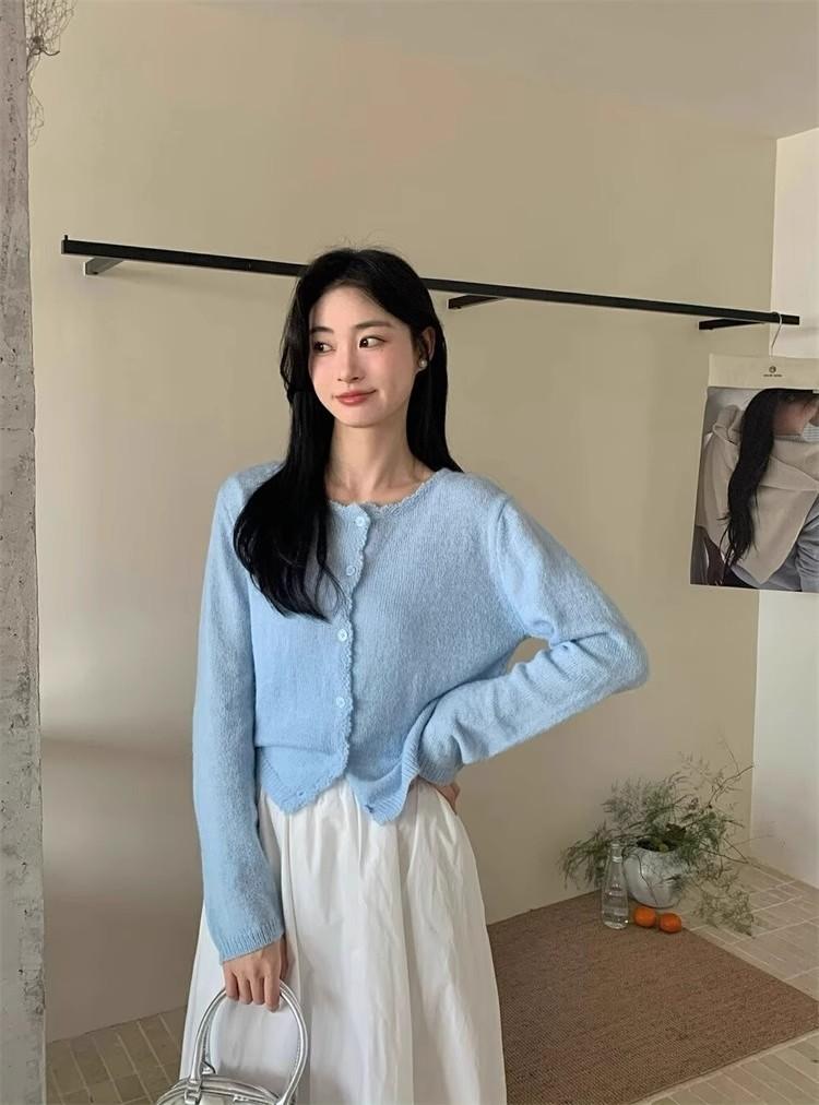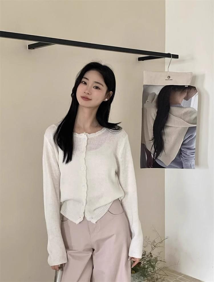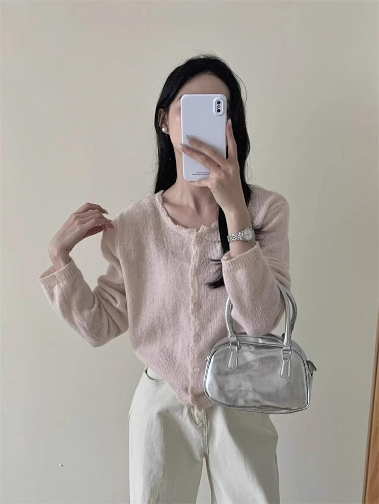 Cárdigan de Punto de Encaje Verde Suave Simple Estilo Coreano para Mujer Primavera y Verano 2025 Blusa Delgada Abrigo Top de Cuello Redondo