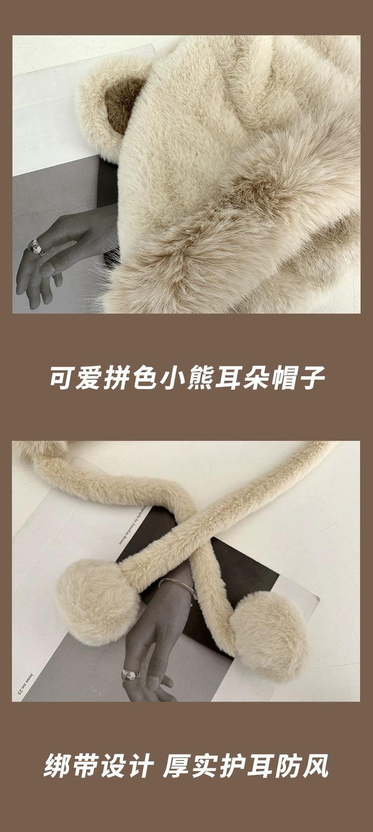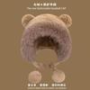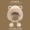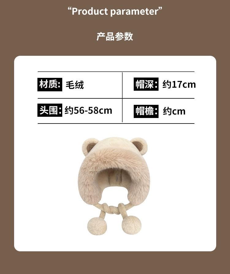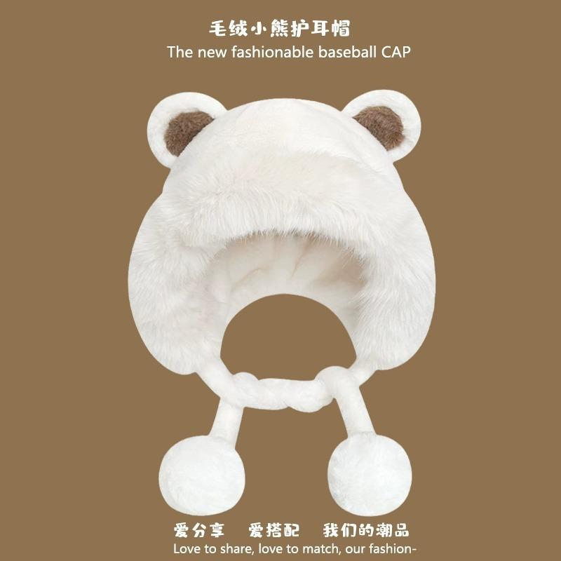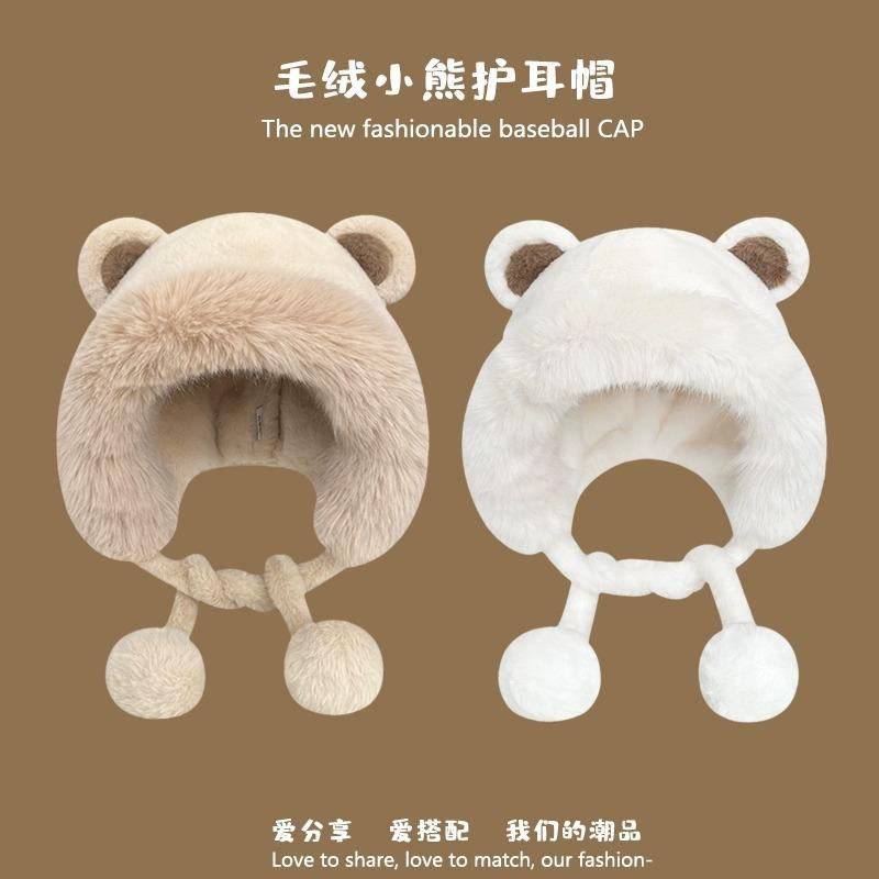 Invierno Estilo Coreano para Mujer Lindo Gorro Integrado de Felpa con Orejas de Oso Estudiantil Forrado de Lana Cálido para Montar a Prueba de Frío Sombrero Protector de Orejas
