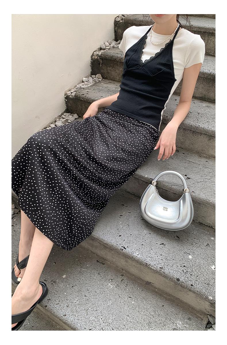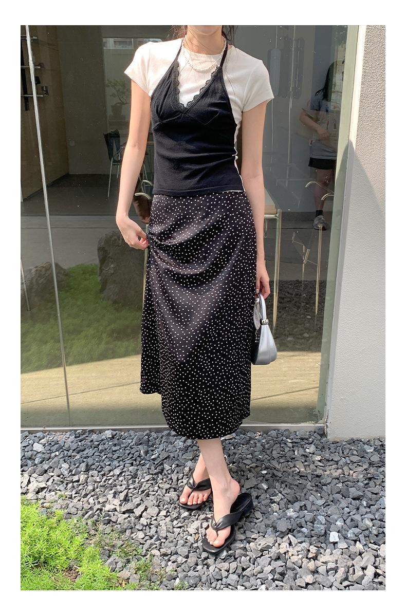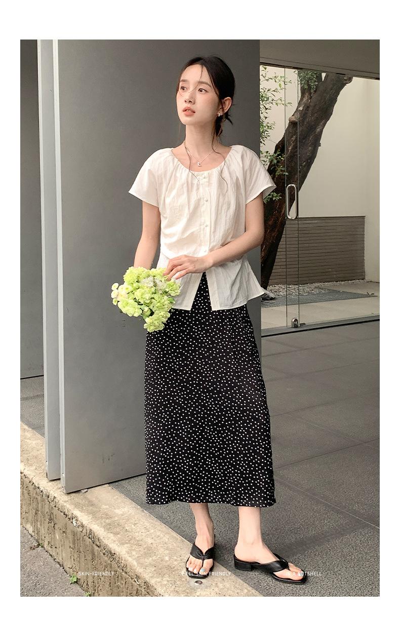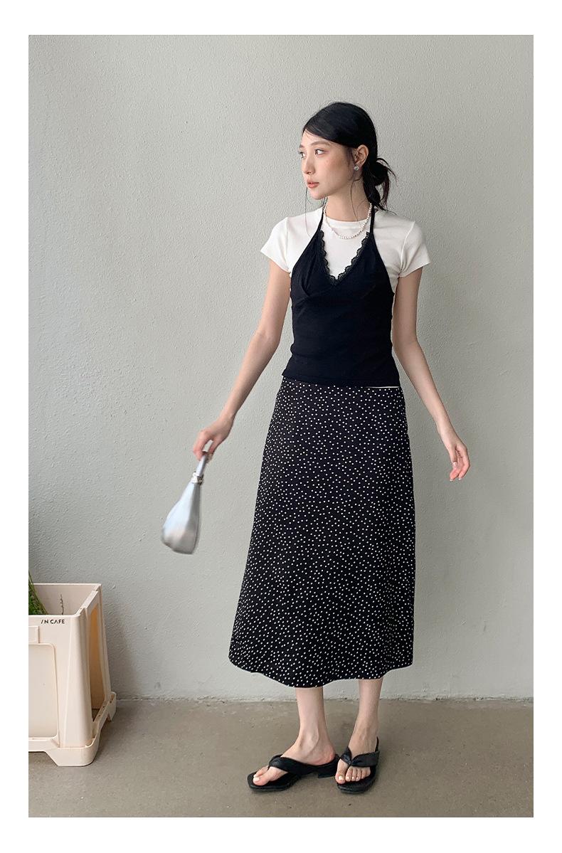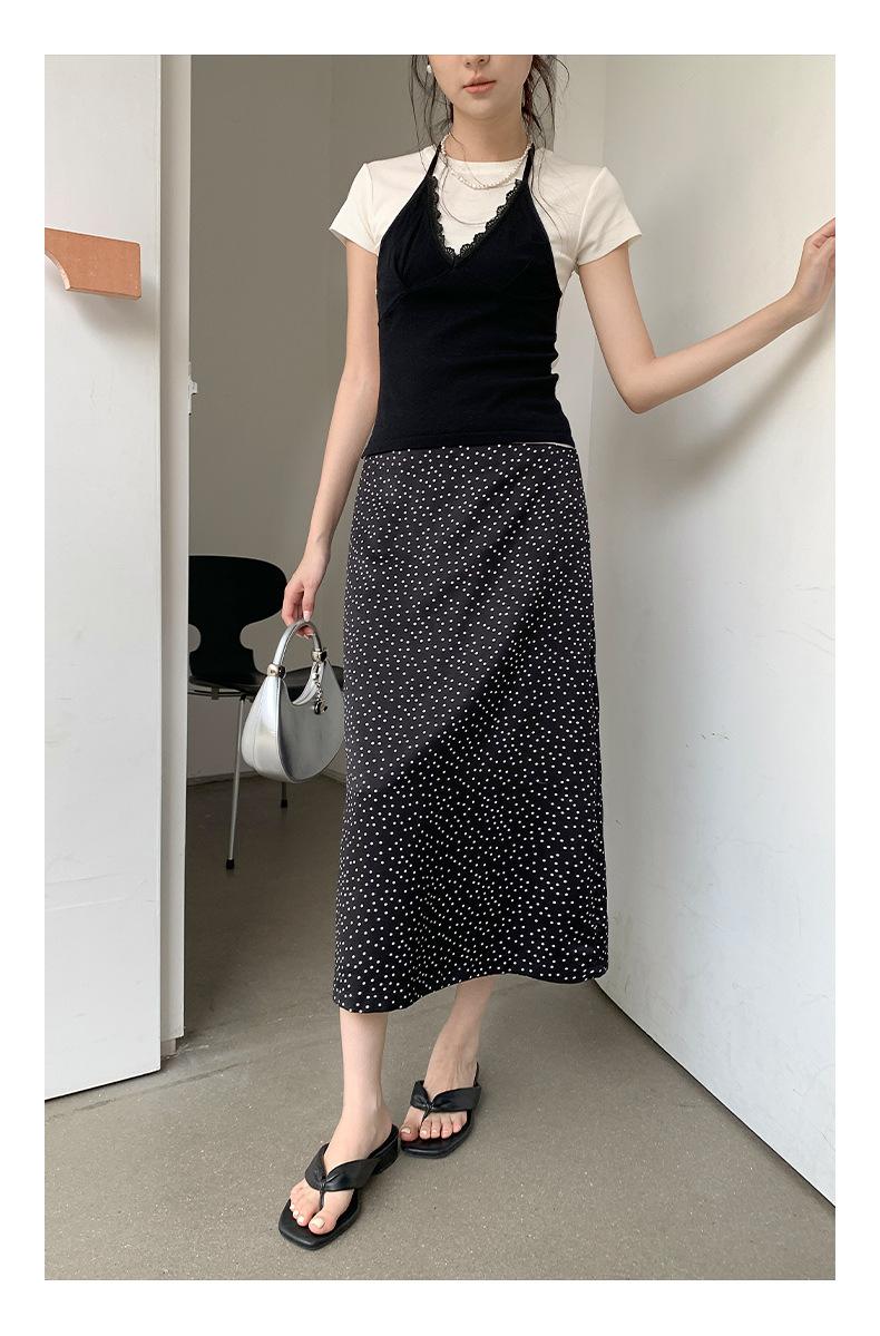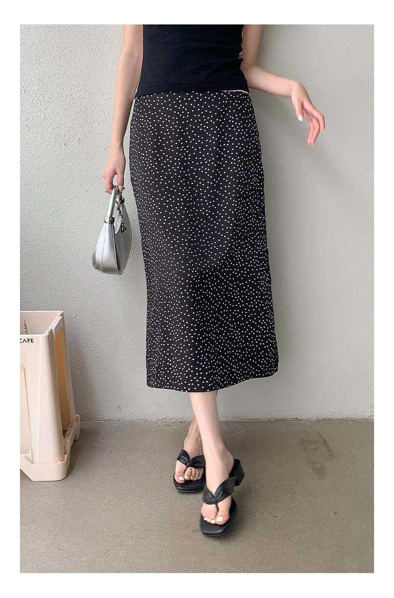 Falda midi acampanada con lunares, falda de estilo coreano de cintura alta, femenina, que cubre las caderas y estiliza 0403