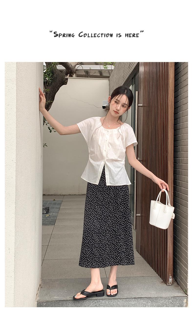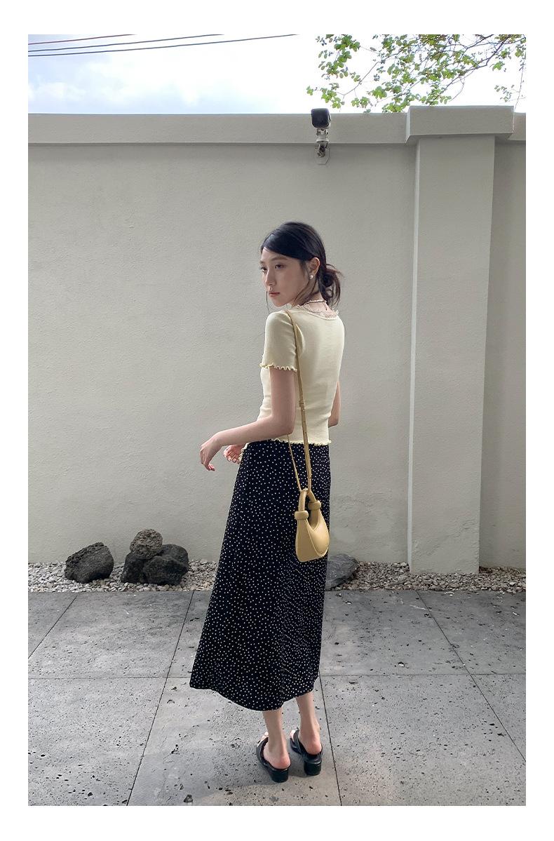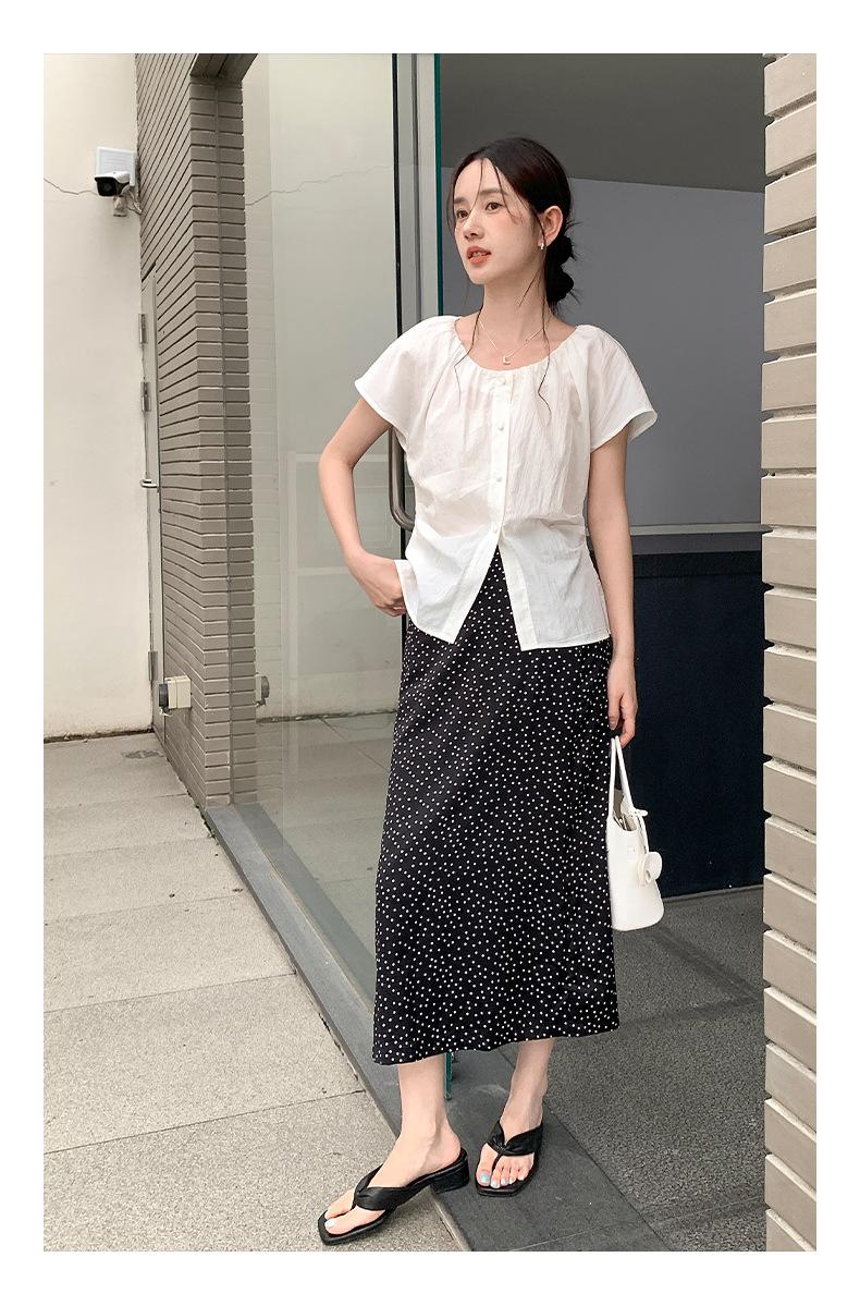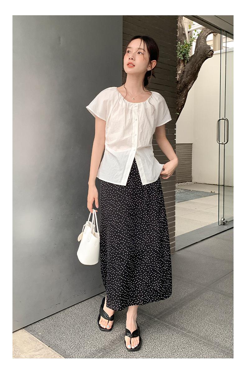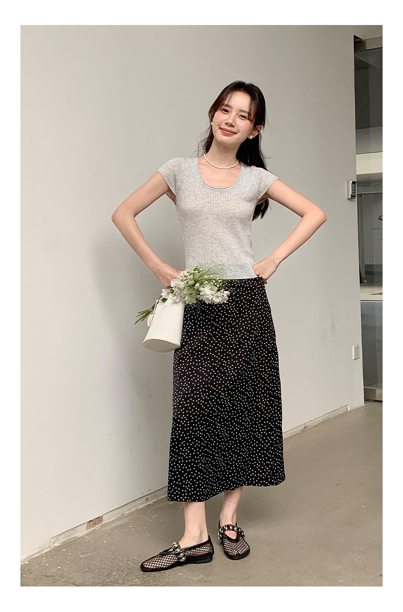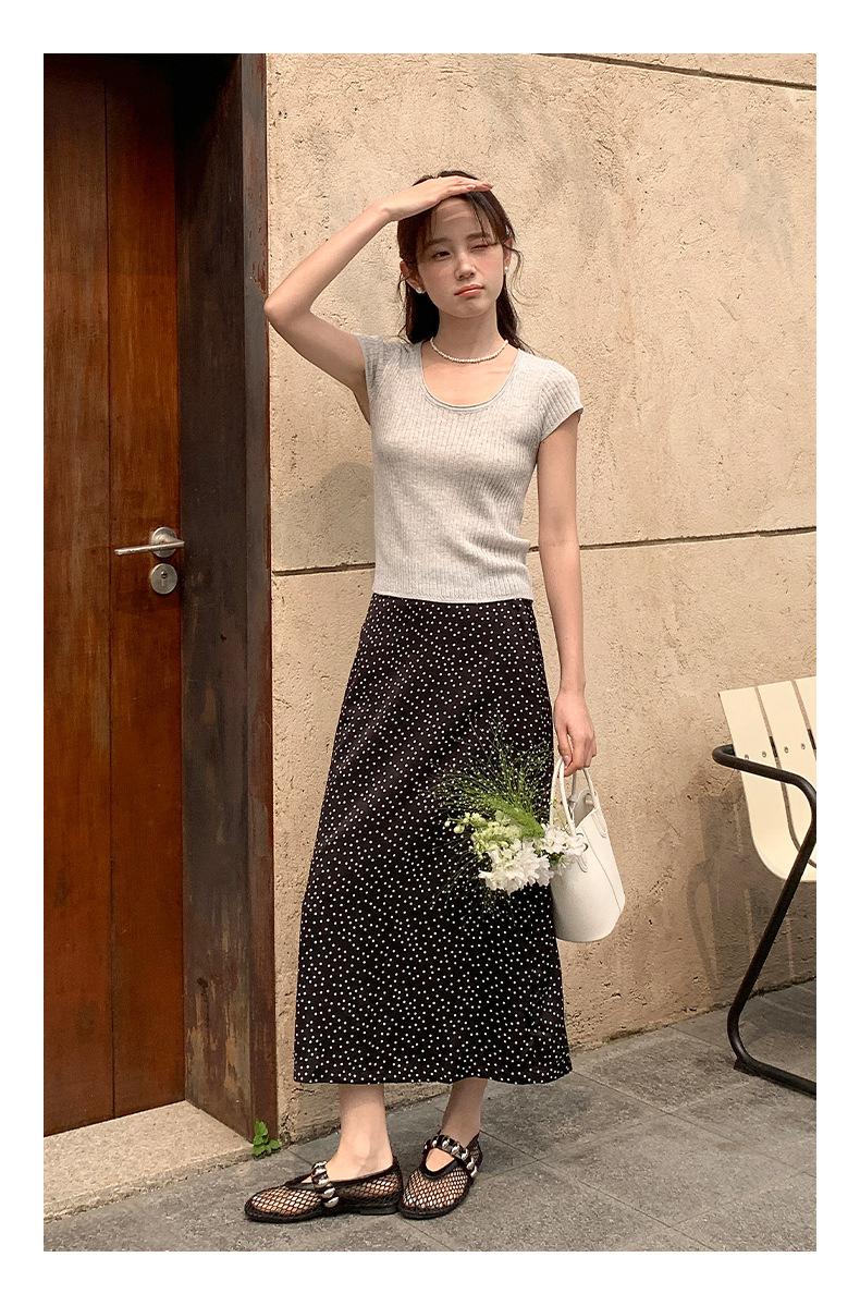 Falda midi acampanada con lunares, falda de estilo coreano de cintura alta, femenina, que cubre las caderas y estiliza 0403