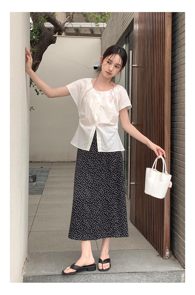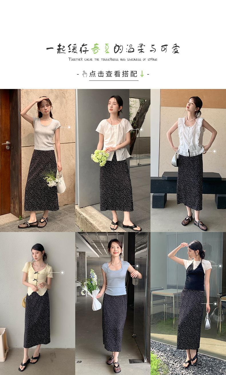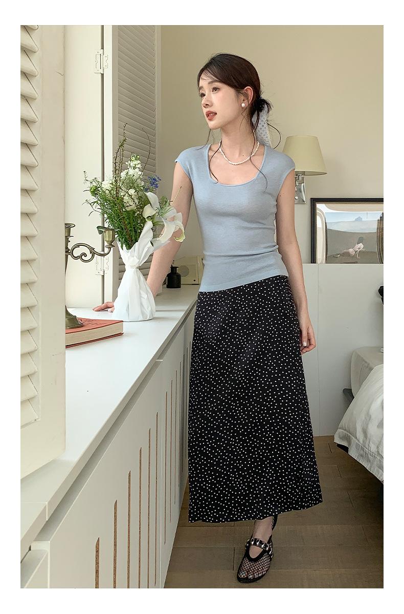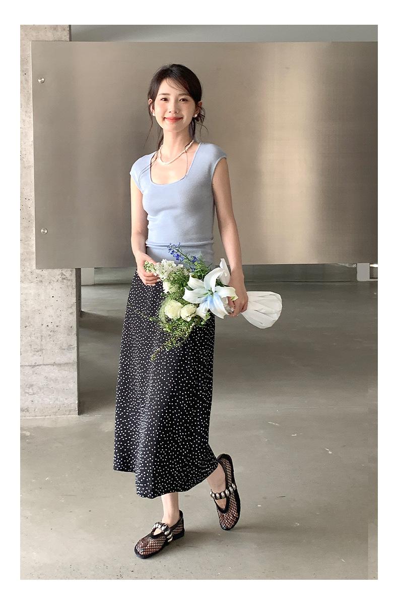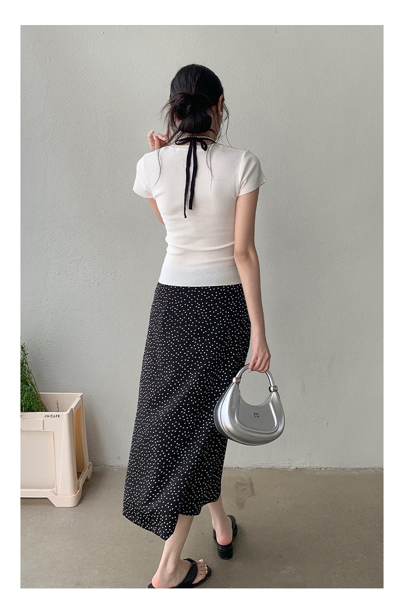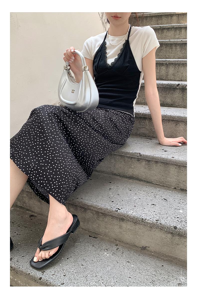 Falda midi acampanada con lunares, falda de estilo coreano de cintura alta, femenina, que cubre las caderas y estiliza 0403