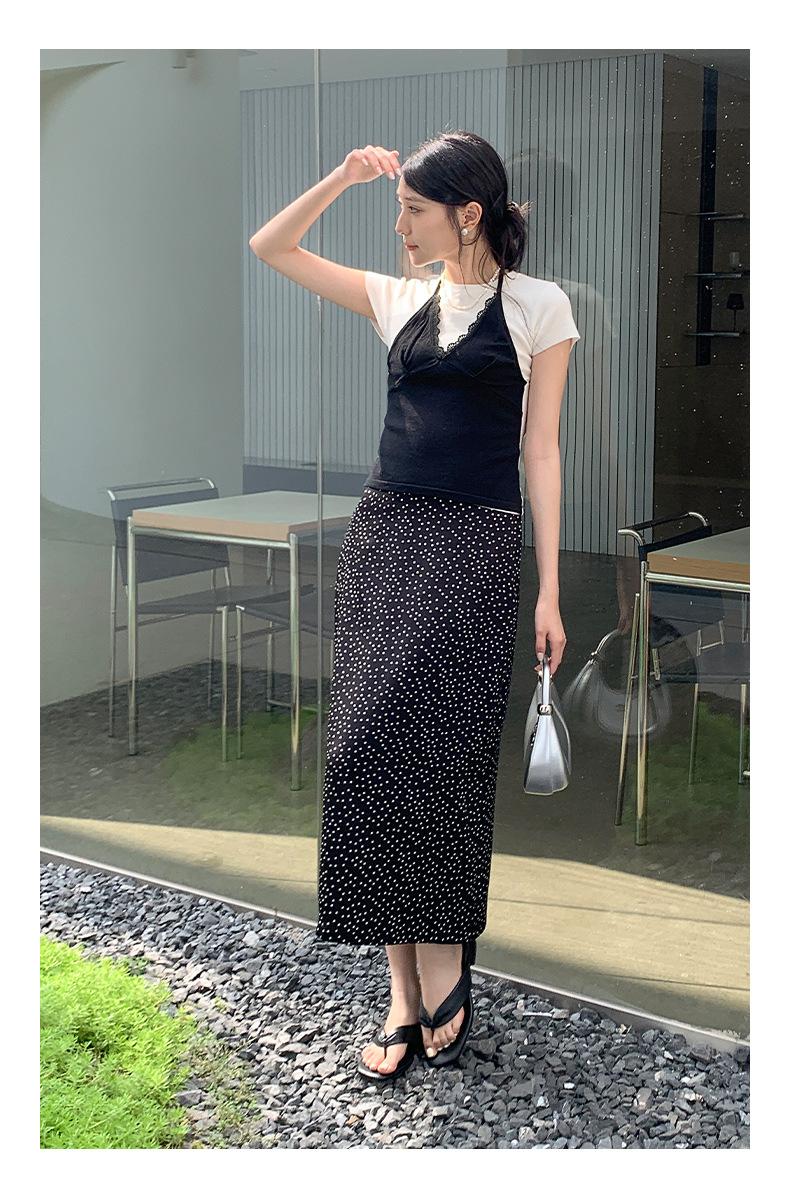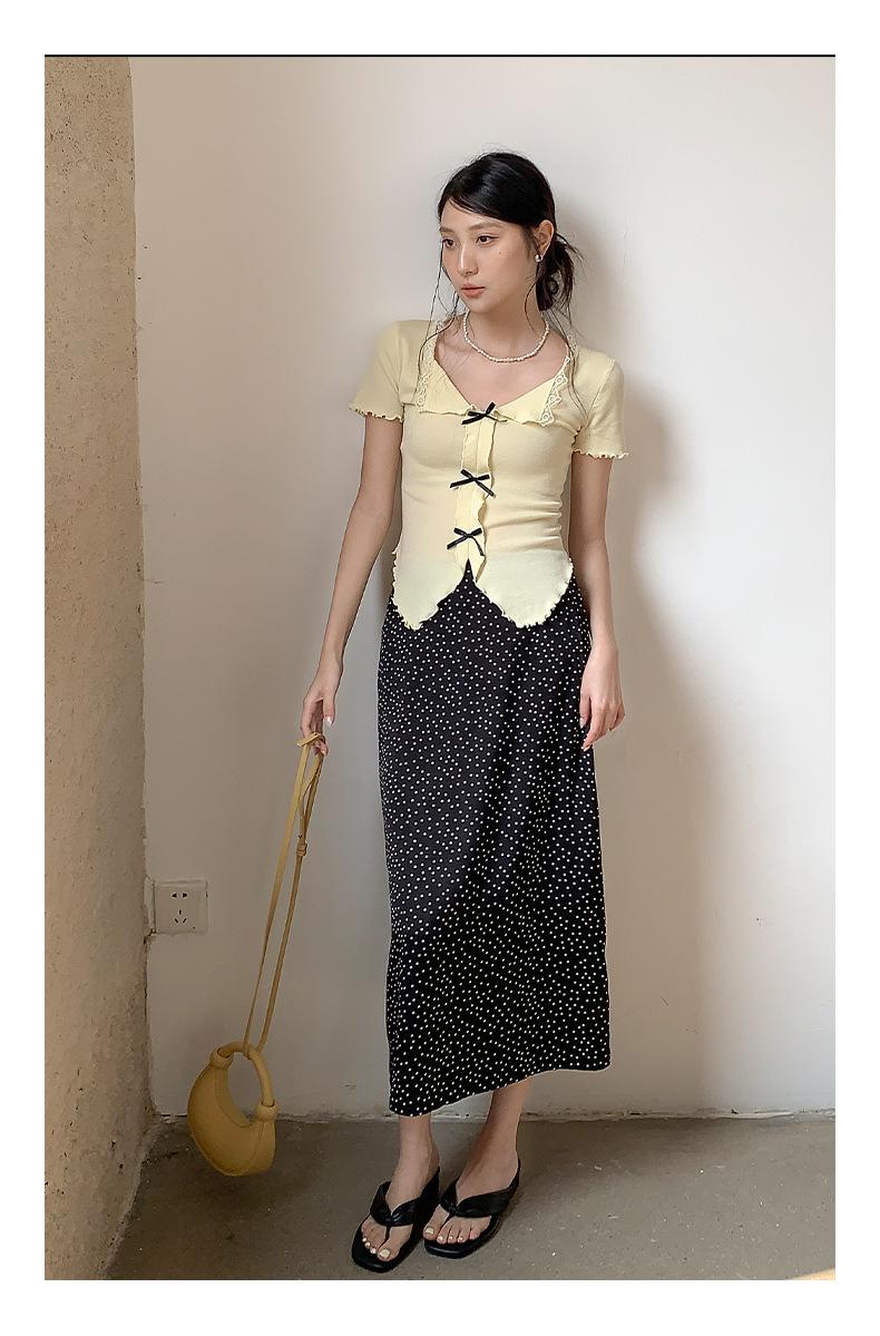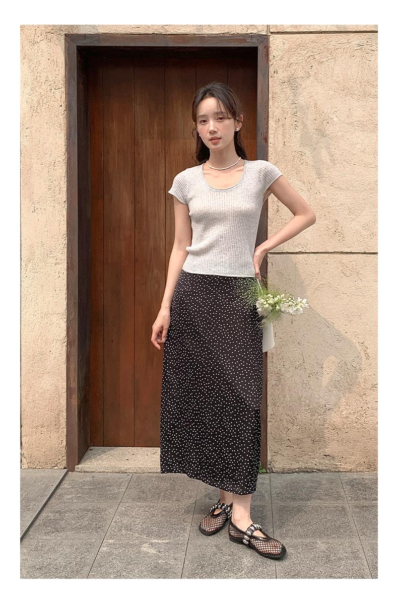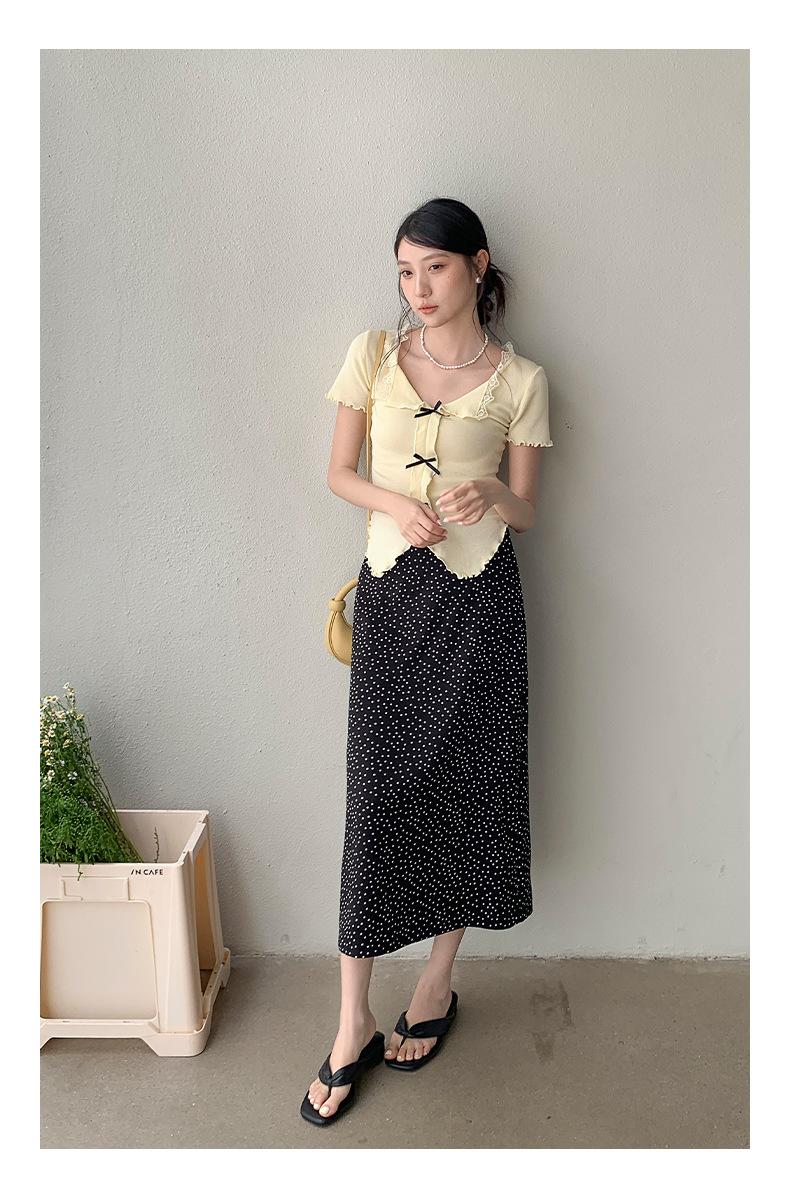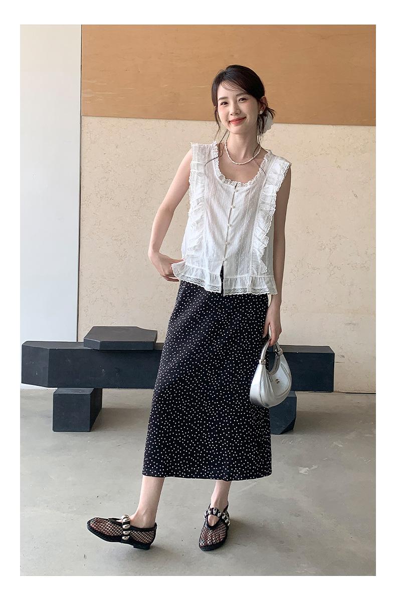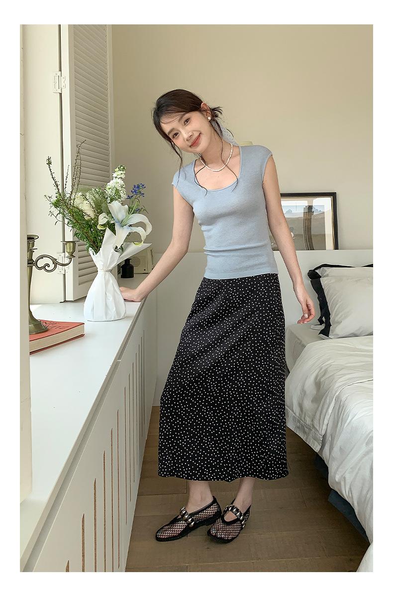 Falda midi acampanada con lunares, falda de estilo coreano de cintura alta, femenina, que cubre las caderas y estiliza 0403