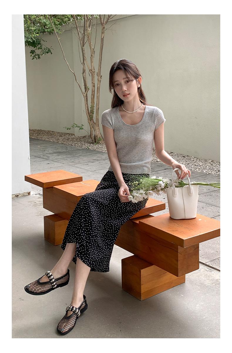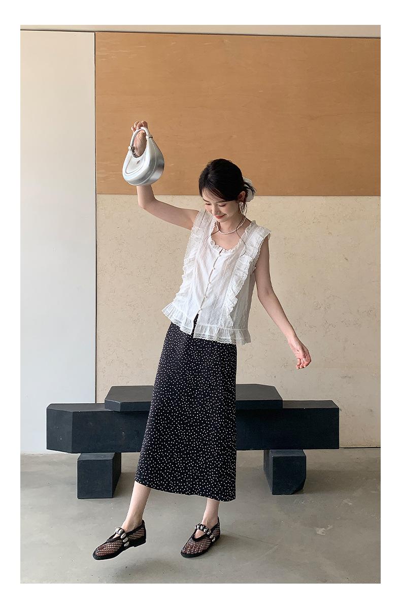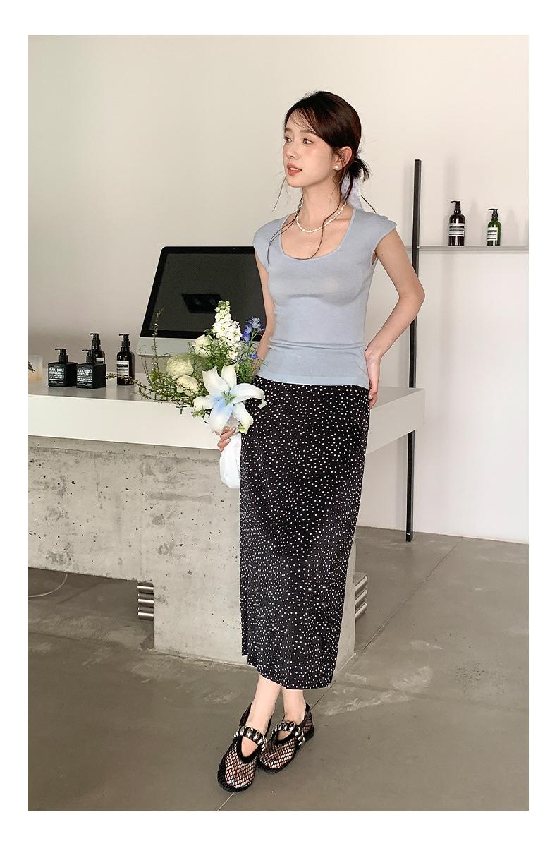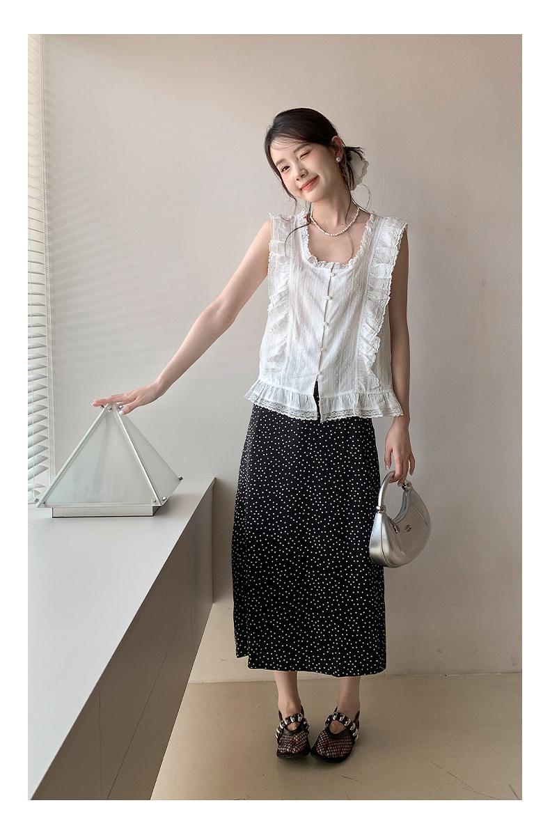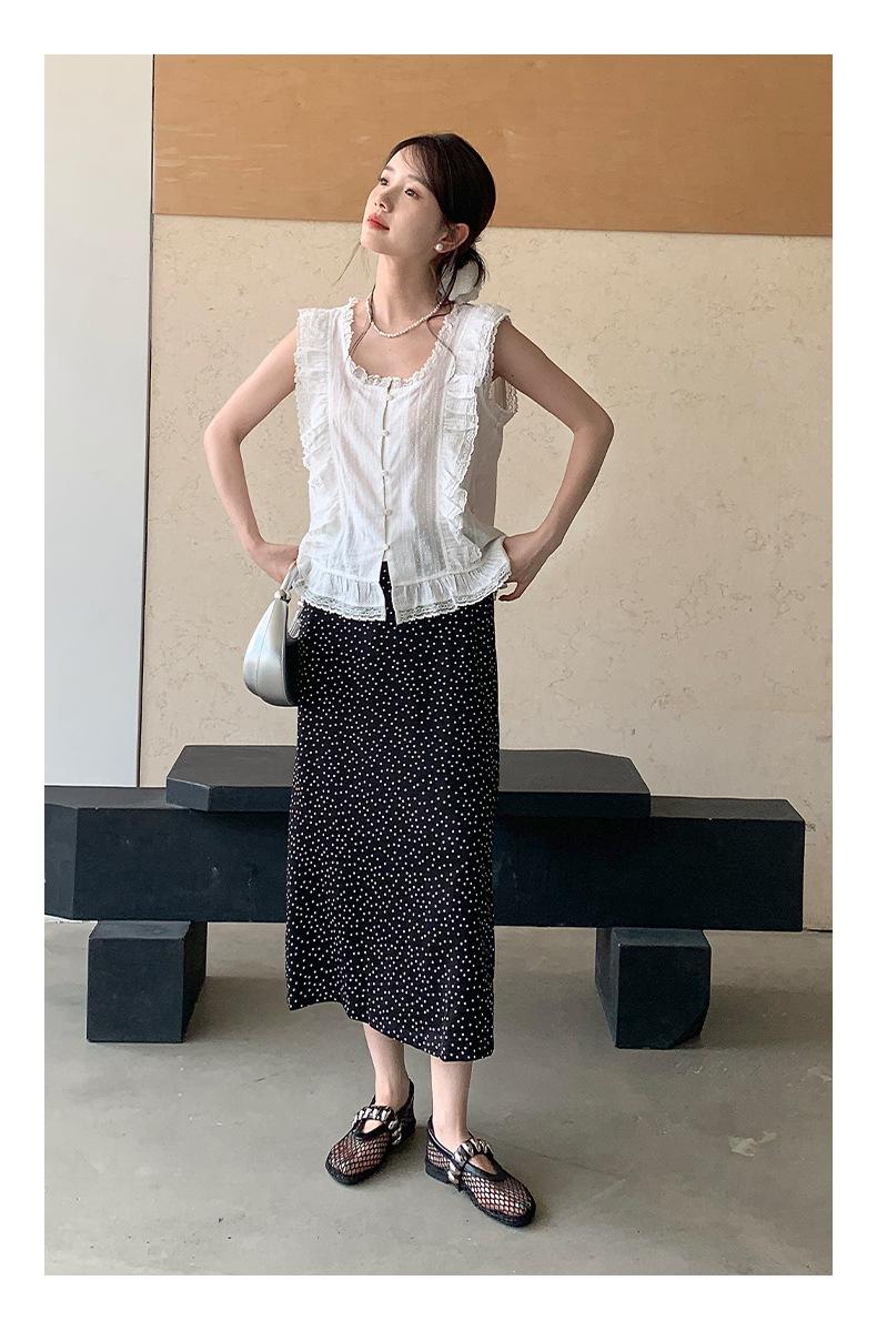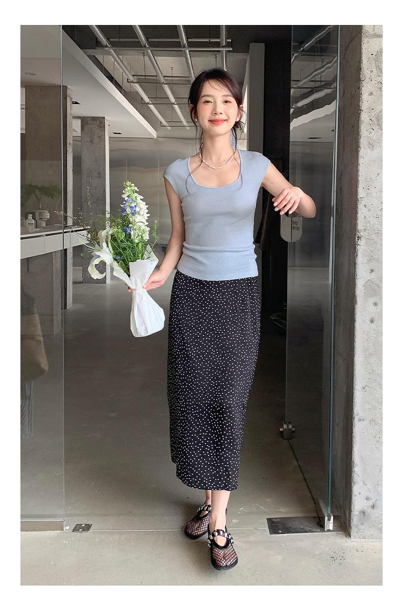 Falda midi acampanada con lunares, falda de estilo coreano de cintura alta, femenina, que cubre las caderas y estiliza 0403
