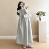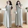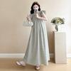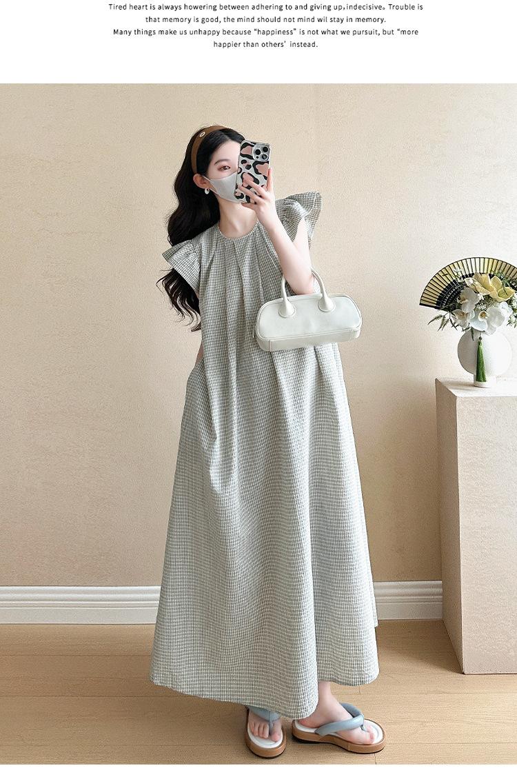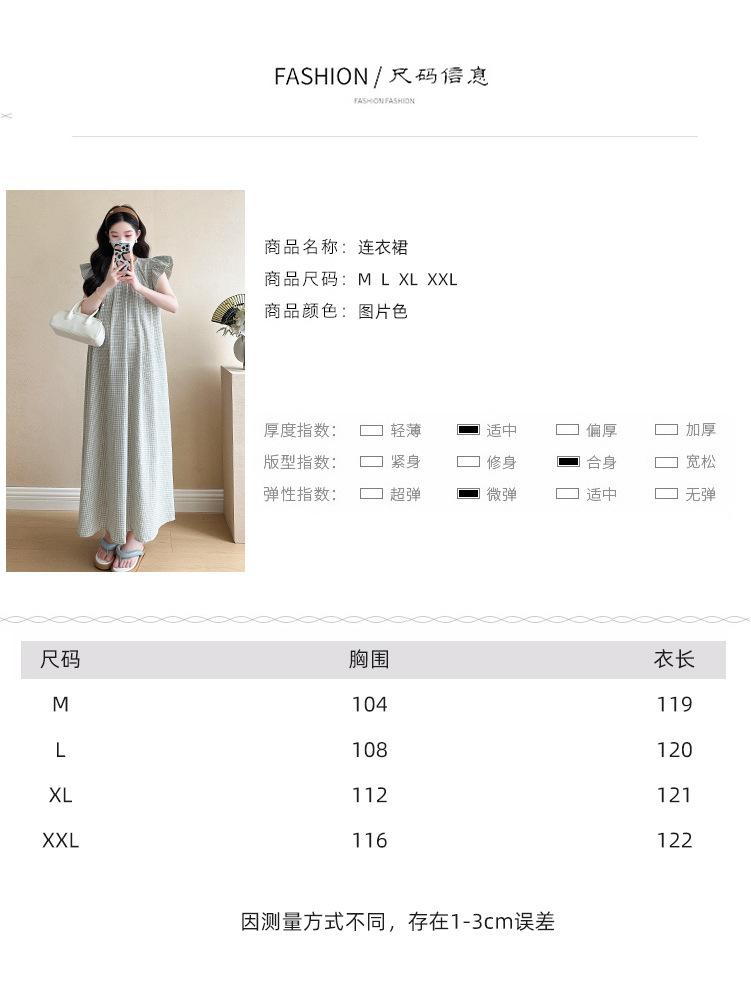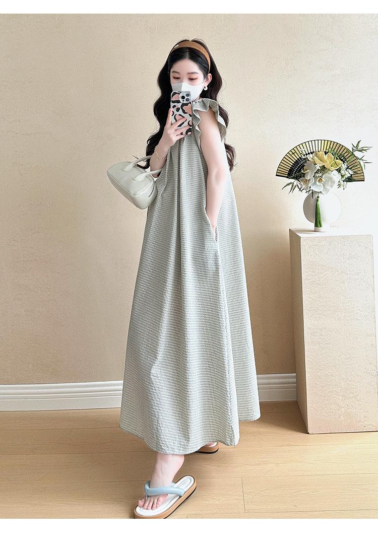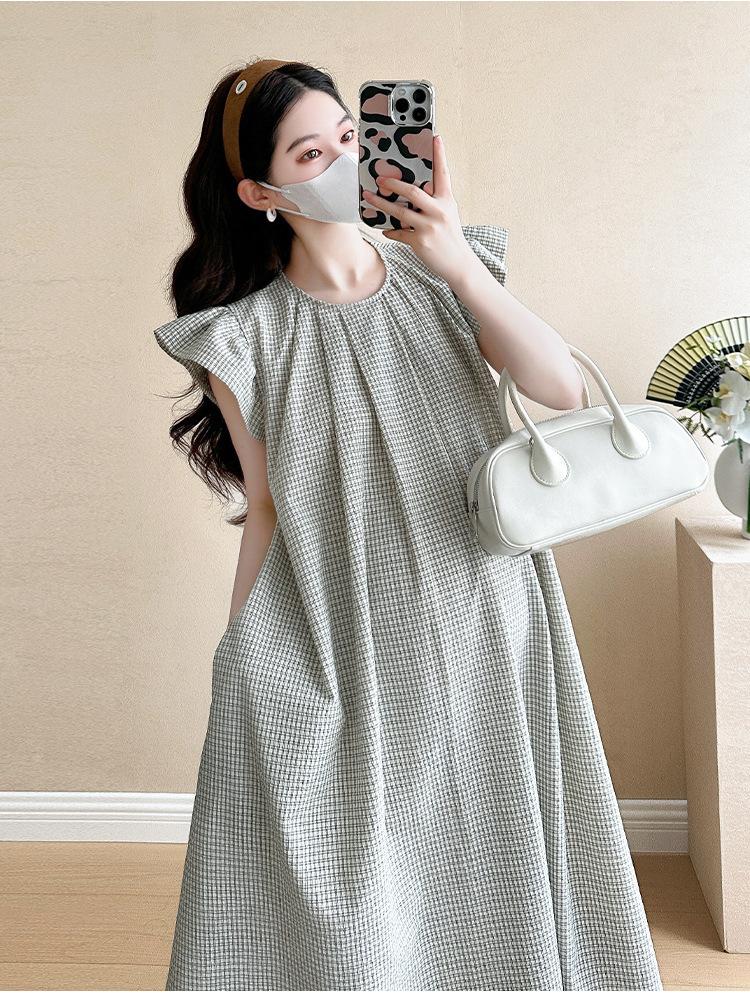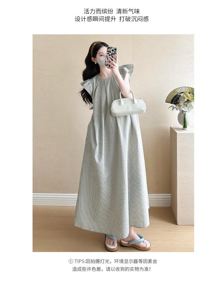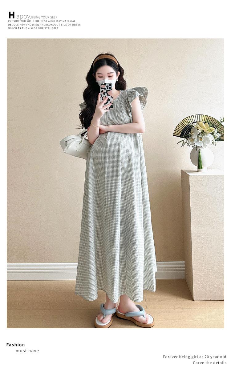 Ropa de Maternidad 2025 Verano Nuevo Estilo Coreano Moda Cuadros Mangas Vuelo Suelto Talla Grande Vestido de Maternidad