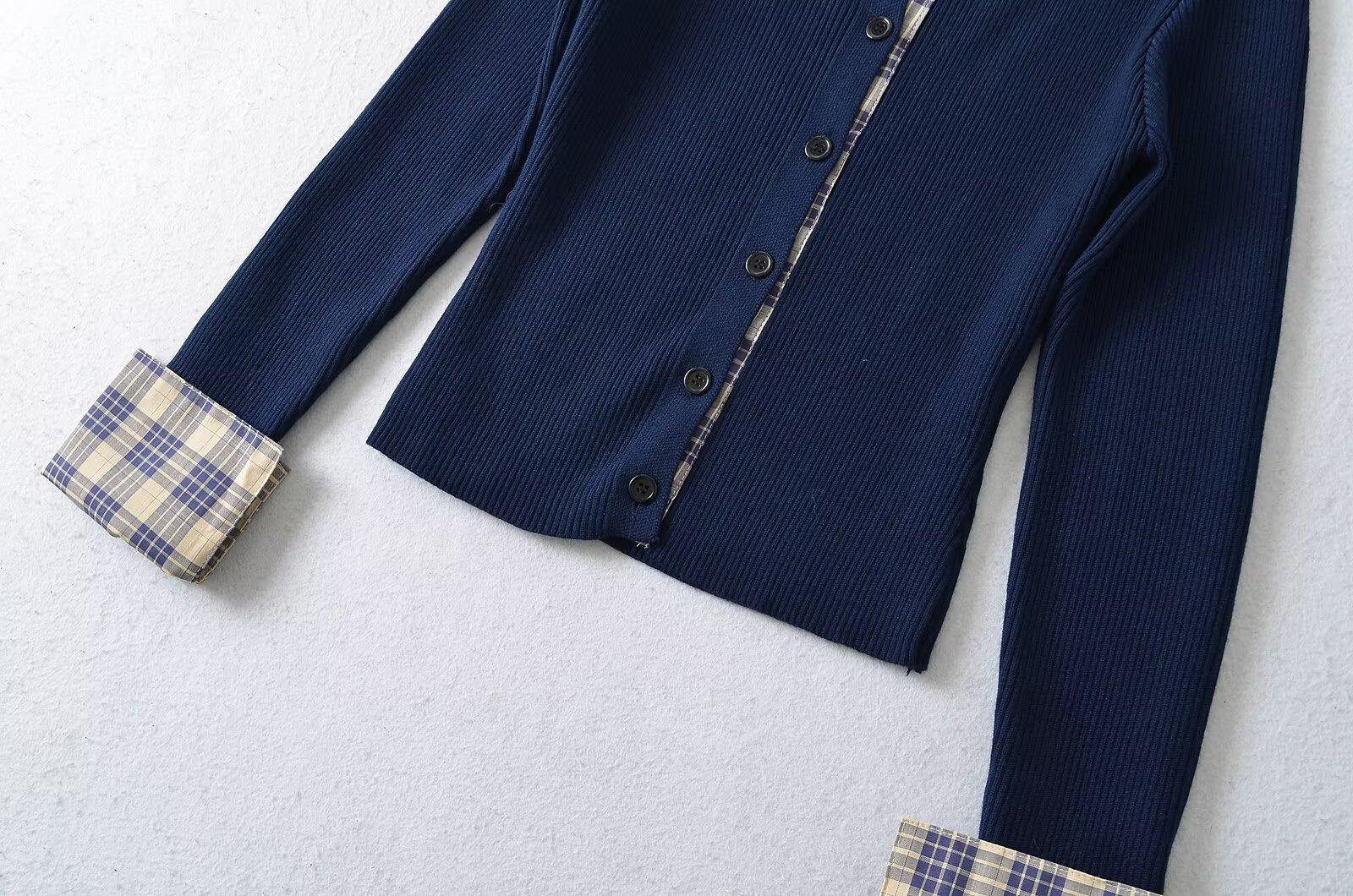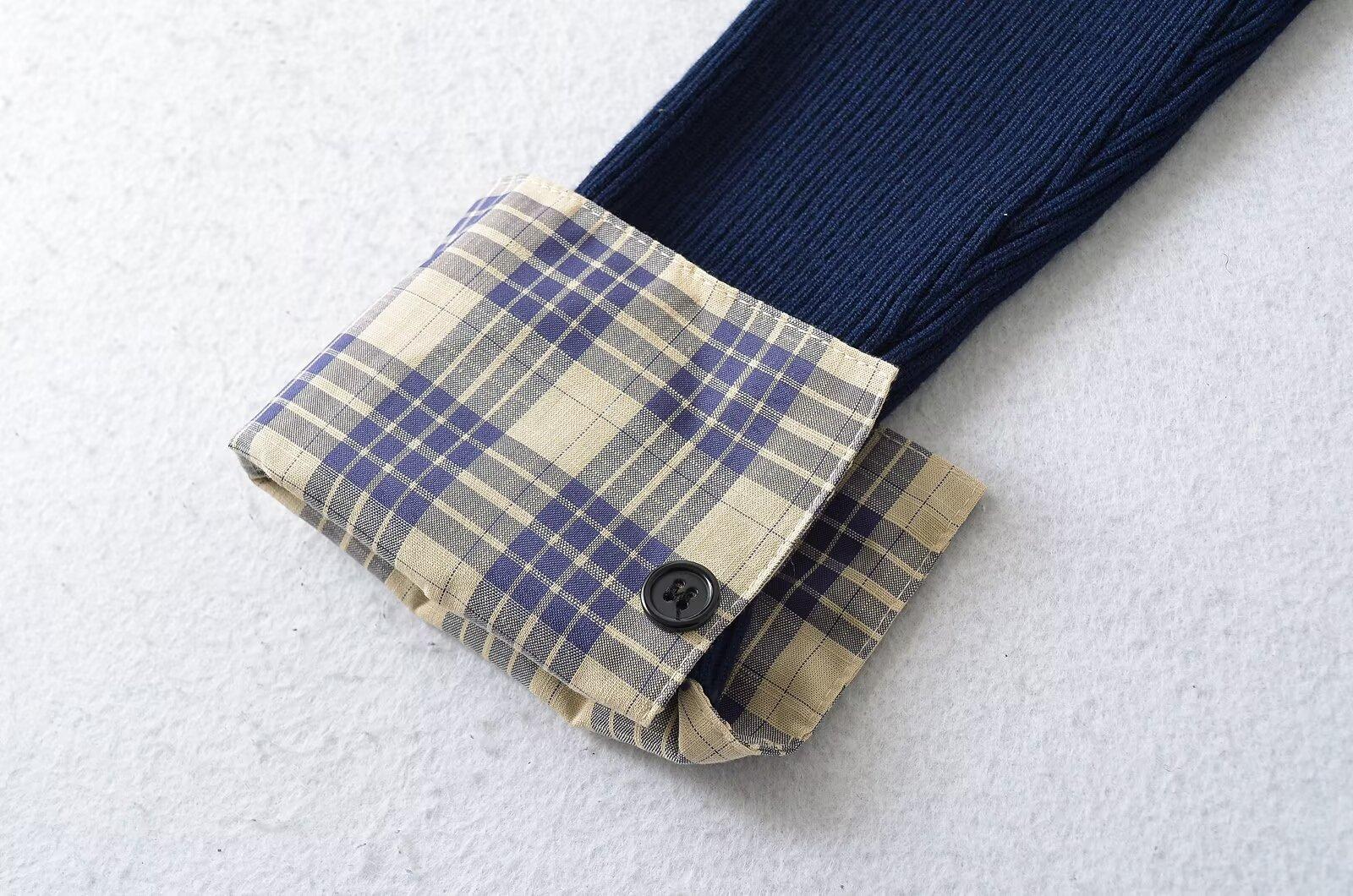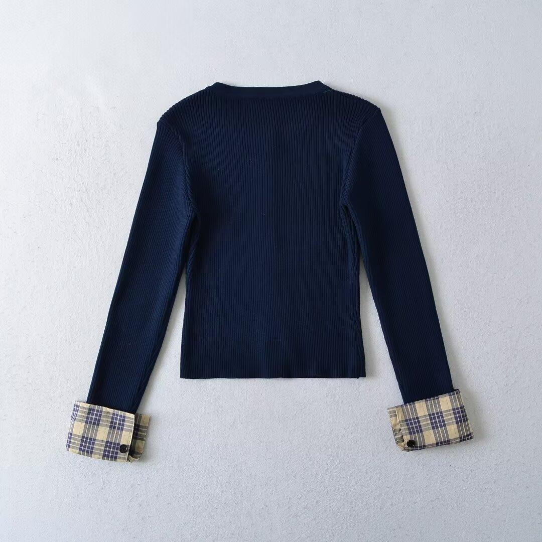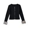 Cárdigan de punto para mujer otoño e invierno 2024 nueva prenda temperamento top costuras a cuadros suéter de punto de dos piezas falsas
