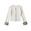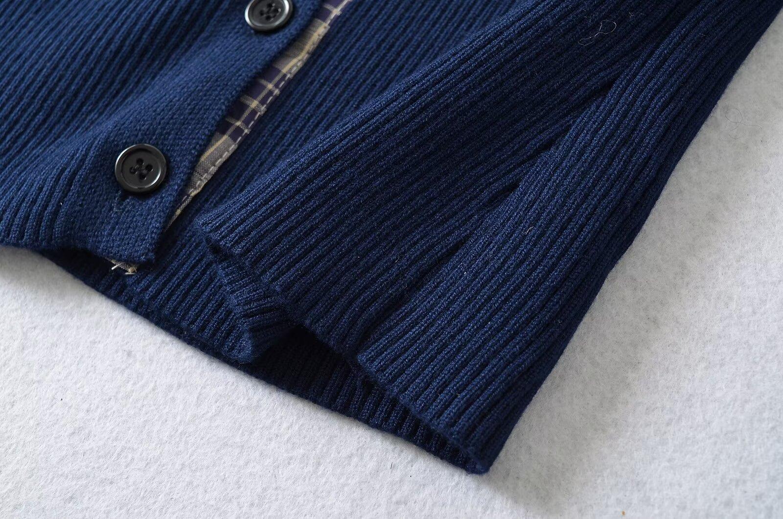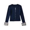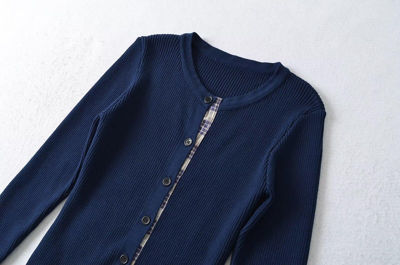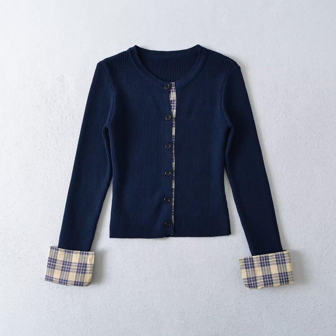 Cárdigan de punto para mujer otoño e invierno 2024 nueva prenda temperamento top costuras a cuadros suéter de punto de dos piezas falsas