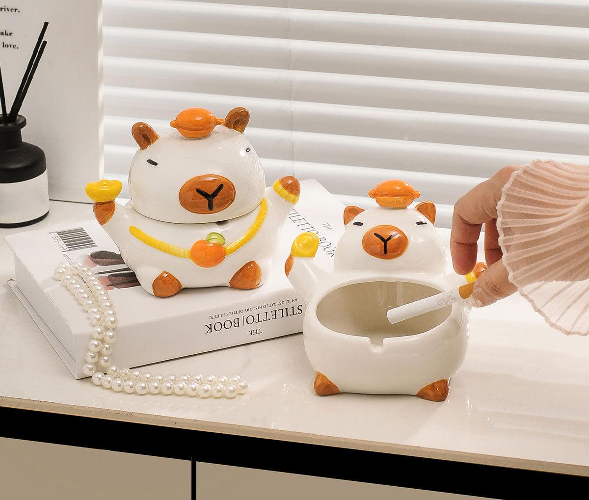 Cenicero de Cerámica Capibara Sala de Estar para el Hogar a Prueba de Viento Personalizado Creativo Oficina Moda Decoración del Hogar Venta al por Mayor