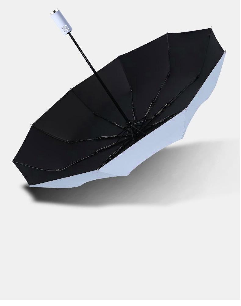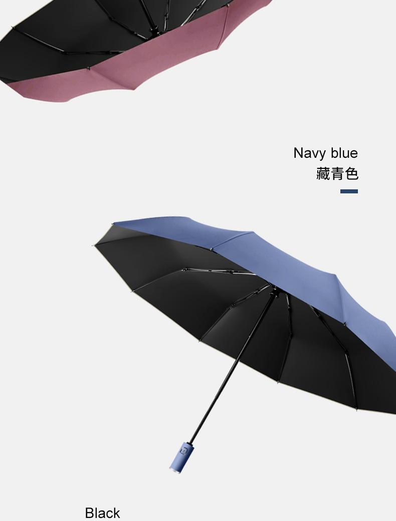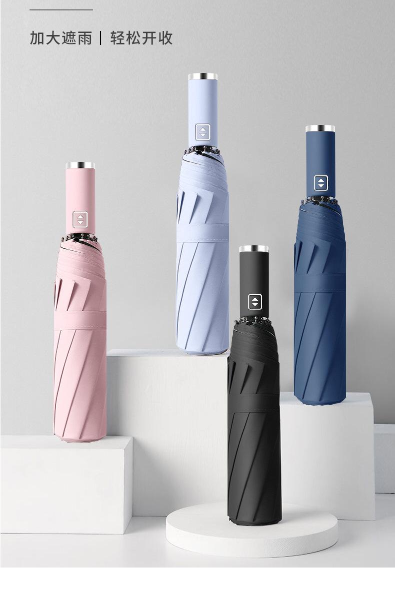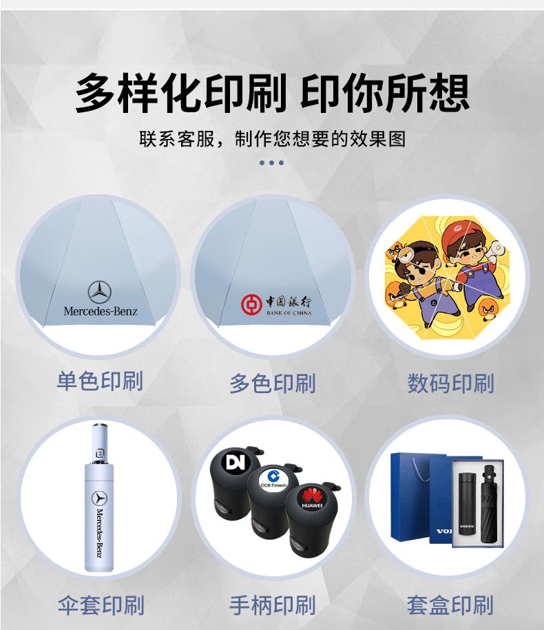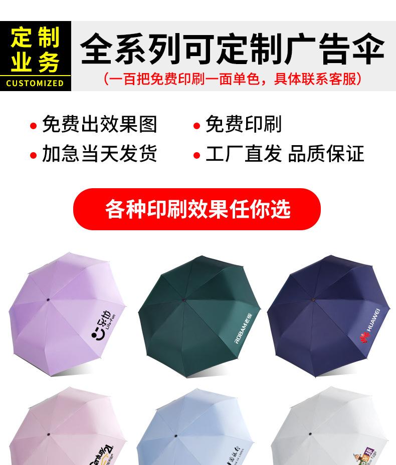 Paraguas plegable automático de tres pliegues de doble propósito, parasol de goma negra y resistente a la lluvia, hecho a medida, paraguas publicitario automático con impresión de logotipo, paraguas automático