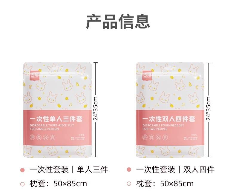 Single three-piece set [rabbit print], Four-piece set for two [rabbit print], Single three-piece set [pure whi...