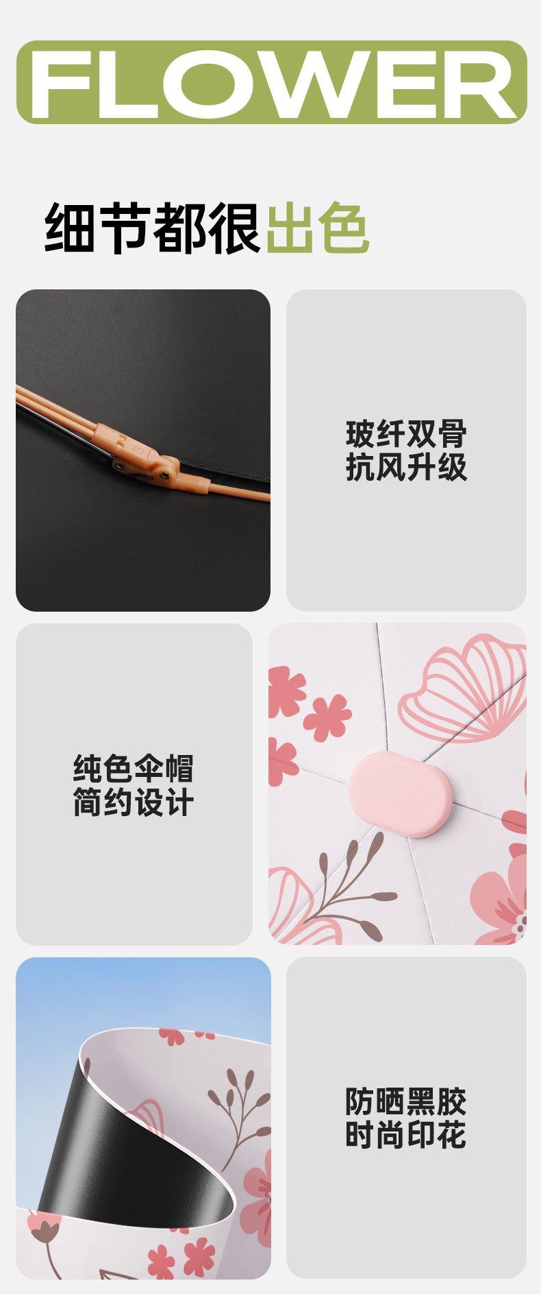 50% de descuento Paraguas de Sol Lindo, Parasol Compacto, Flores Coloridas, Anti-UV, Lluvia o Sol, Paraguas de Vinilo de Aspecto Elegante