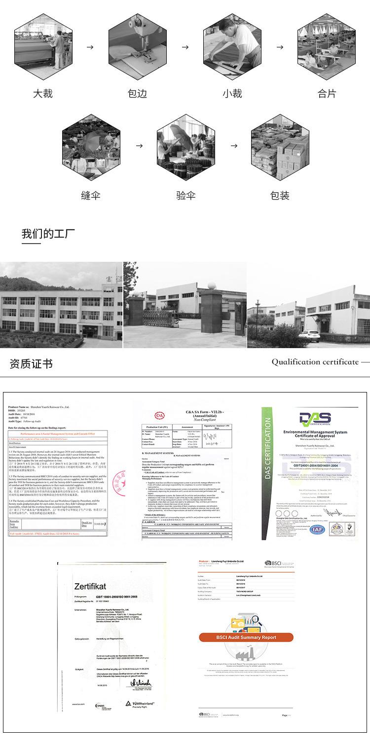 Shenzhen Yuanfa Rain Gear, un fabricante especializado en la producción de paraguas de alta gama con calidad OEM alemana durante casi 30 años
