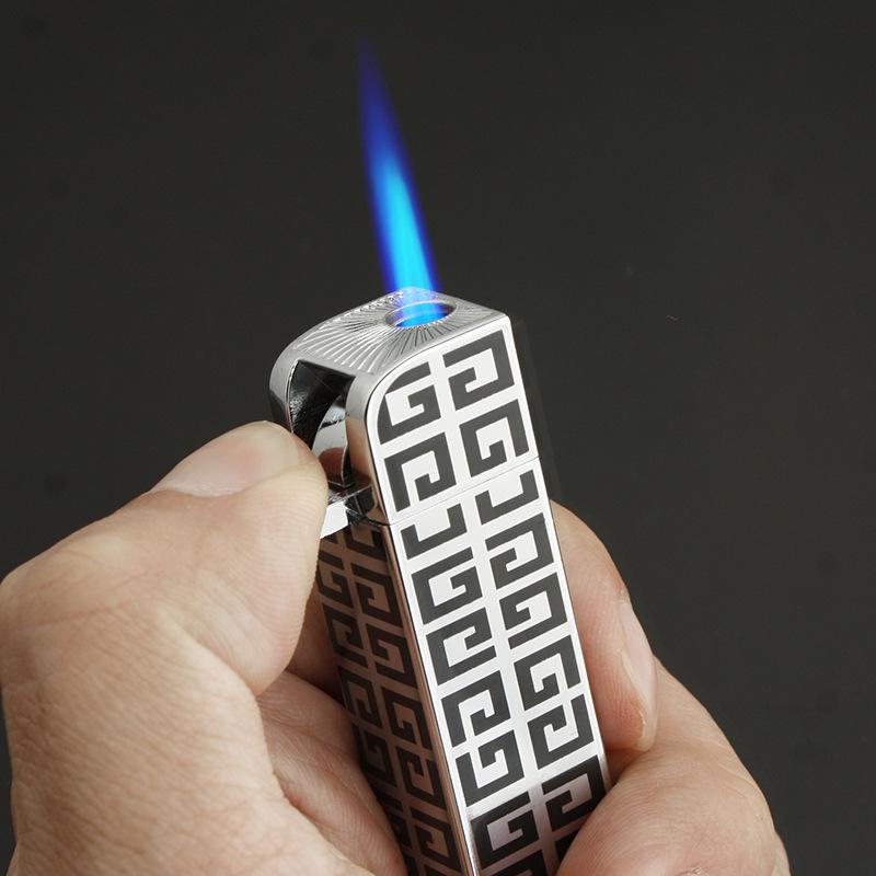 Encendedor inflable de metal a prueba de viento para exteriores con diseño de palabra cuadrada XF3004, con popa visual, explosiones transfronterizas, venta al por mayor