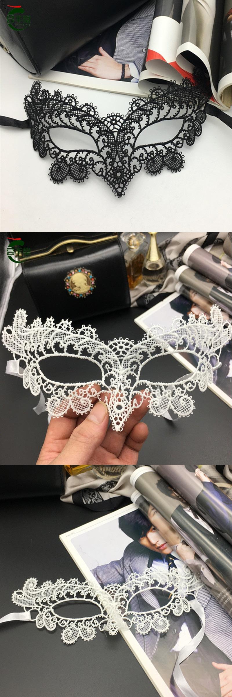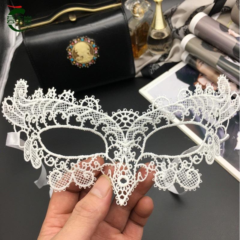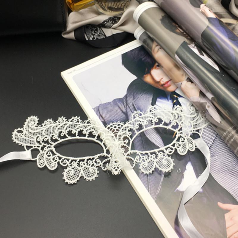 Máscara de Encaje Negro de Mascarada Media Cara Femenina Halloween Cos Fiesta Blanco Divertida Linda Máscara de Ojos Velo