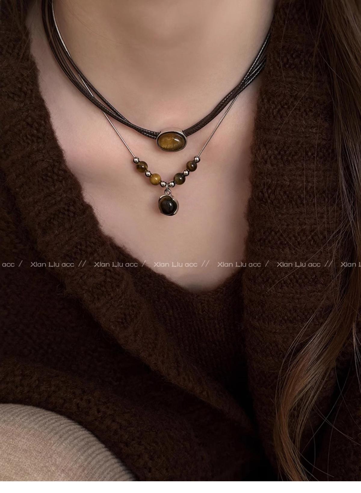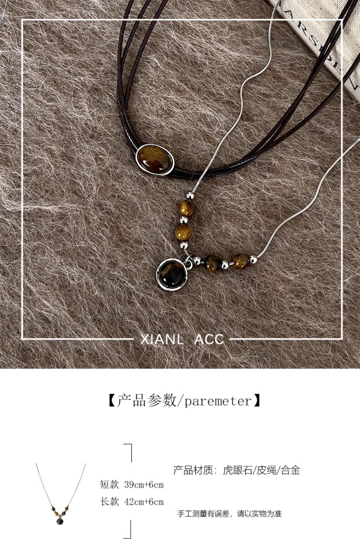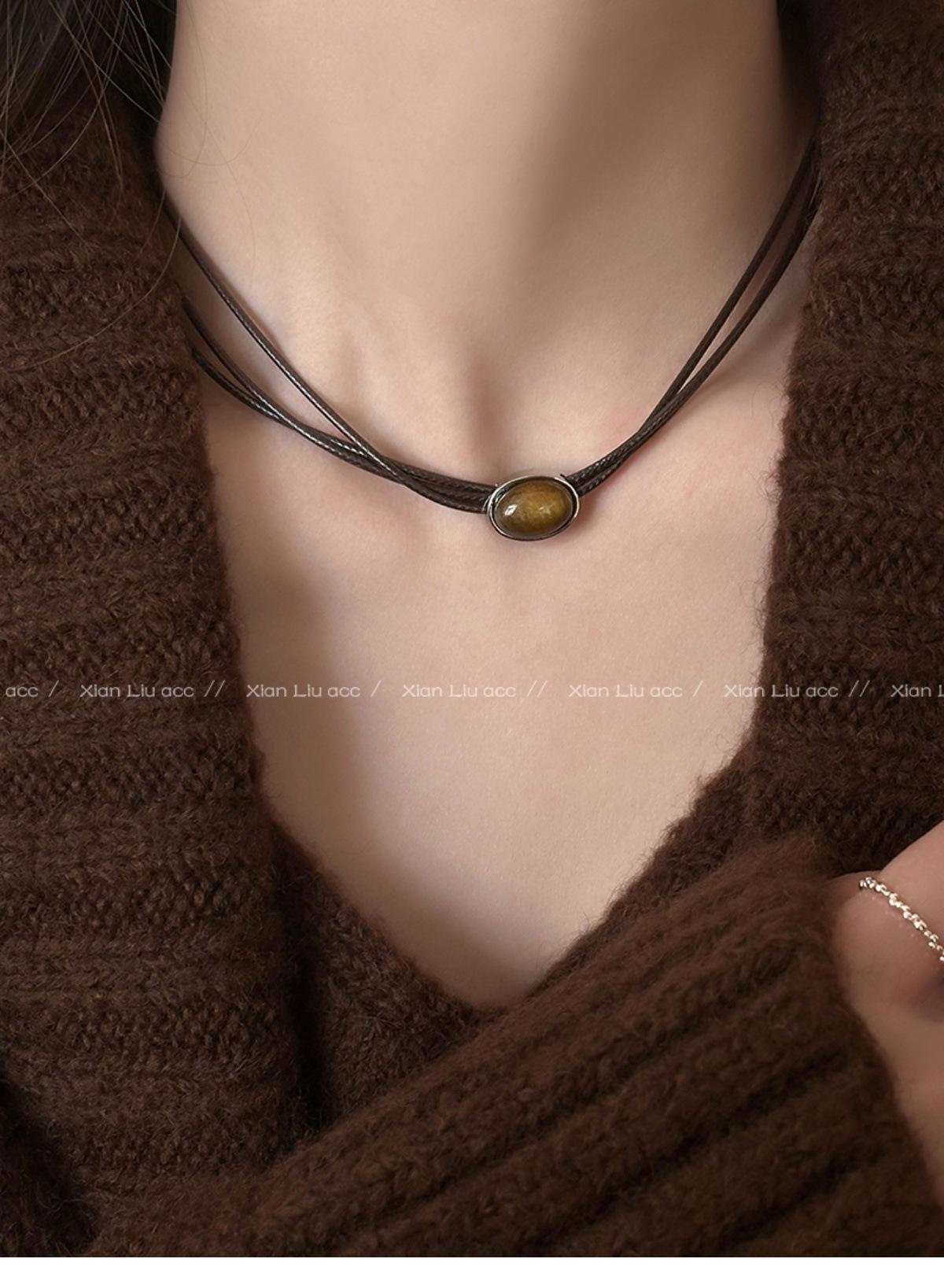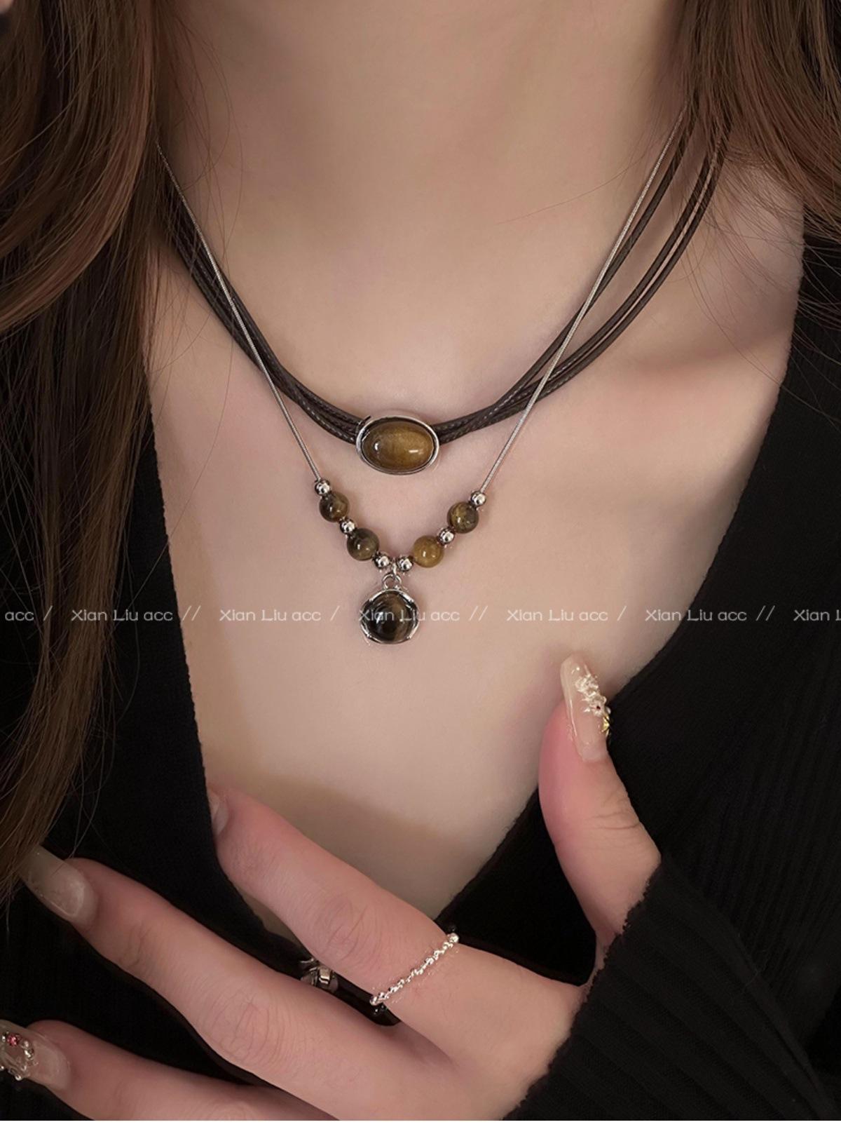 Collar de Ojo de Tigre de Cuero para Mujer 2025 Nuevo Lujo Ligero de Alta Gama Nicho Cadena Clavícula Accesorios Cadena para Suéter en Capas