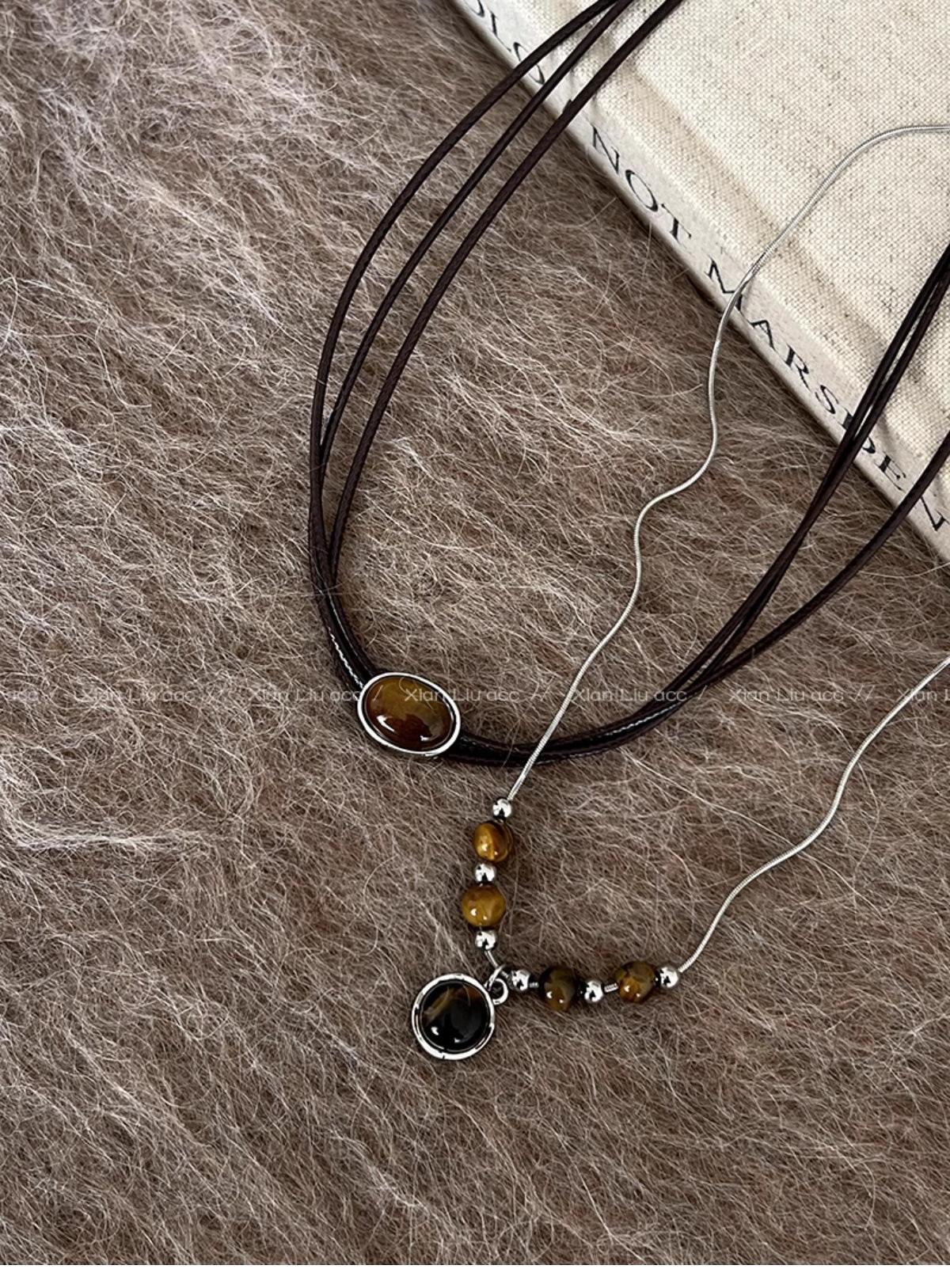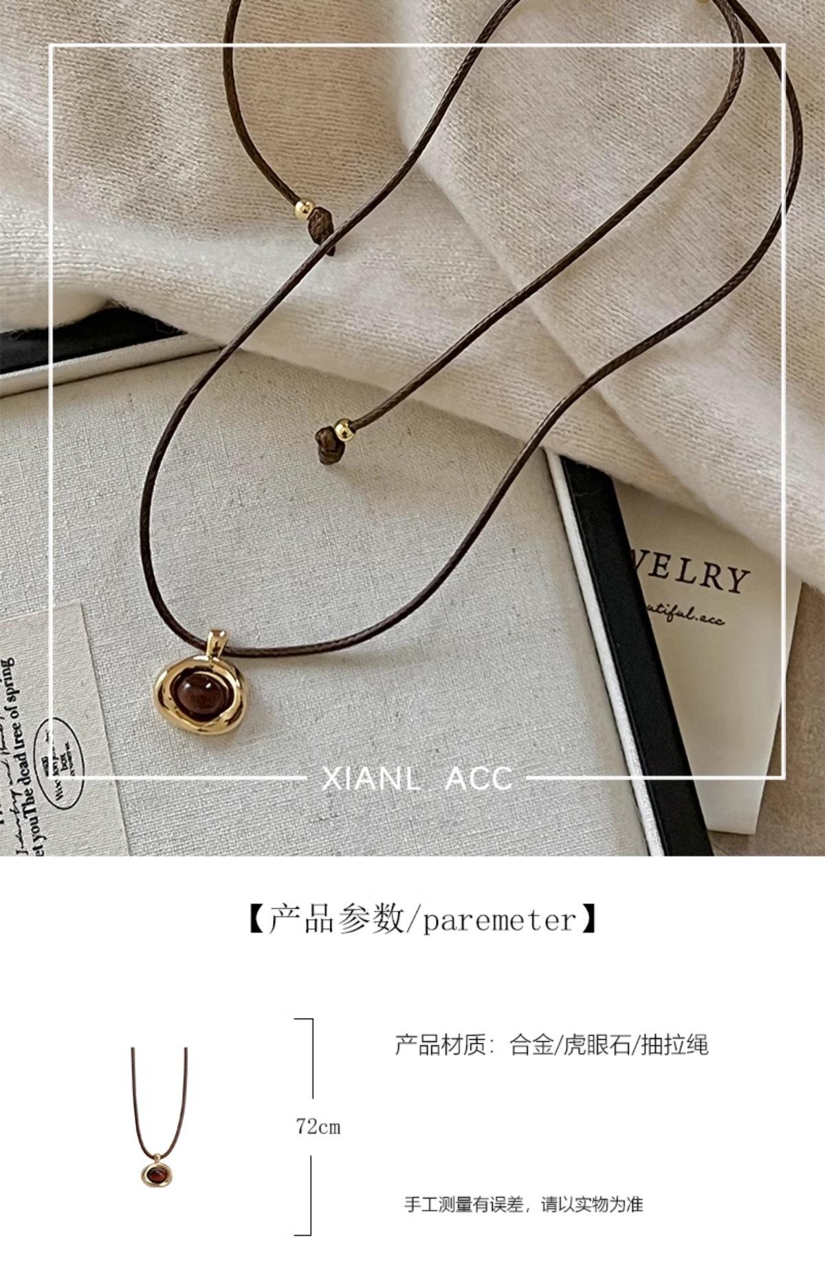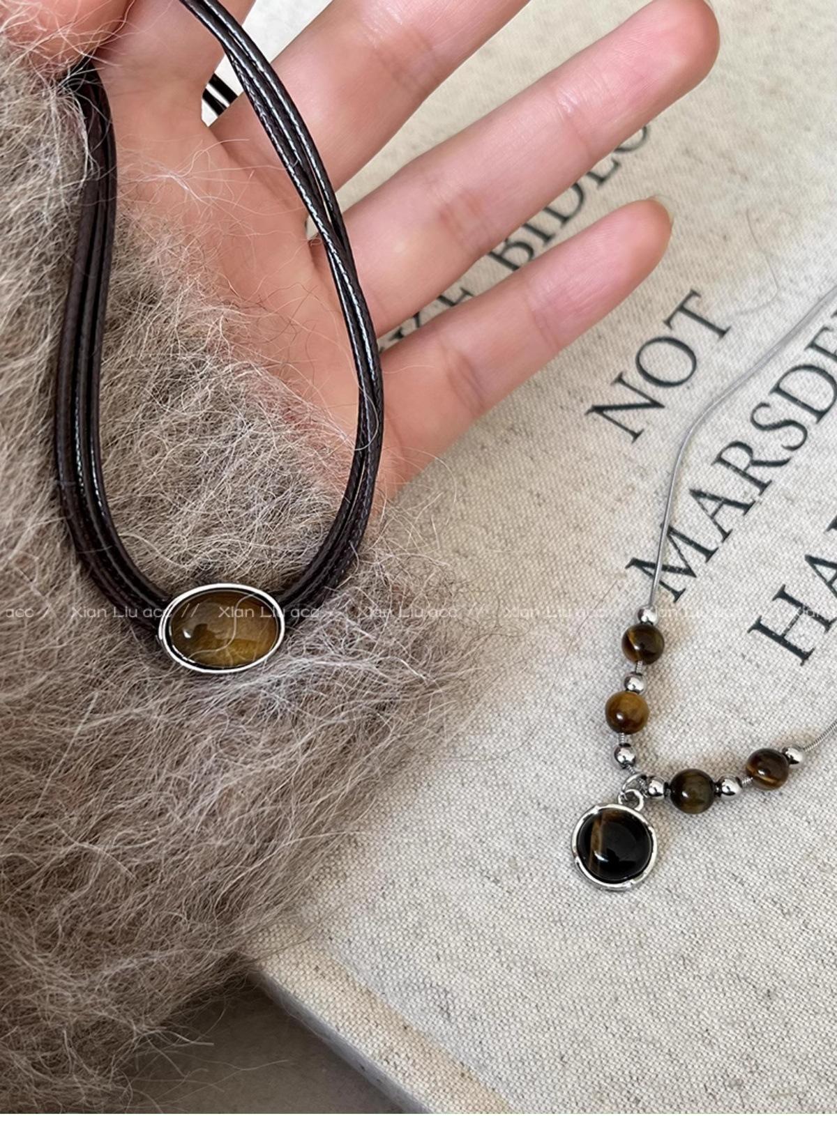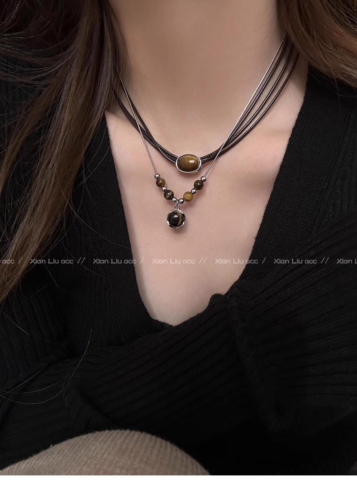 Collar de Ojo de Tigre de Cuero para Mujer 2025 Nuevo Lujo Ligero de Alta Gama Nicho Cadena Clavícula Accesorios Cadena para Suéter en Capas
