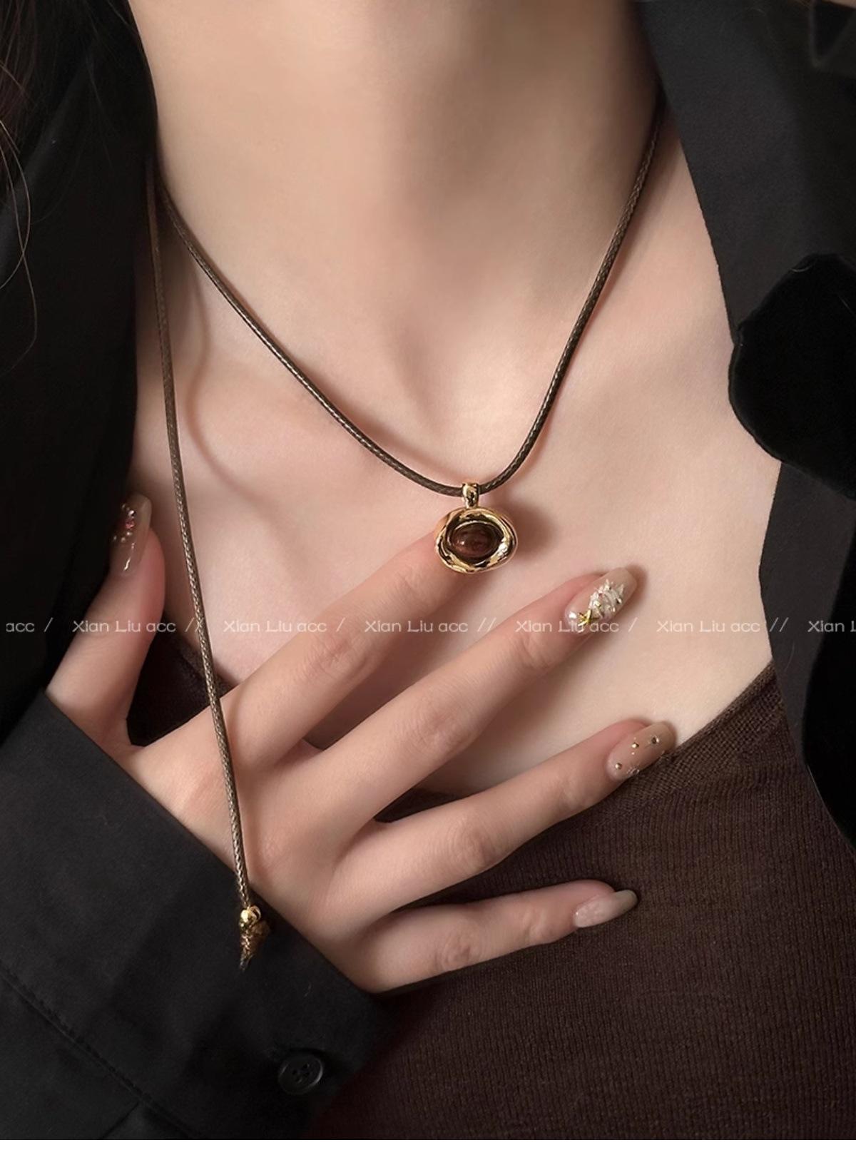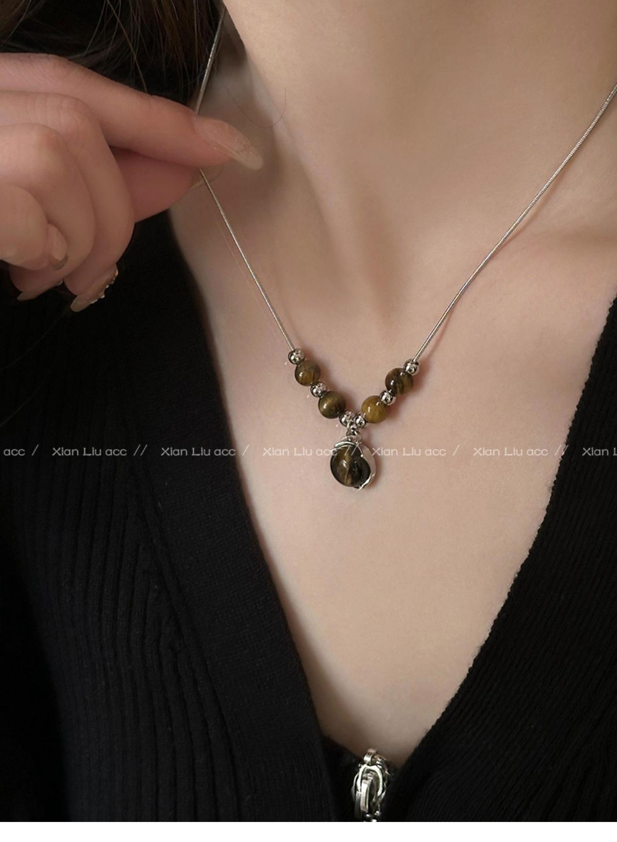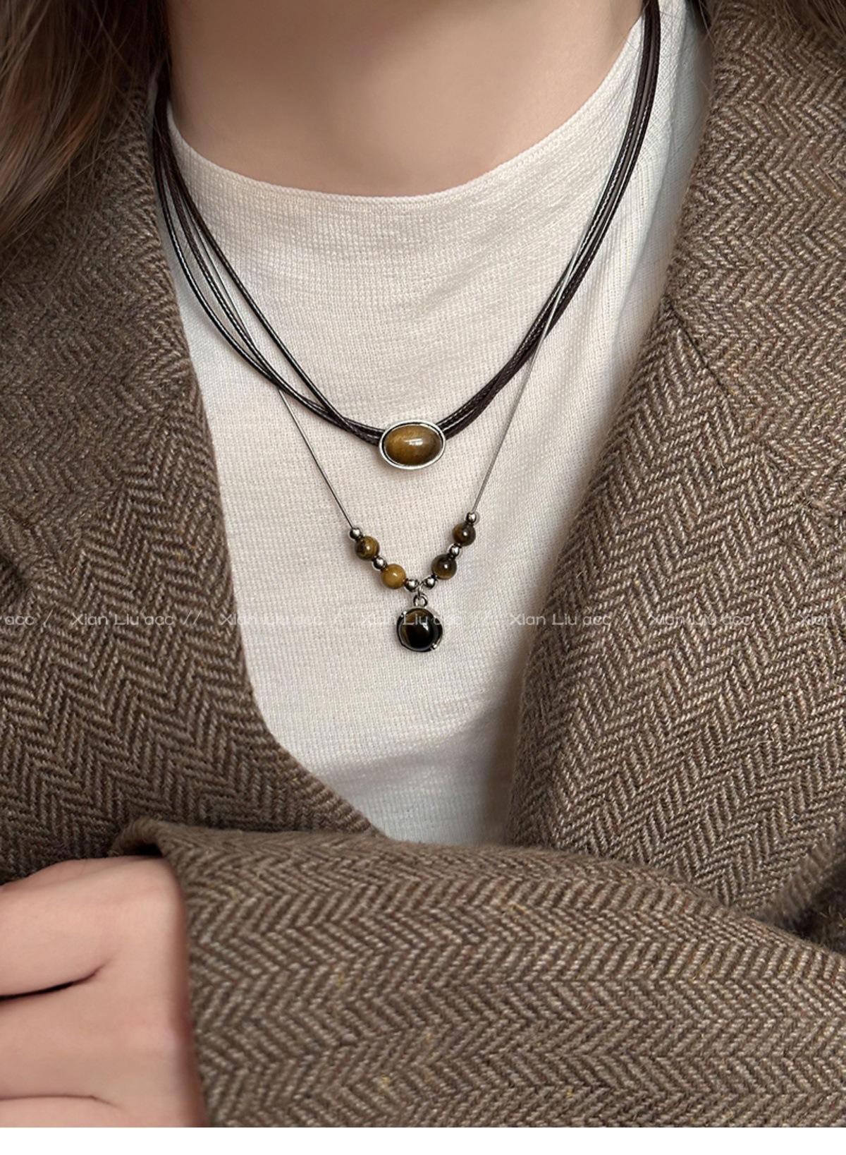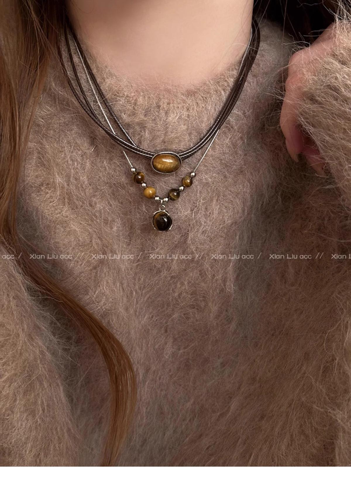 Collar de Ojo de Tigre de Cuero para Mujer 2025 Nuevo Lujo Ligero de Alta Gama Nicho Cadena Clavícula Accesorios Cadena para Suéter en Capas