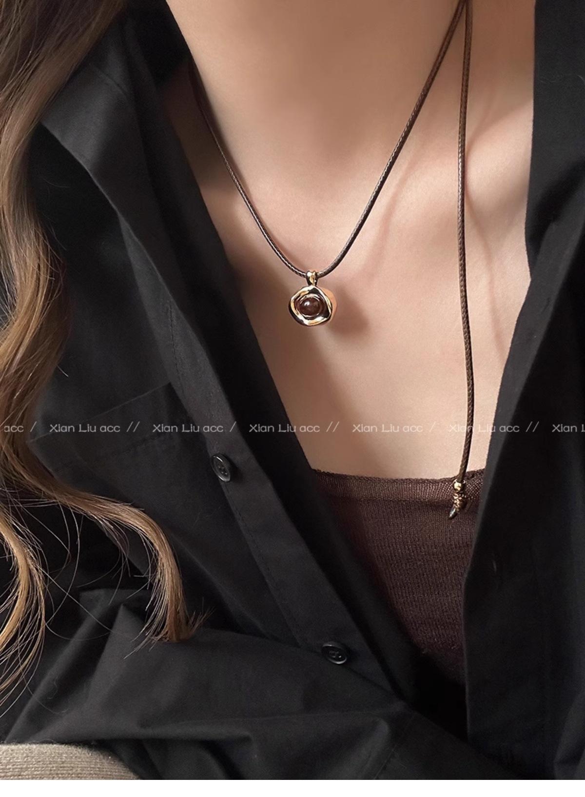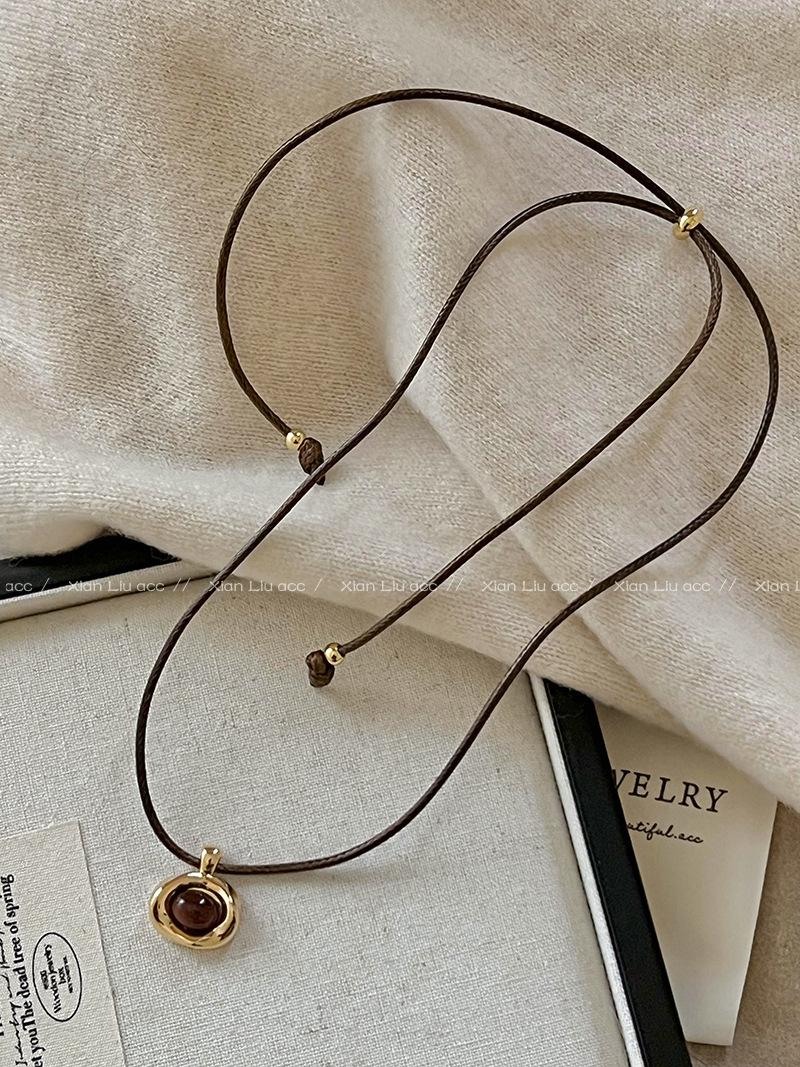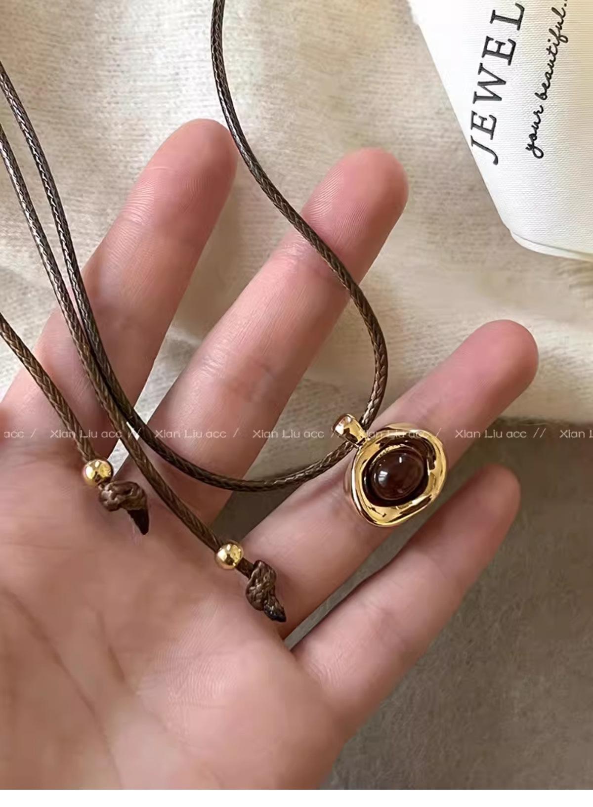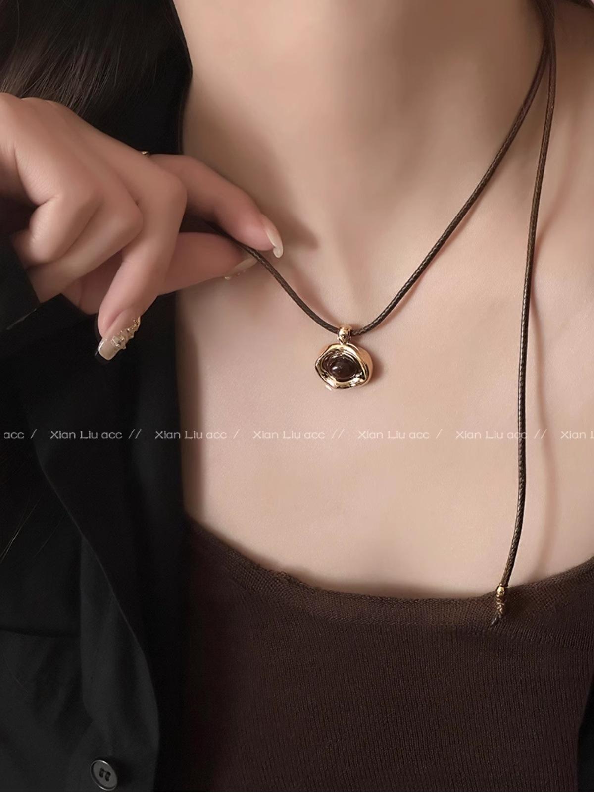 Collar de Ojo de Tigre de Cuero para Mujer 2025 Nuevo Lujo Ligero de Alta Gama Nicho Cadena Clavícula Accesorios Cadena para Suéter en Capas