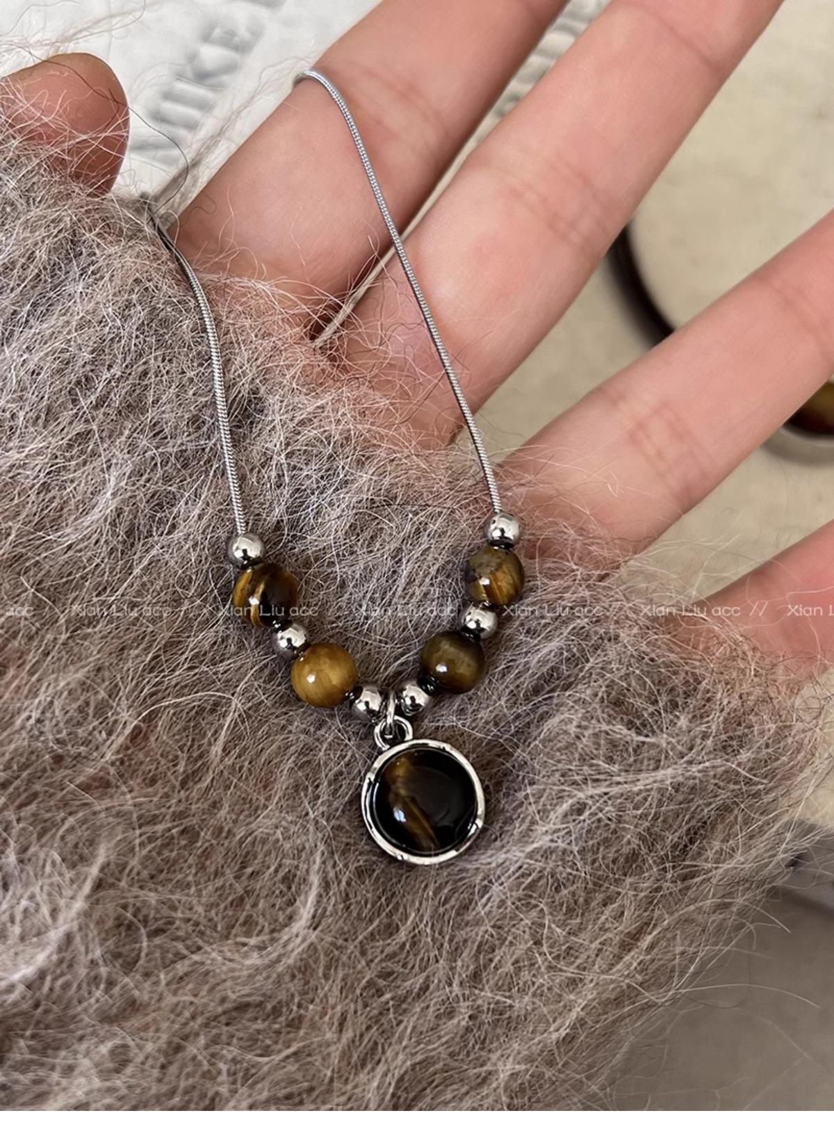 Irregular Tiger Eye Pull-Out Necklace-64CM