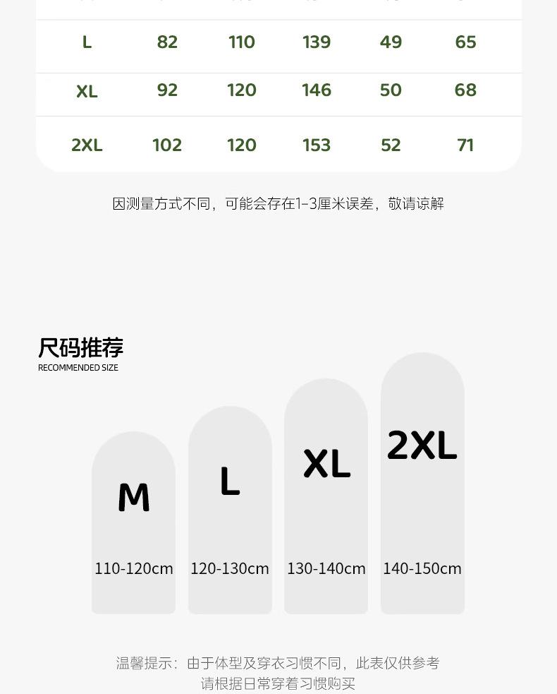 M (recommended height 110-120), L (recommended height 120-130), Xl (recommended height 130-140), Xxl (recommended height 140-150)