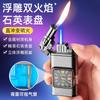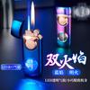 Color degradado personalidad creativa doble llama golpe directo llama azul fuego abierto encendedor inflable visual transparente luz azul almacén de gas transfronterizo