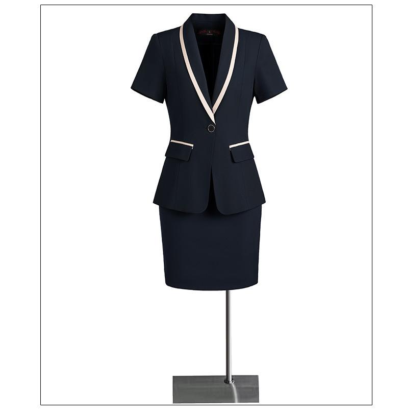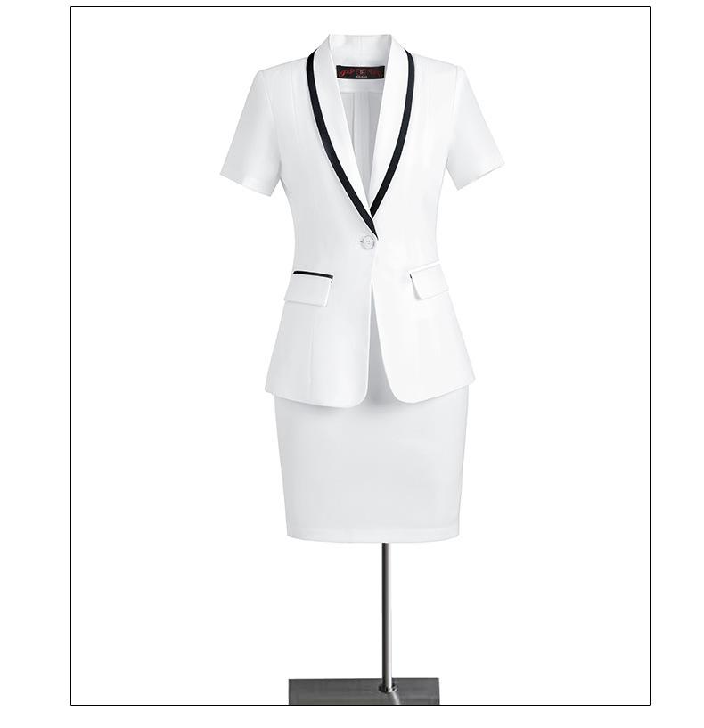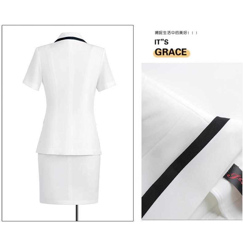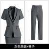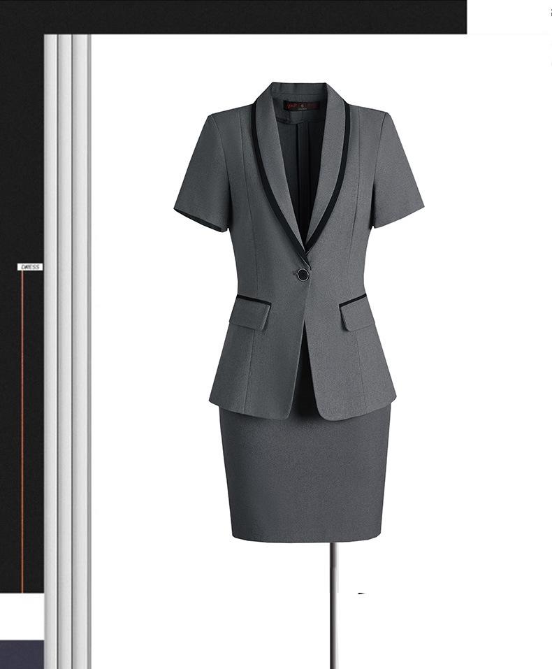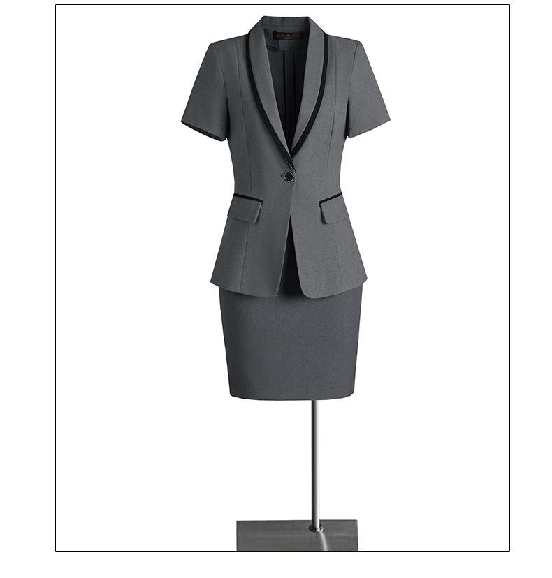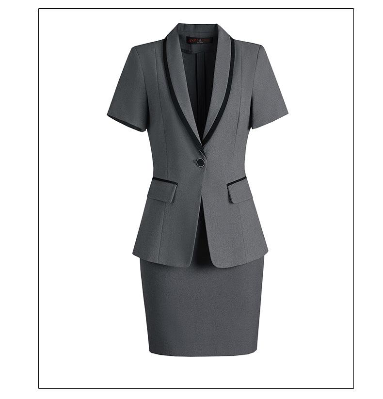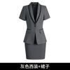 Saco de Traje Gris de Verano de Manga Corta para Mujer Pantalón Falda Traje de Dos Piezas de Verano Moda Casual Profesional Viajero Tendencia
