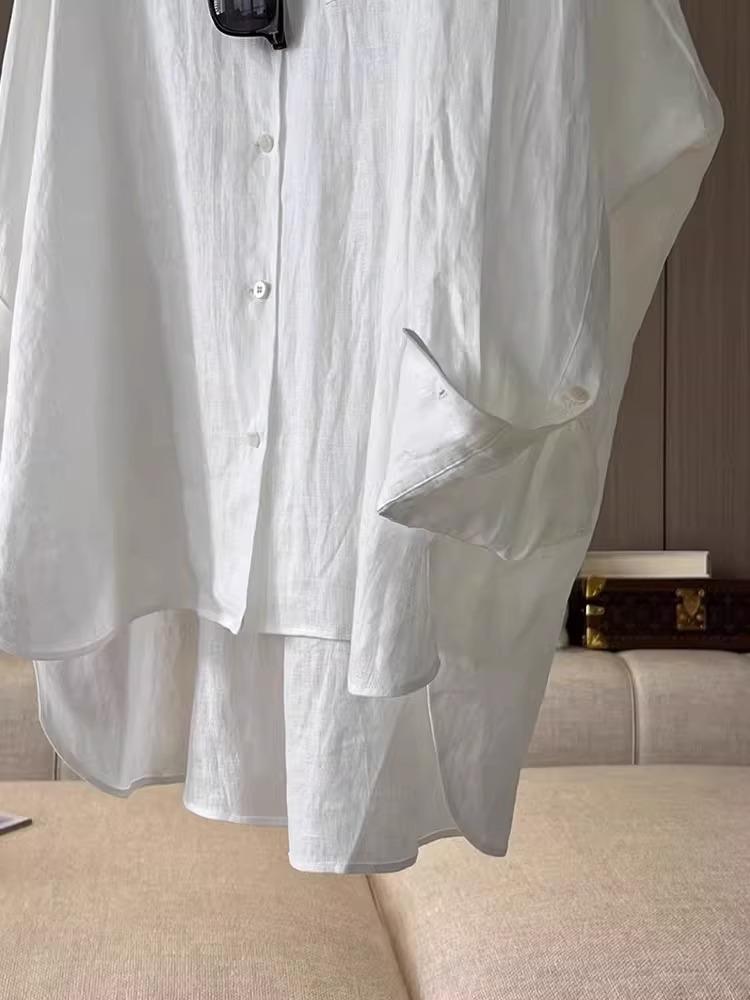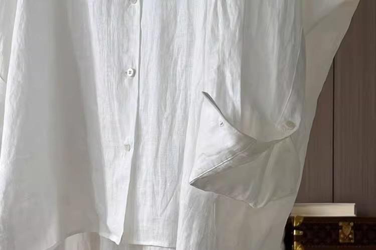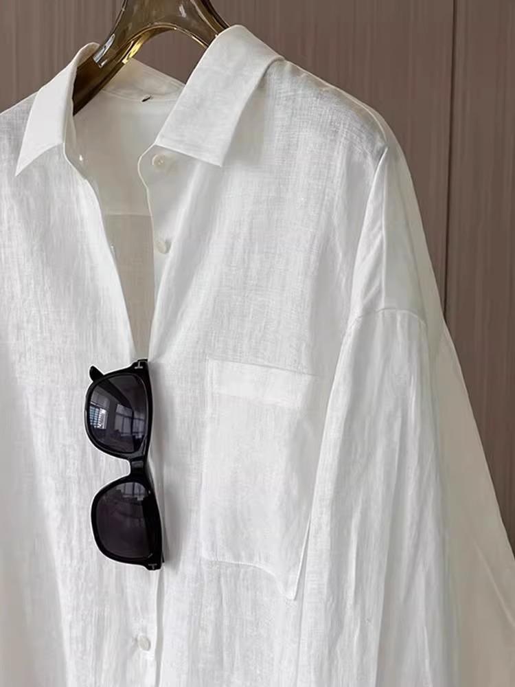 Chaqueta camisa de manga larga blanca francesa con protección solar para mujer, cárdigan fino de verano, prenda exterior, camisa de lino, top de verano