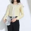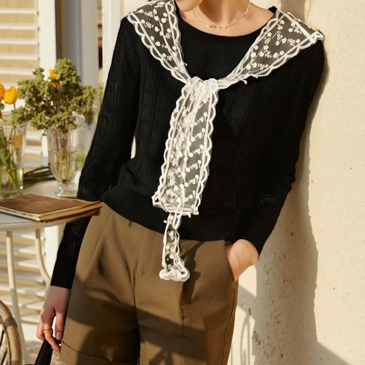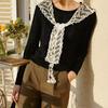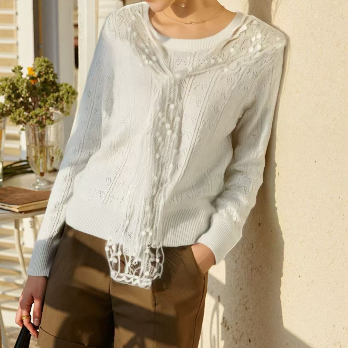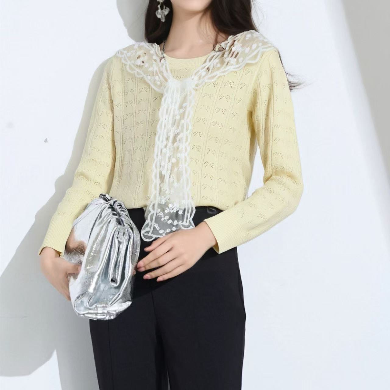 Chal dulce de encaje estilo coreano tejido de cuello redondo prenda exterior camiseta verano sentido del diseño nicho hueco top de crochet ins