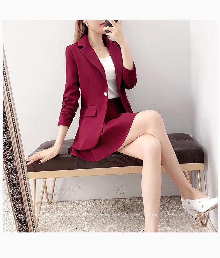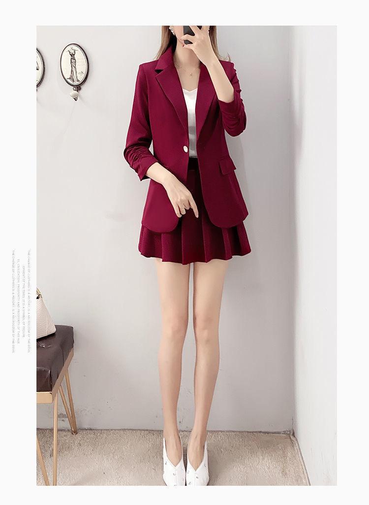 Traje Rojo Traje Falda de Mujer 2025 Otoño e Invierno Moda Chaqueta de Traje Pequeño a la Moda Falda Plisada Conjunto de Dos Piezas