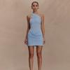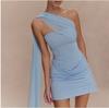 2025 Verano Nuevo Transfronterizo Amazon Color Sólido Un Hombro Adelgazante Moda Sexy Temperamento Vestido de Mujer Al Por Mayor