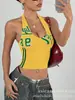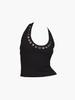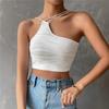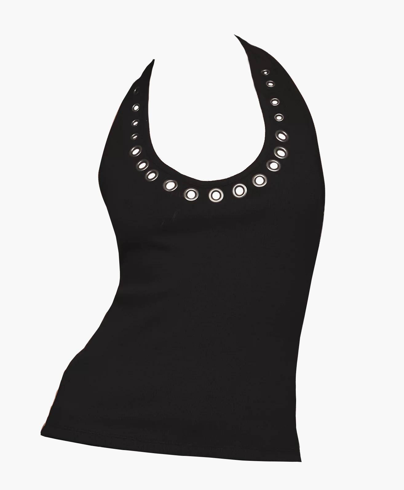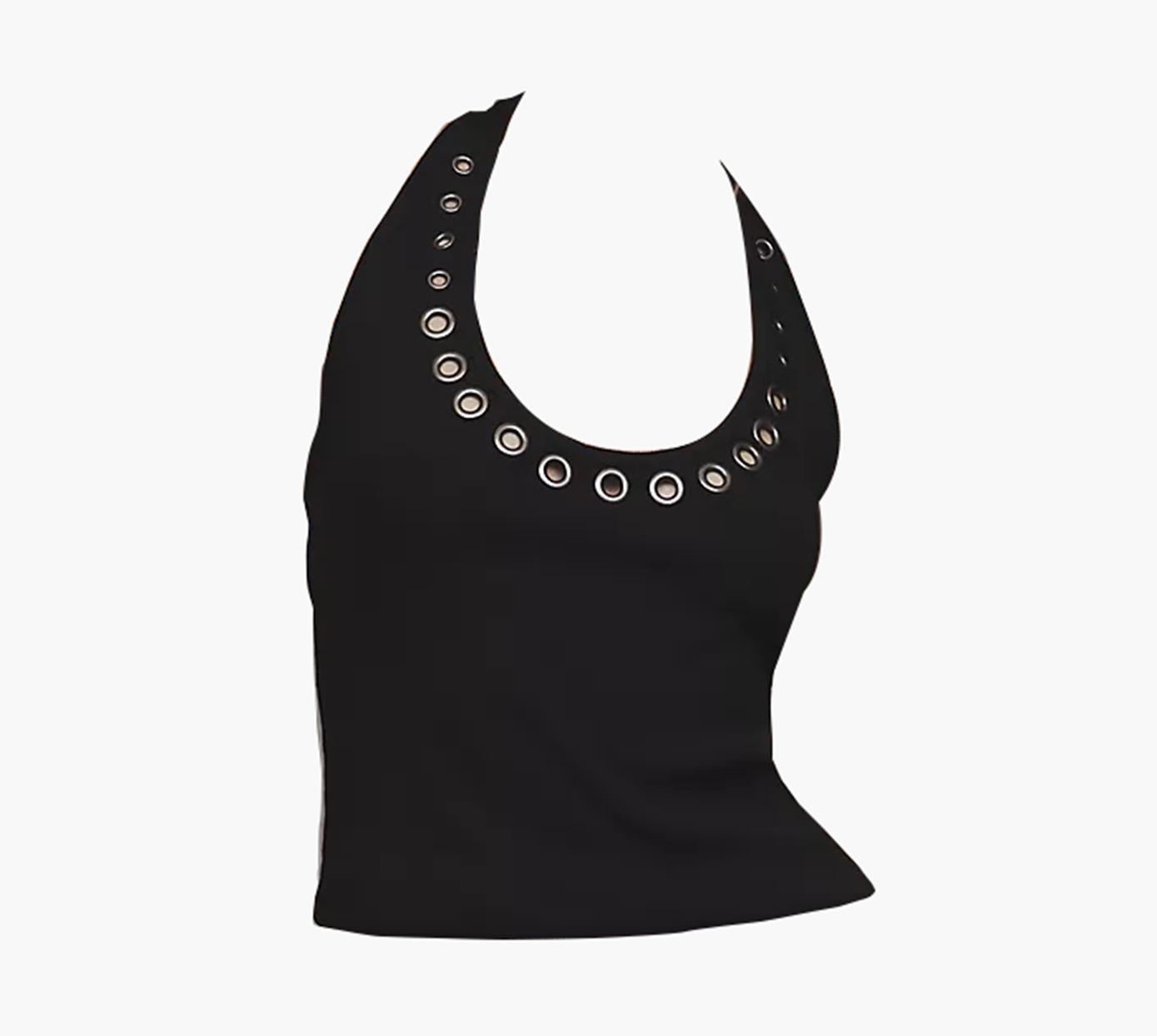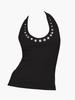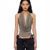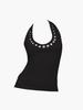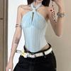 2025 Verano Europeo y Americano Nuevo para Mujer Ajustado Sexy Chica Caliente Diseño de Agujeros Recortados Metálicos Sentido Halter Top de Tirantes