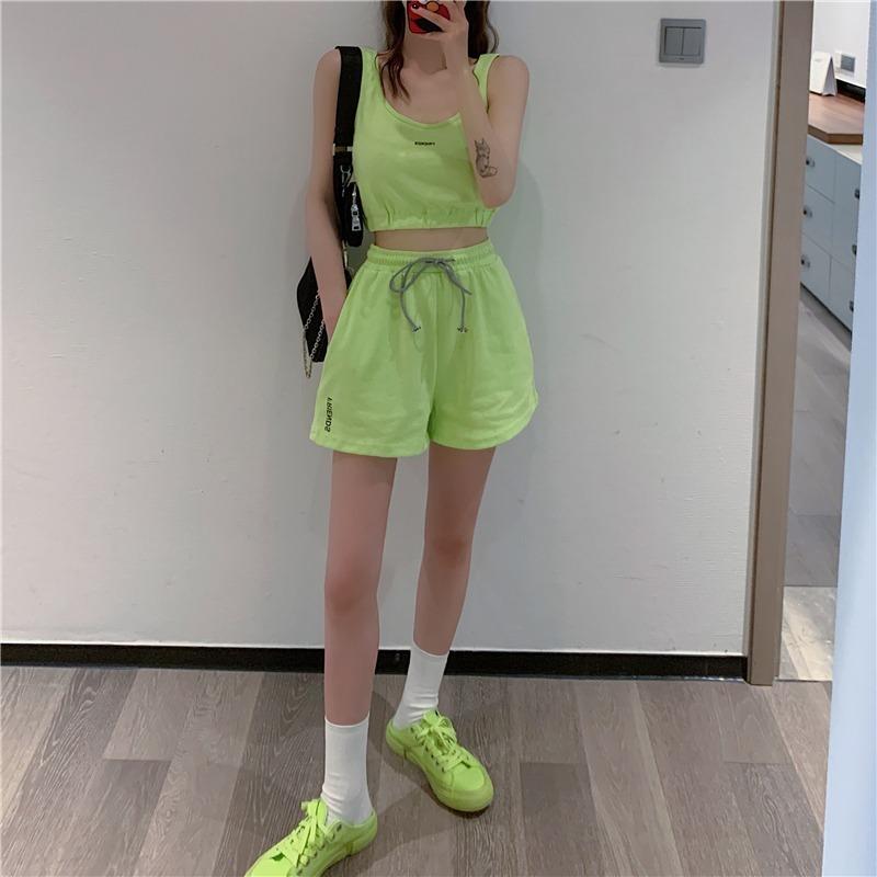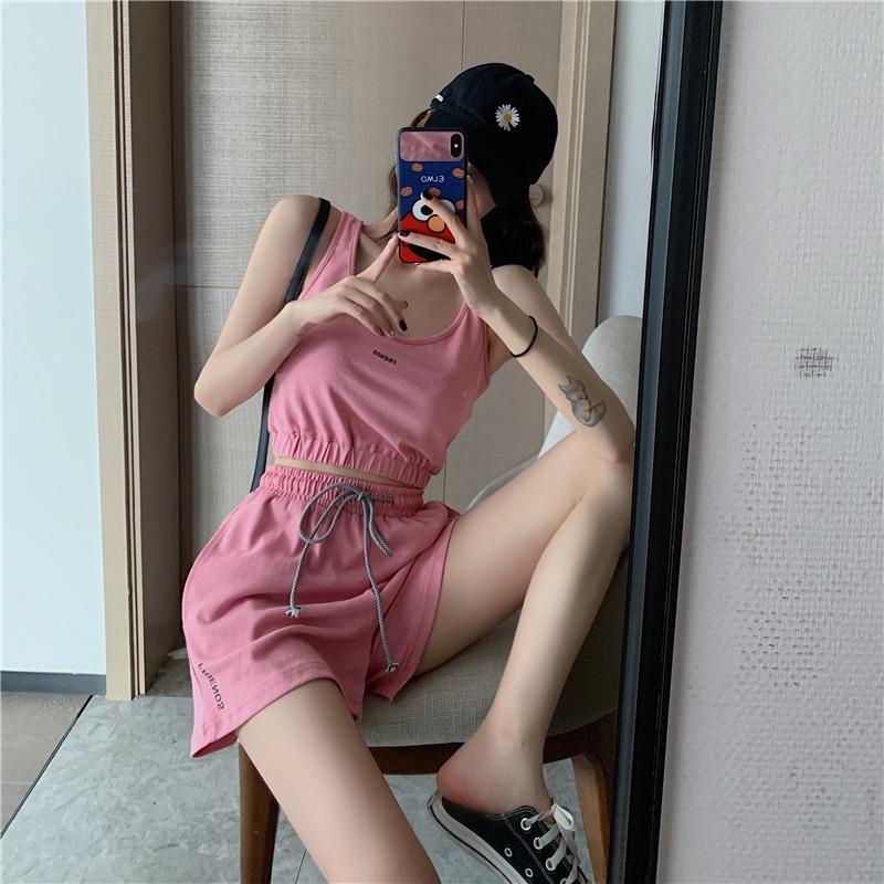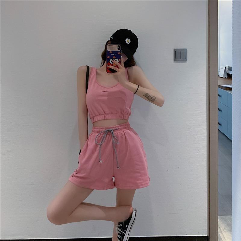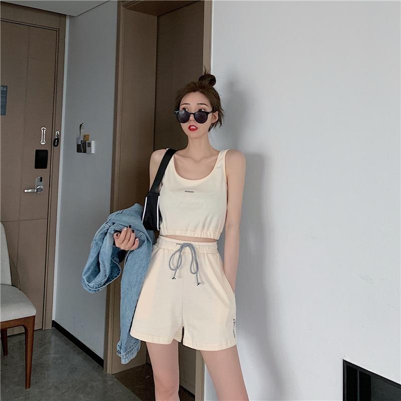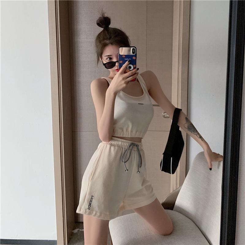 Traje Deportivo Casual para Mujer Nueva Moda Yoga Gimnasio Correr Chaleco Shorts Ajustado Conjunto de Dos Piezas