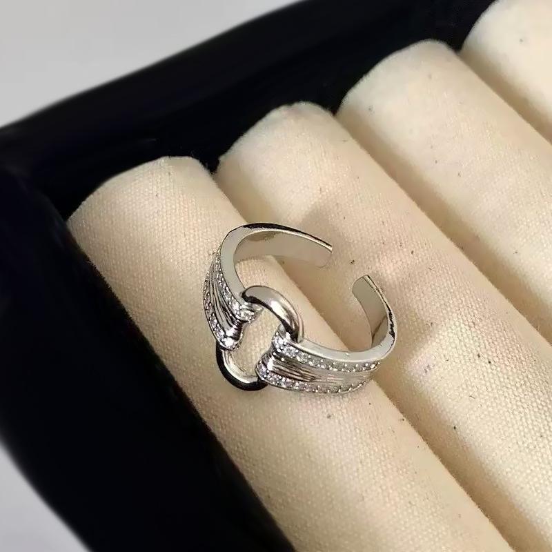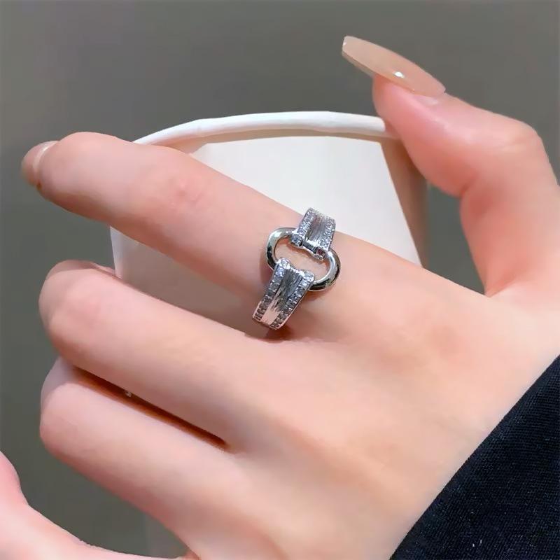 Anillo ovalado con incrustaciones de circón de lujo ligero para mujer, diseño nicho, anillo de dedo índice versátil de alta gama, anillo súper brillante al por mayor