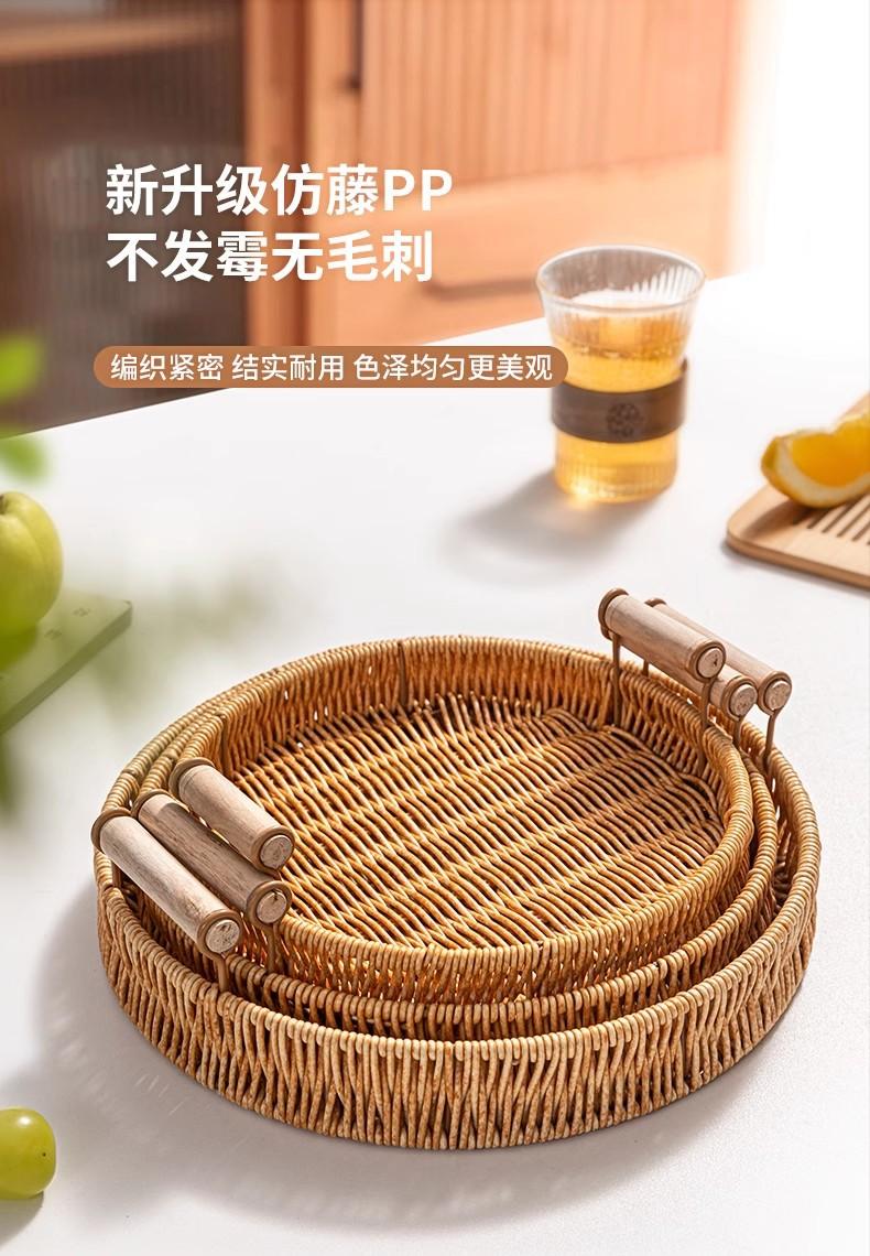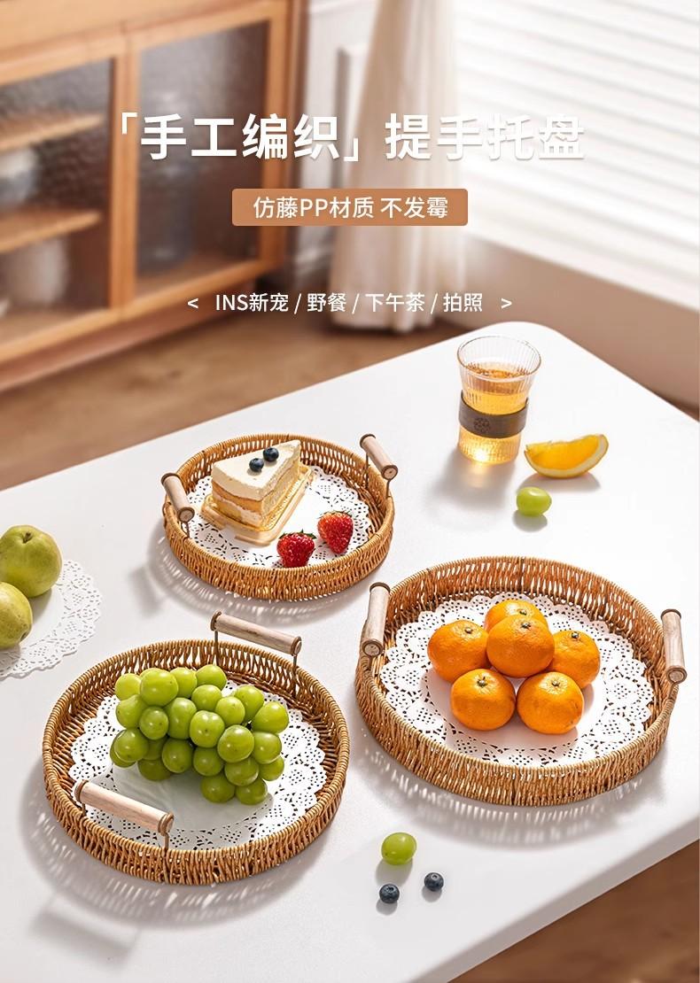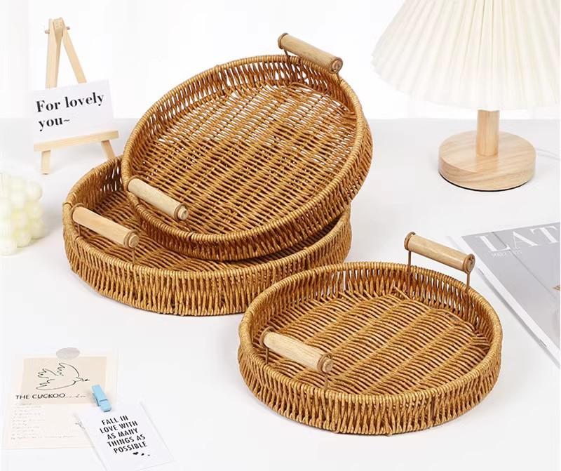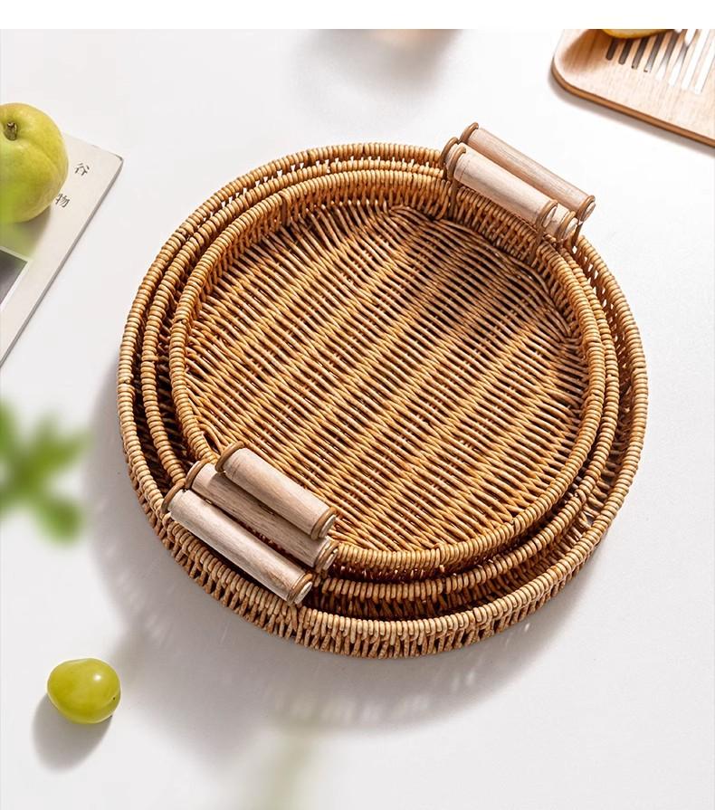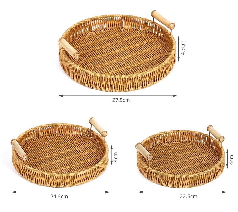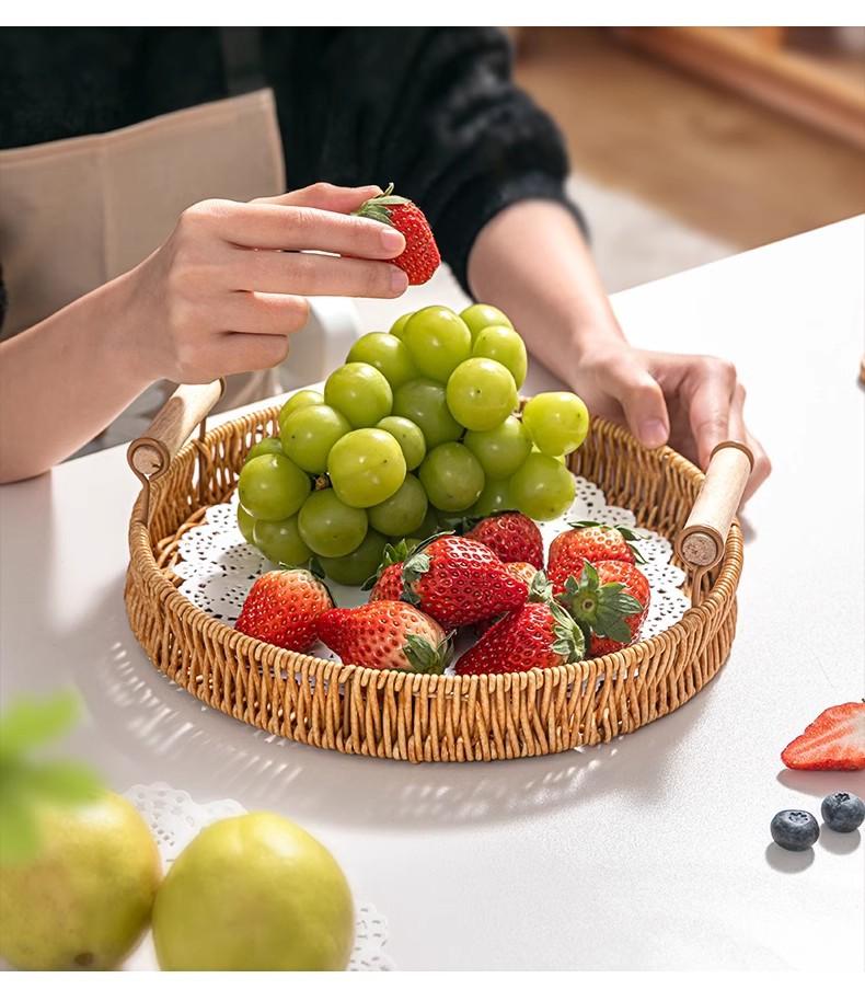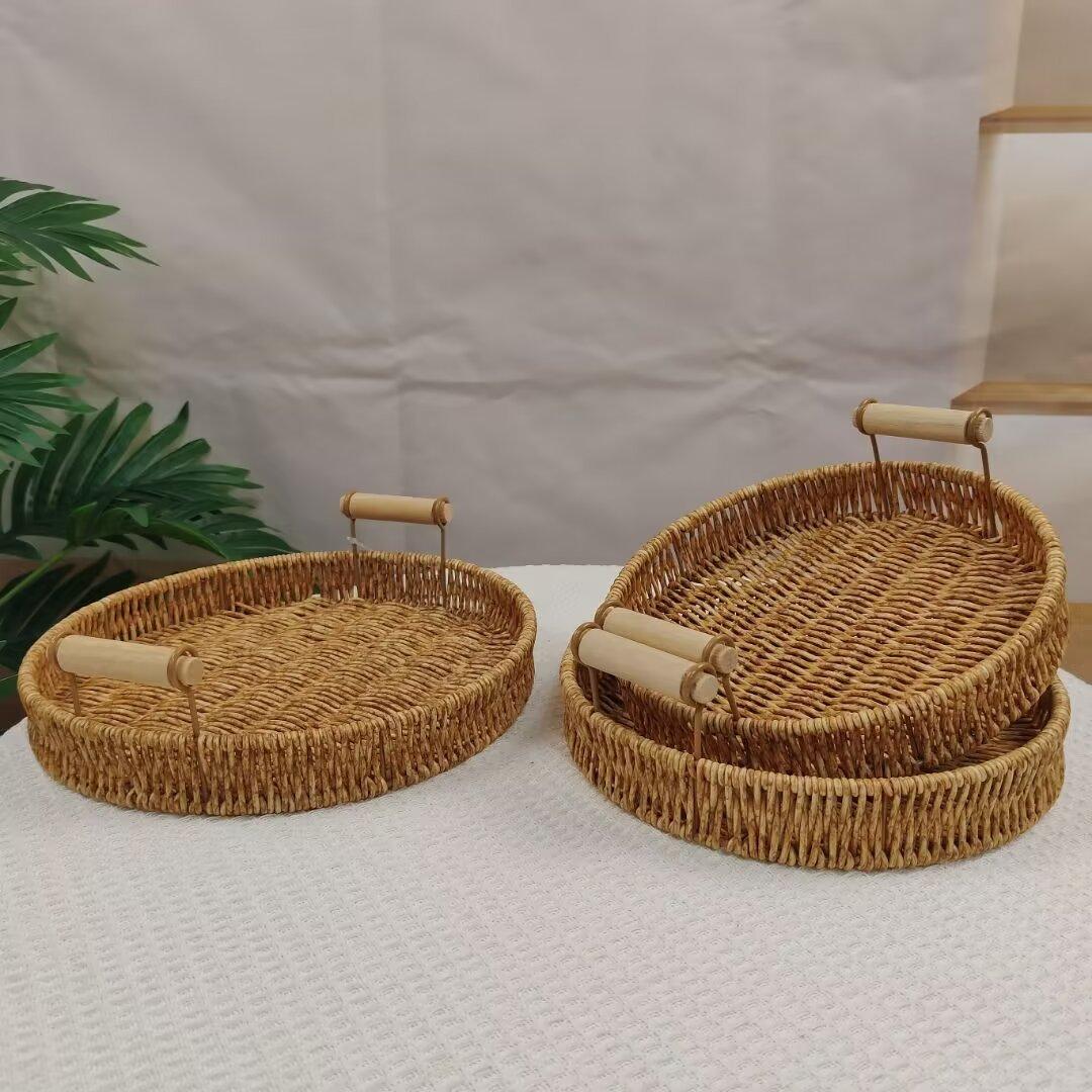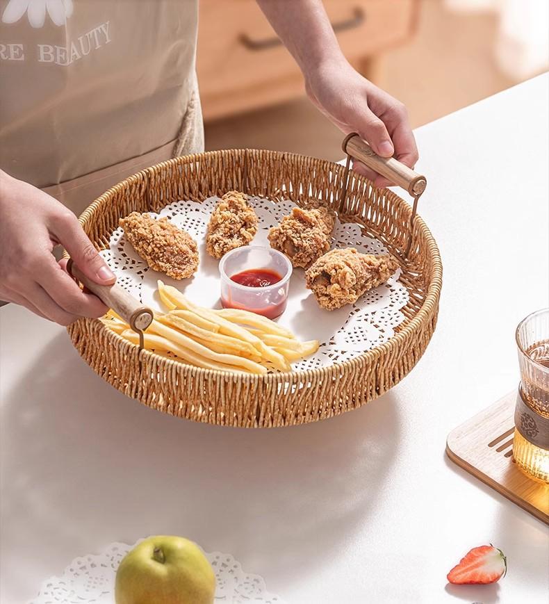 Bandeja Tejida de Ratán Imitación Hogar Sala de Estar Snack Snack Frutero Cesta de Pan Cocina Almacenamiento de Verduras Huevos