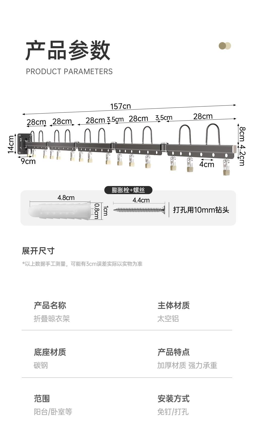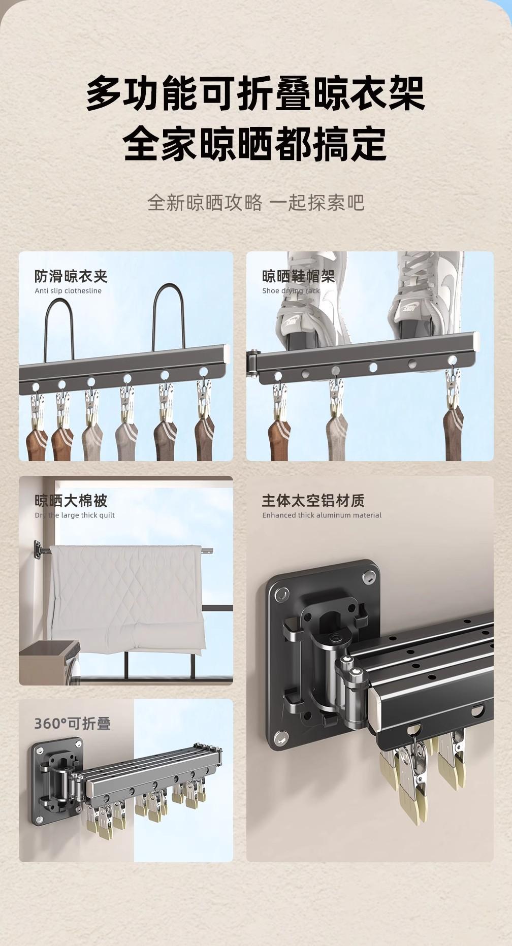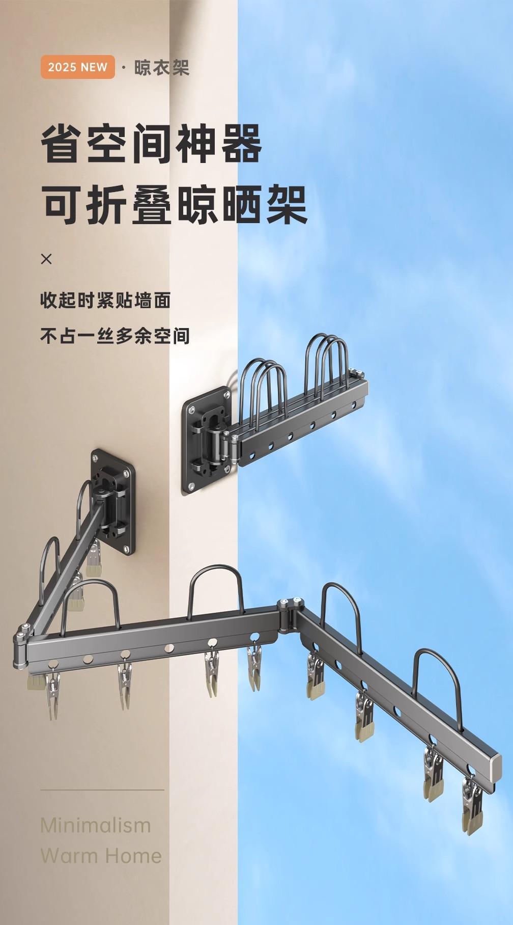 Tendedero Plegable de Aleación de Aluminio, Tendedero de Balcón, Tendedero sin Perforaciones, Venta al por Mayor para Interior
