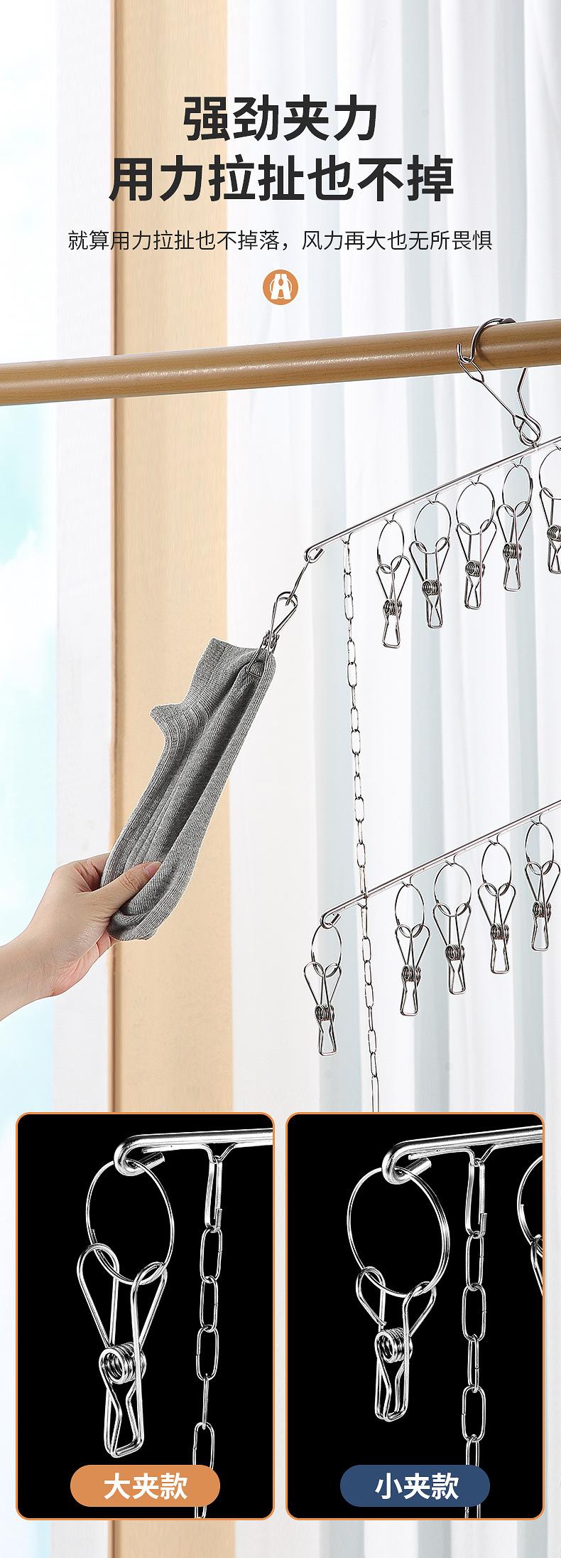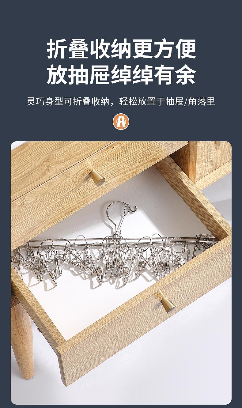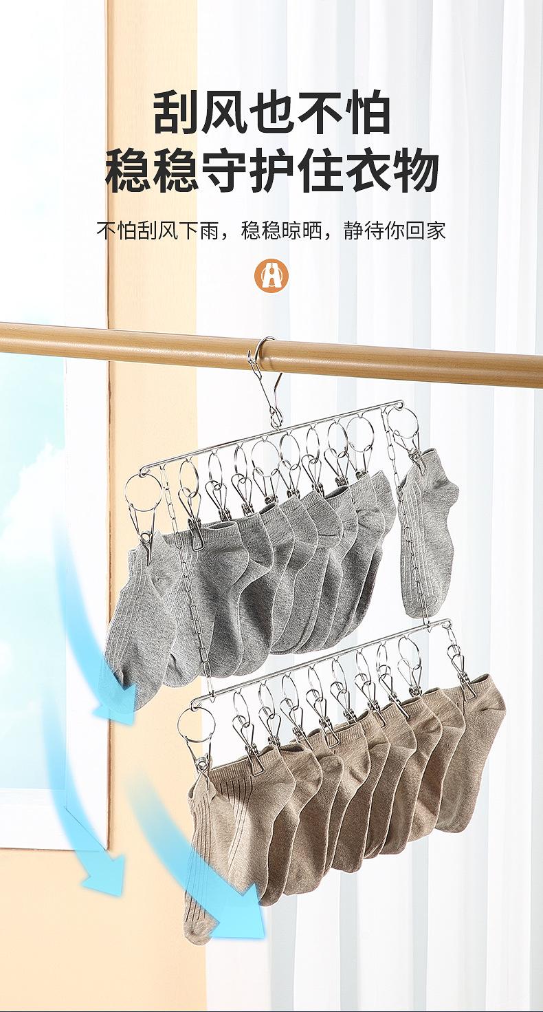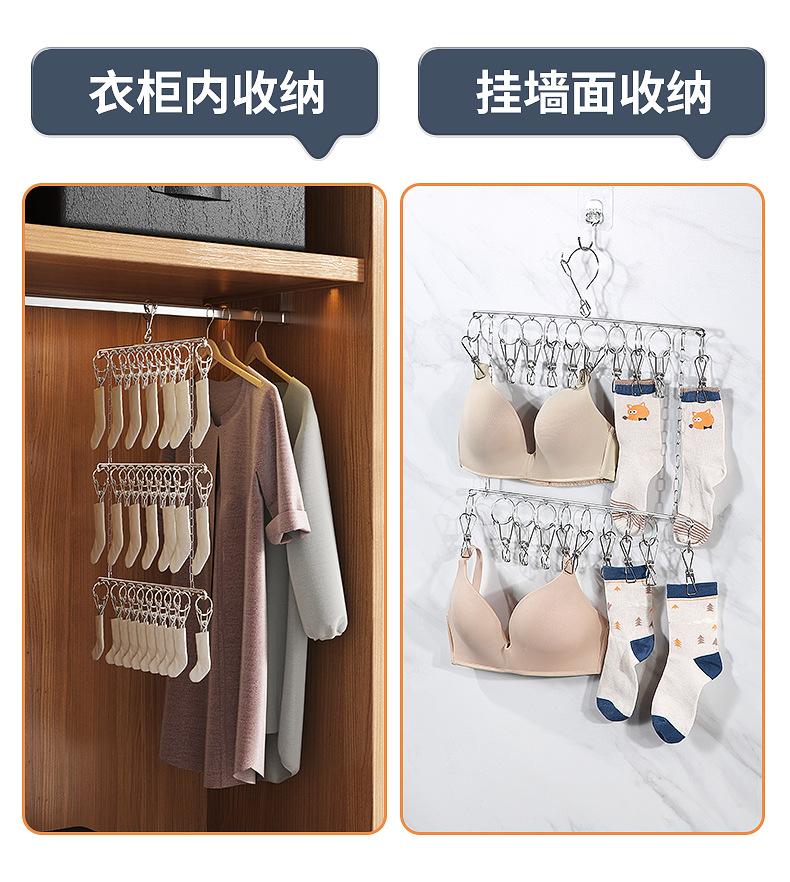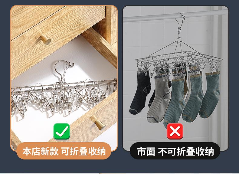 Perchero plegable de acero inoxidable con múltiples clips para secar ropa interior y calcetines, resistente, para guardarropa, con pinzas para calcetines y varios cabezales.