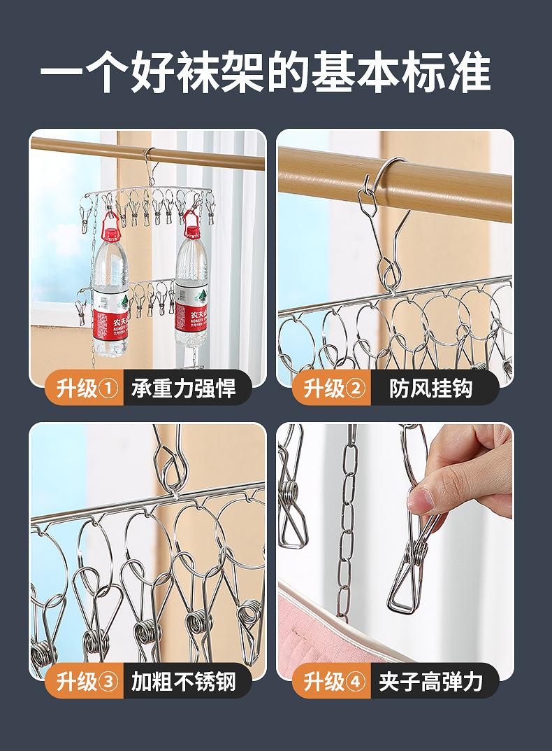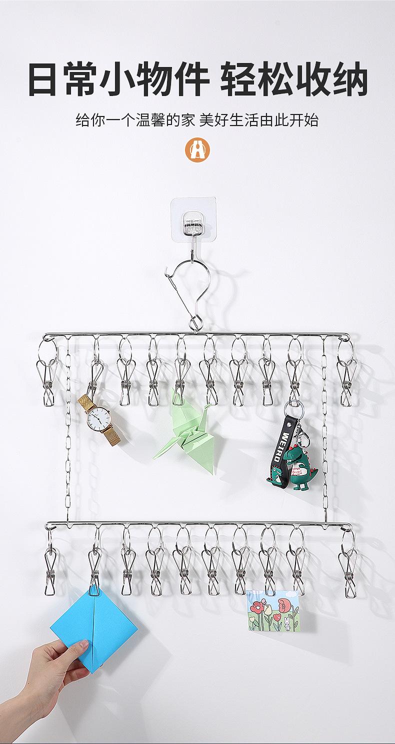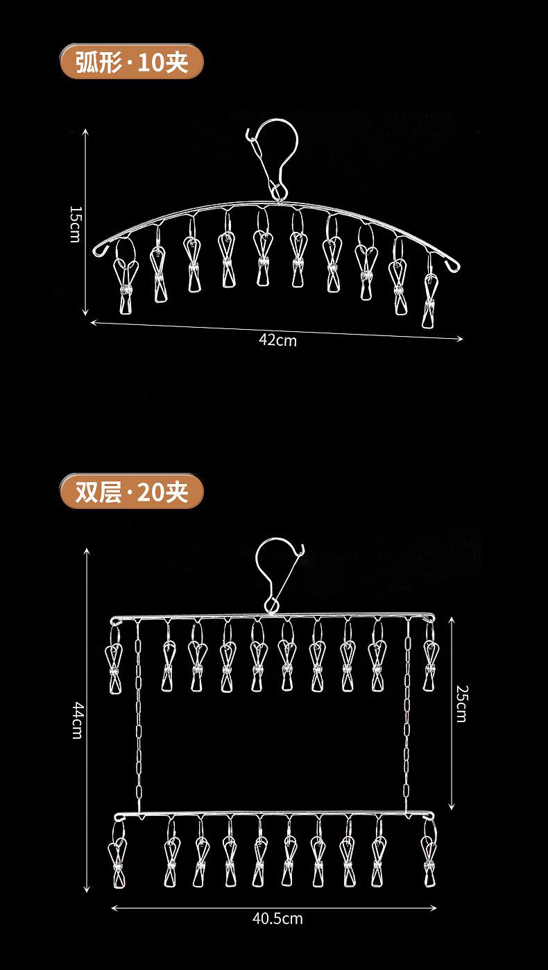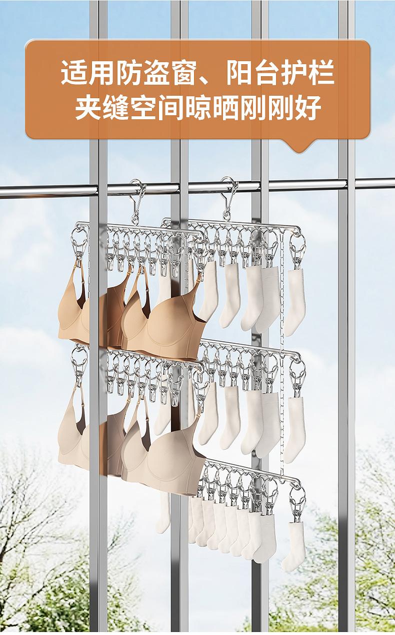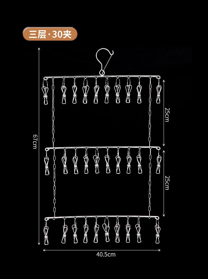 Perchero plegable de acero inoxidable con múltiples clips para secar ropa interior y calcetines, resistente, para guardarropa, con pinzas para calcetines y varios cabezales.