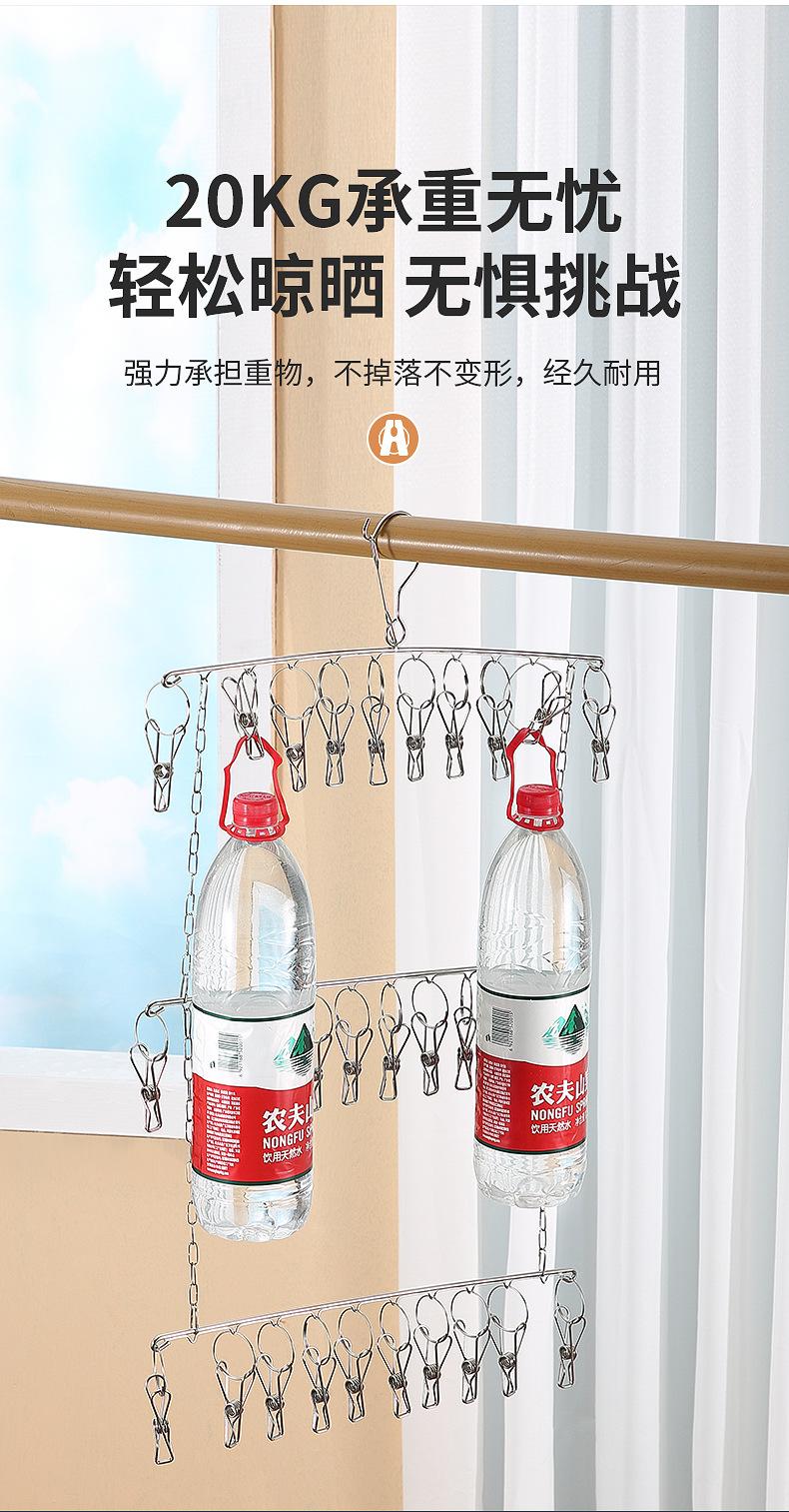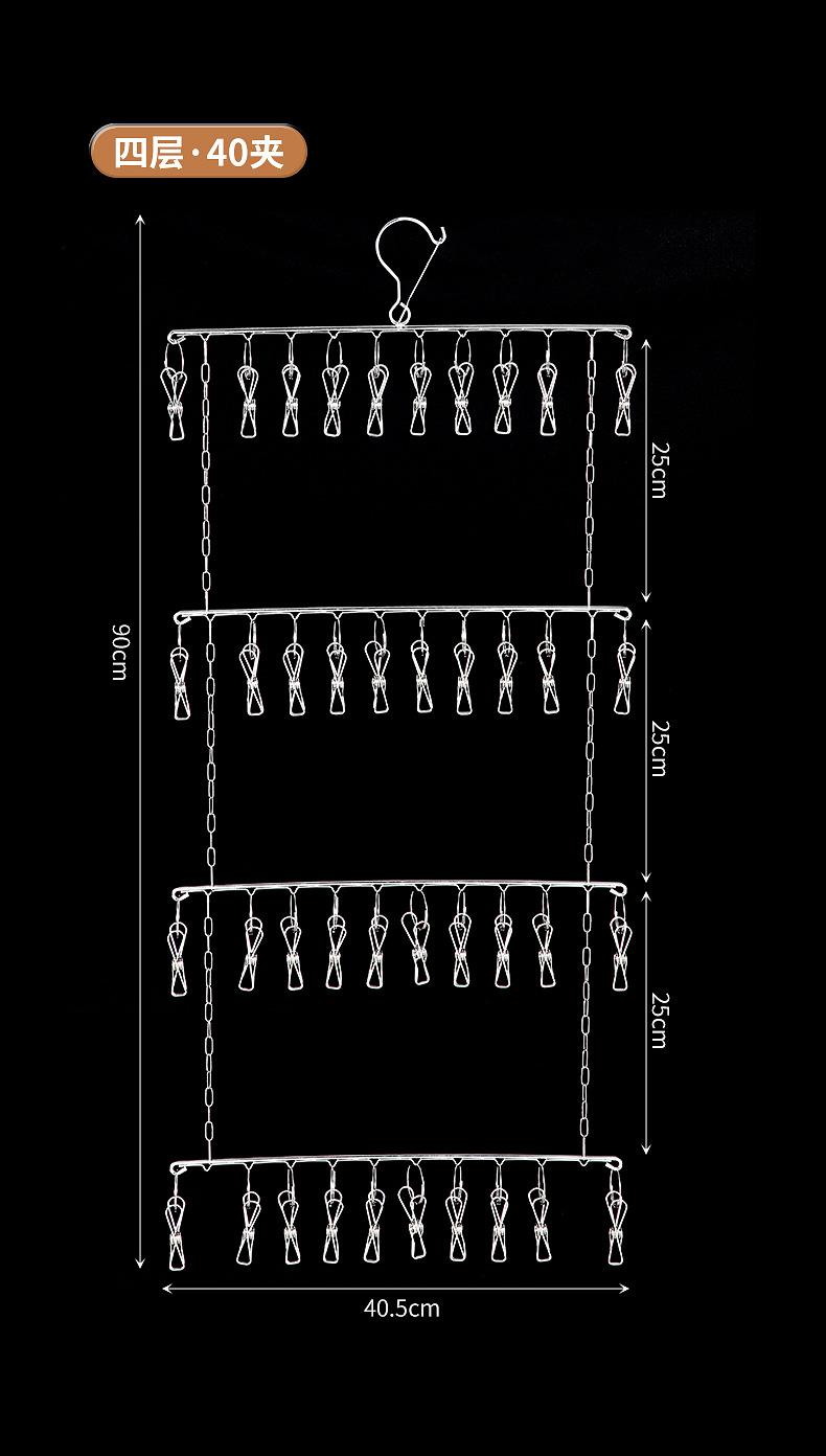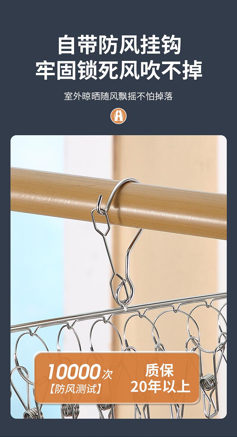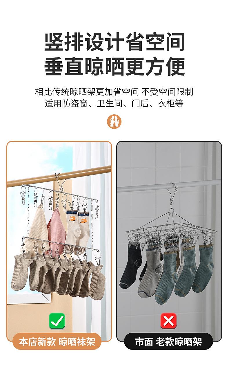 Perchero plegable de acero inoxidable con múltiples clips para secar ropa interior y calcetines, resistente, para guardarropa, con pinzas para calcetines y varios cabezales.
