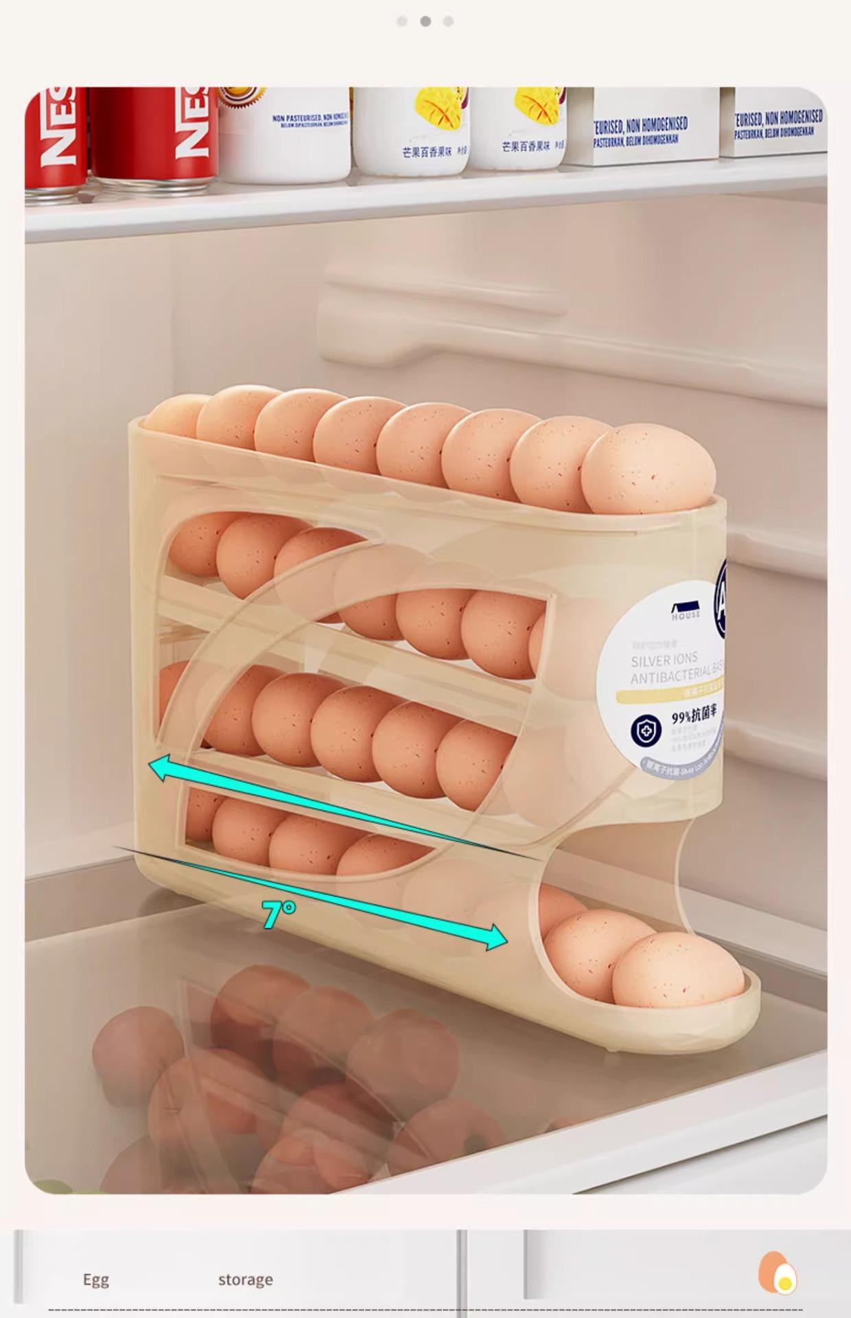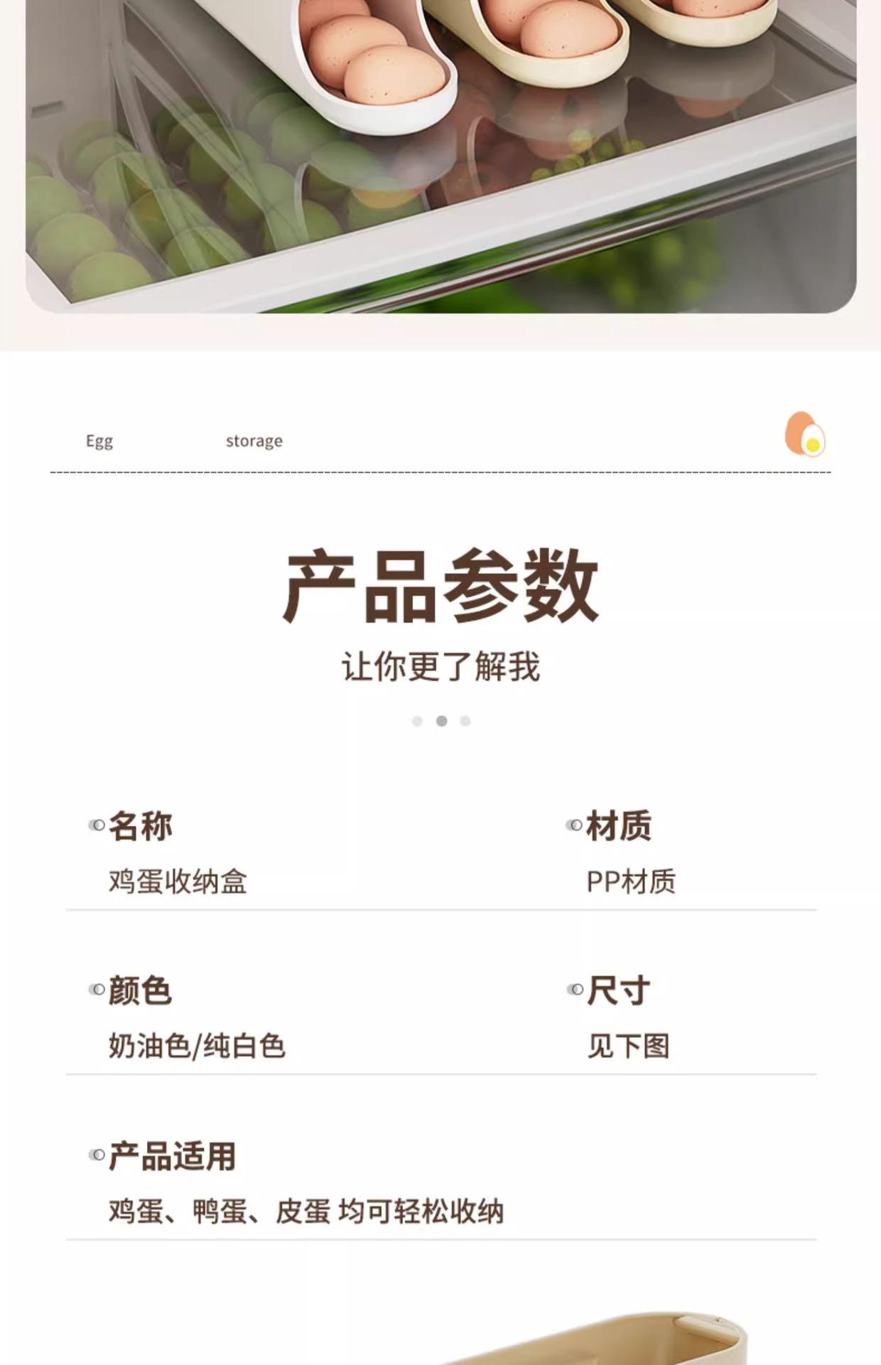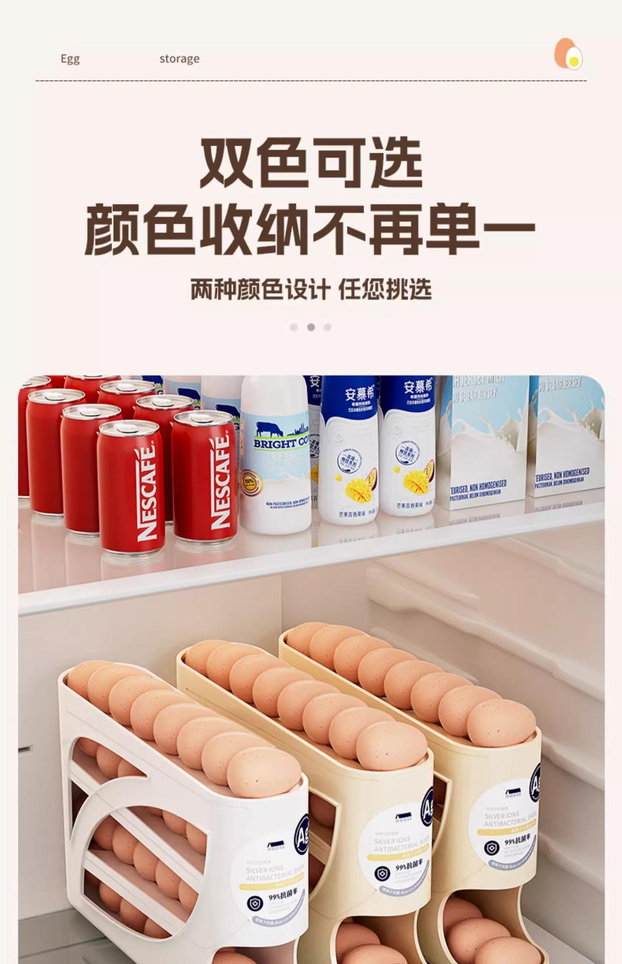 Caja de Almacenamiento de Huevos con Deslizamiento Rodante Grado Alimenticio Lado de la Puerta del Refrigerador Soporte para Huevos Caja Organizadora Dedicada para Conservación